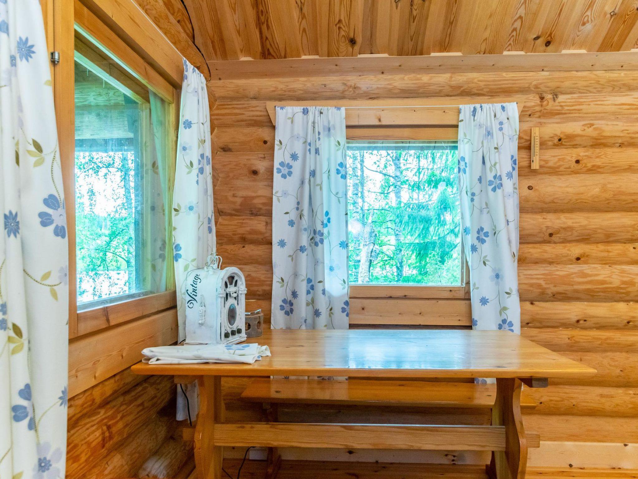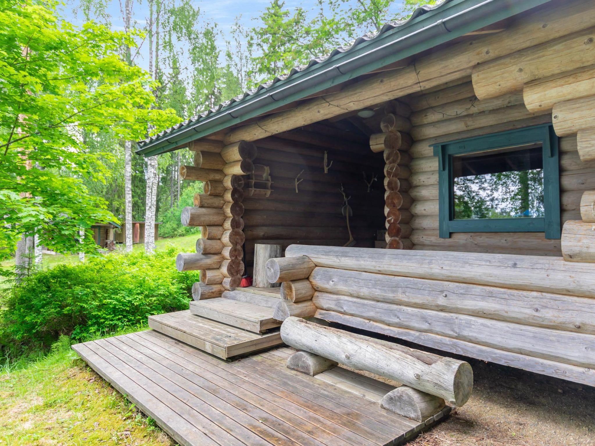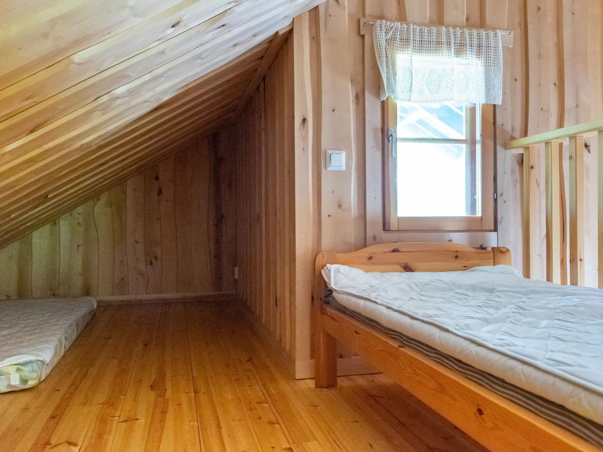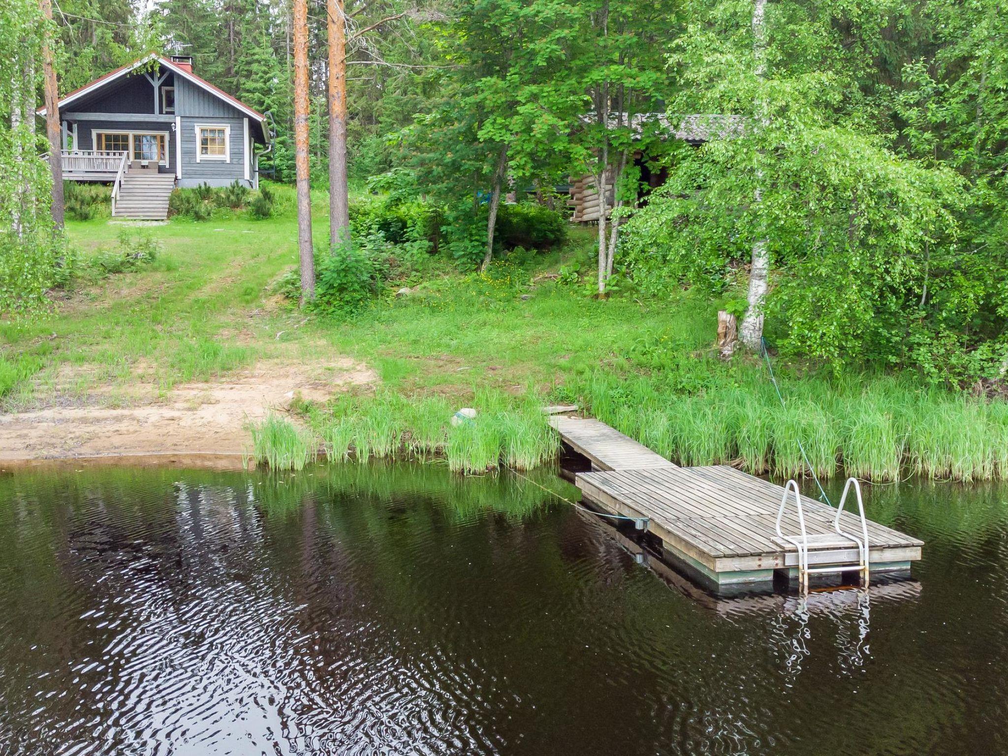 23 km northeast of Iisalmi, River Matkusjoki 35 m, log cabin (2018), living room with TV, heat-storing fireplace, sofa bed that can be extended to a 140x200 cm bed for two. WC with shower. One bed under the stairs. Well-equipped kitchen and spacious dining area. In the loft, there is one bed and two 80x200 cm mattresses on the floor. The yard's outbuilding has a double bed. The outbuilding includes an electric heater, so it can be used for accommodation in winter as well.