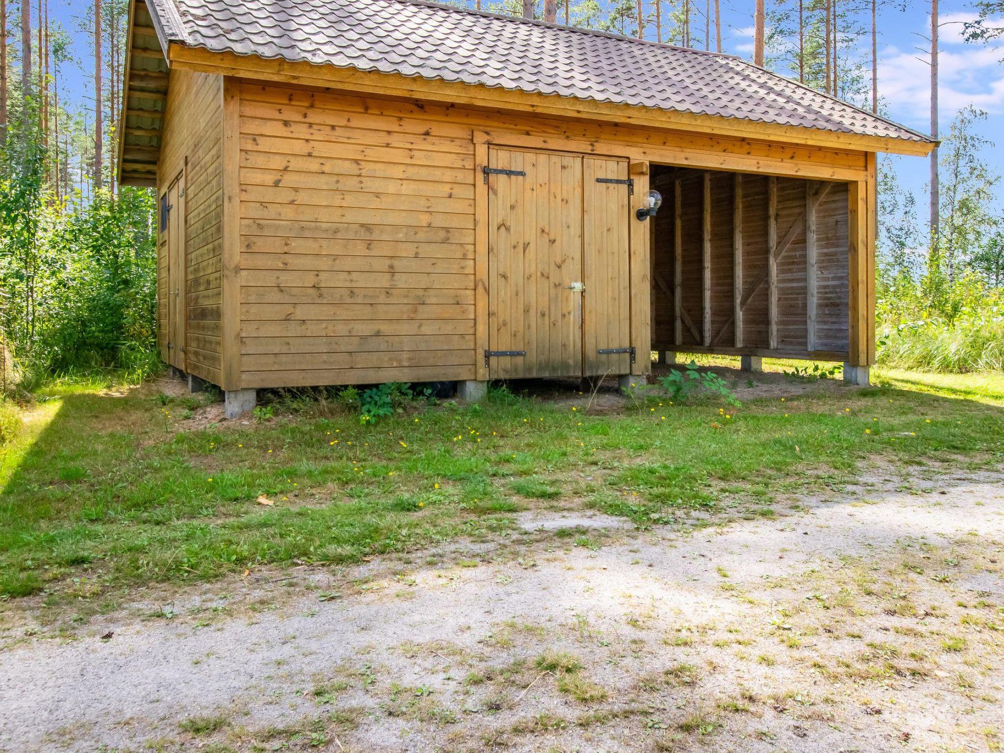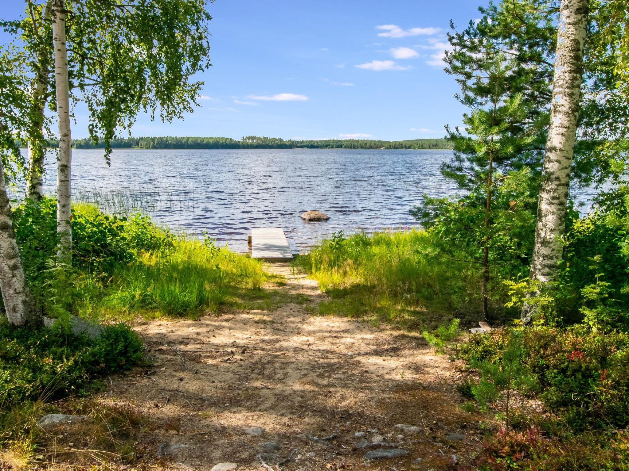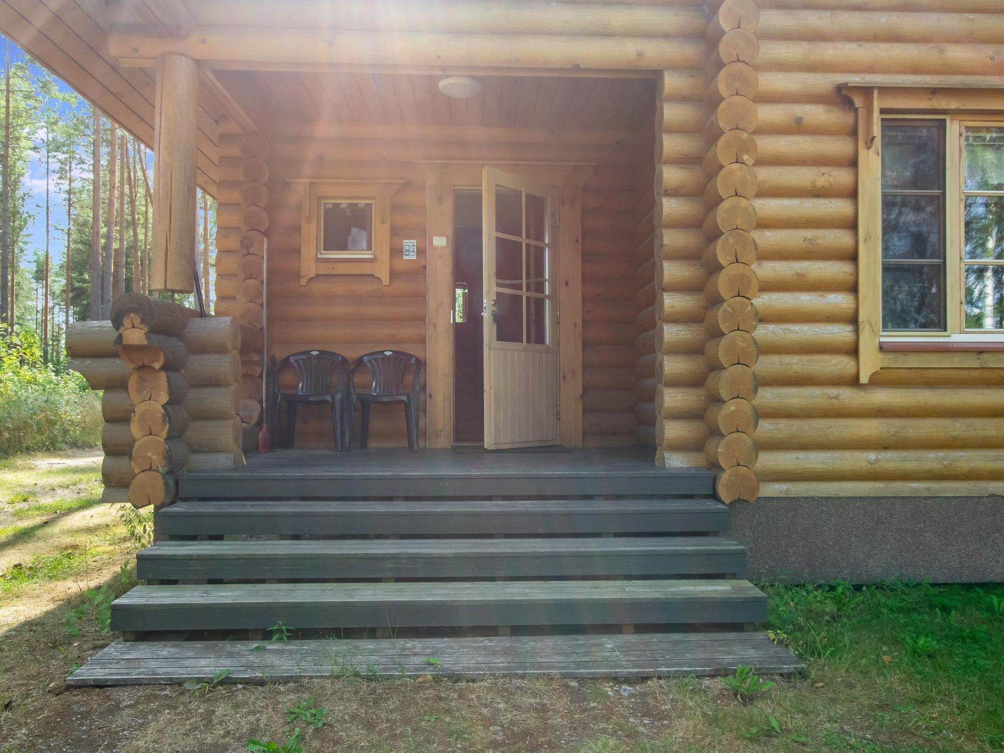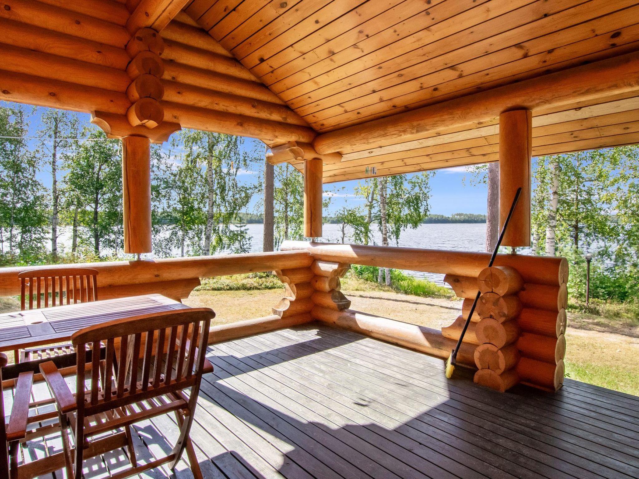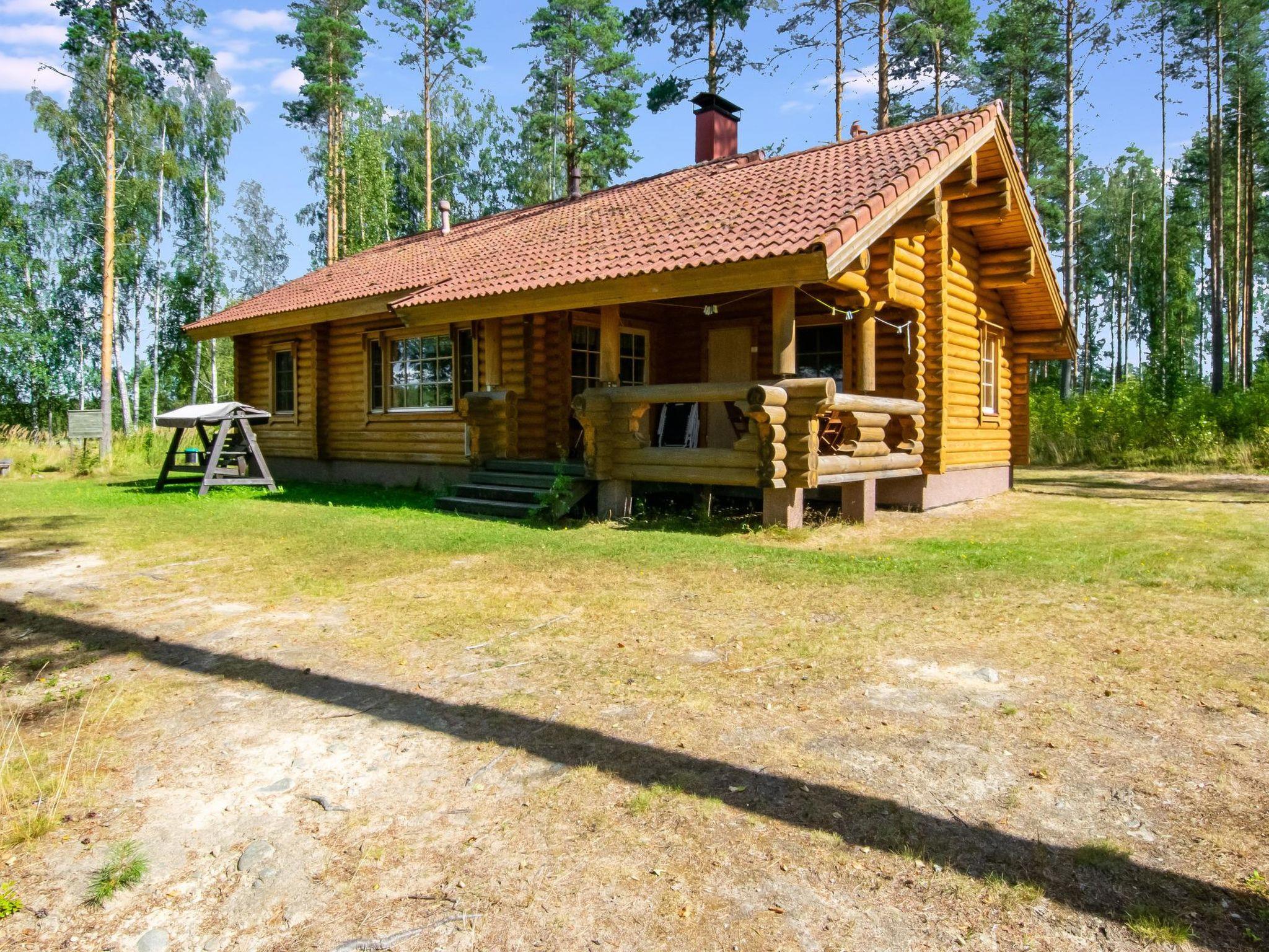 45 km west of Savonlinna, Halmejärvi 20 m (length 5 km, width 1 km); shallow, hard sanded bottom, own boat. Log building 2000, kitchen, living room with convertible sofa, 2 bedrooms 2 beds in each, dressing room, washroom, sauna, 2 x open porch.