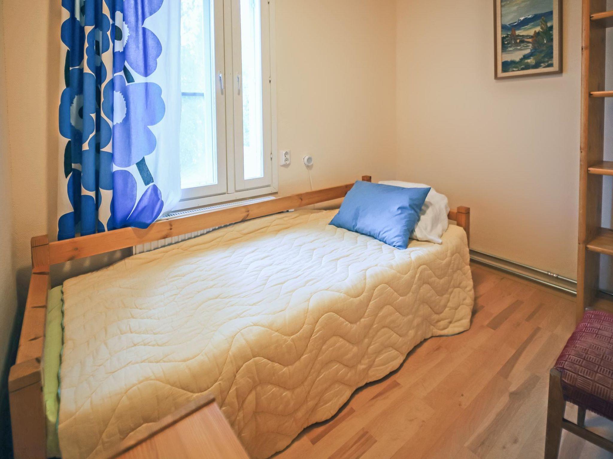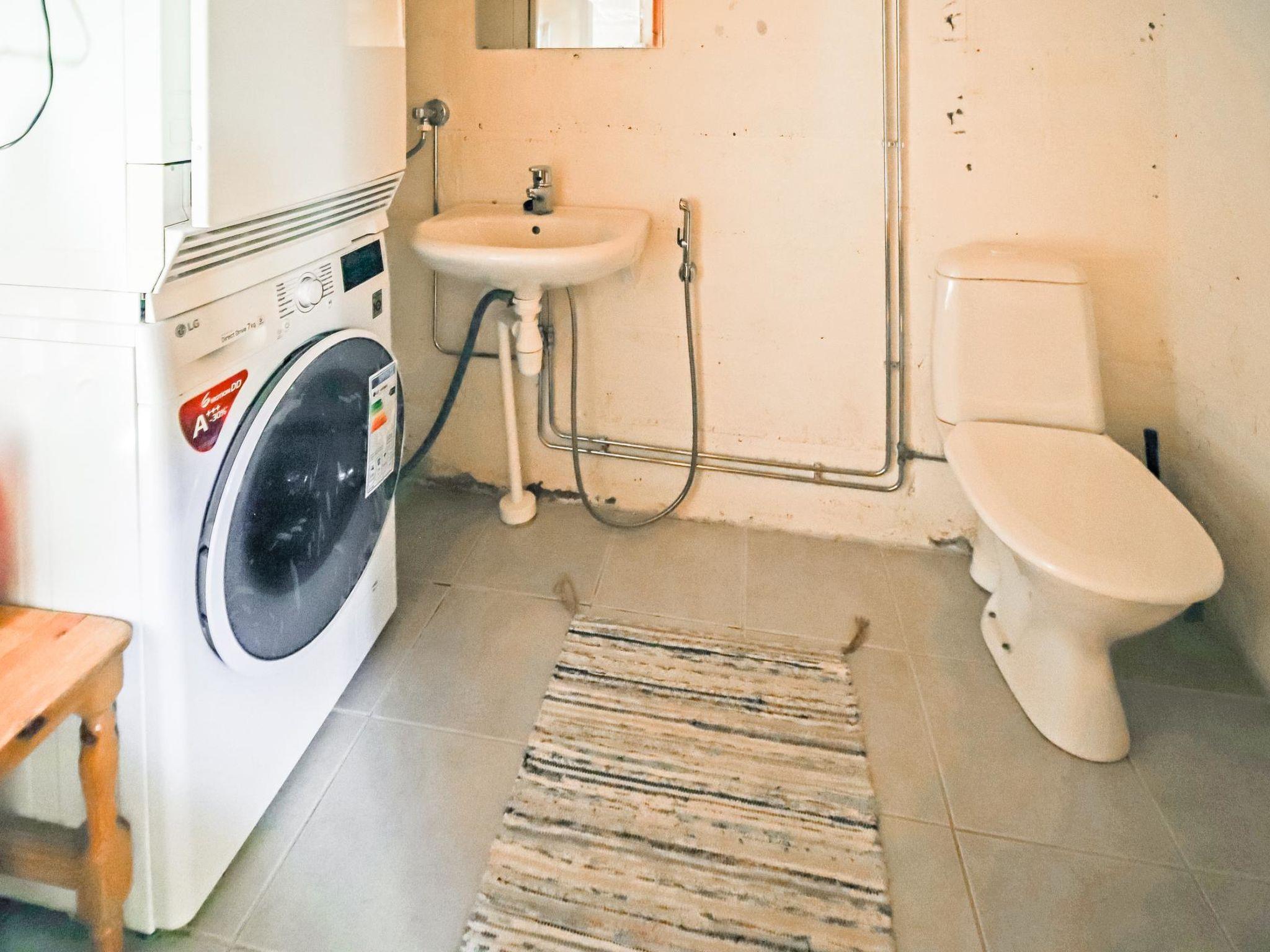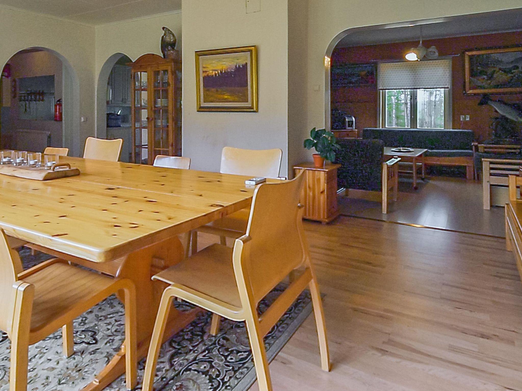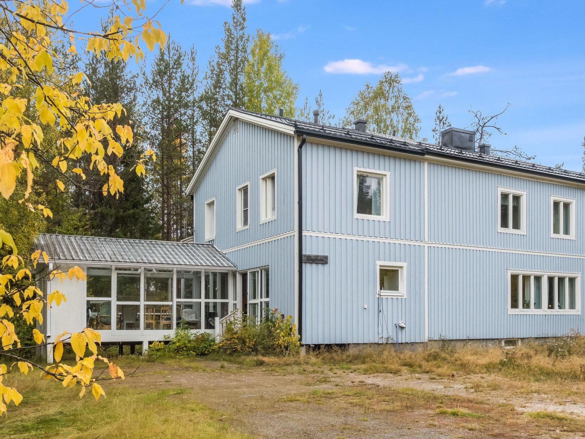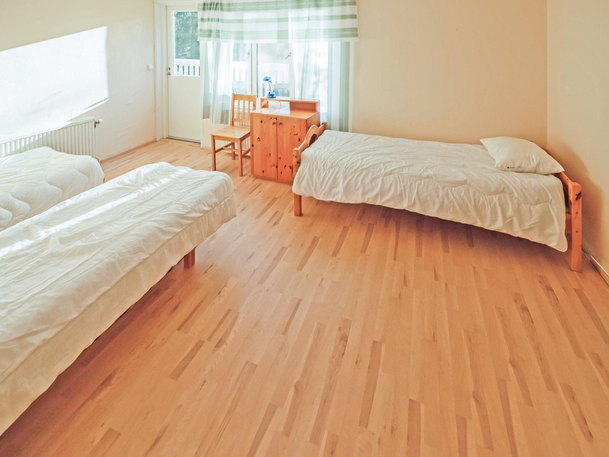 Wooden house 1938, renovated 2008, rooms on 3 storeys, kitchen, dining room/living room, TV room, “hunters’ bar”, 4 bedrooms each with 2 beds (one room with own WC and shower), 2 bedrooms each with 2 beds plus top bunk, 1 bedroom 1 bed, sauna, washroom, room with fireplace, glazed terrace, large open balcony. House has total of 6 showers, WC facilities also upstairs, equipment includes spin drier. More extra beds by arrangement.