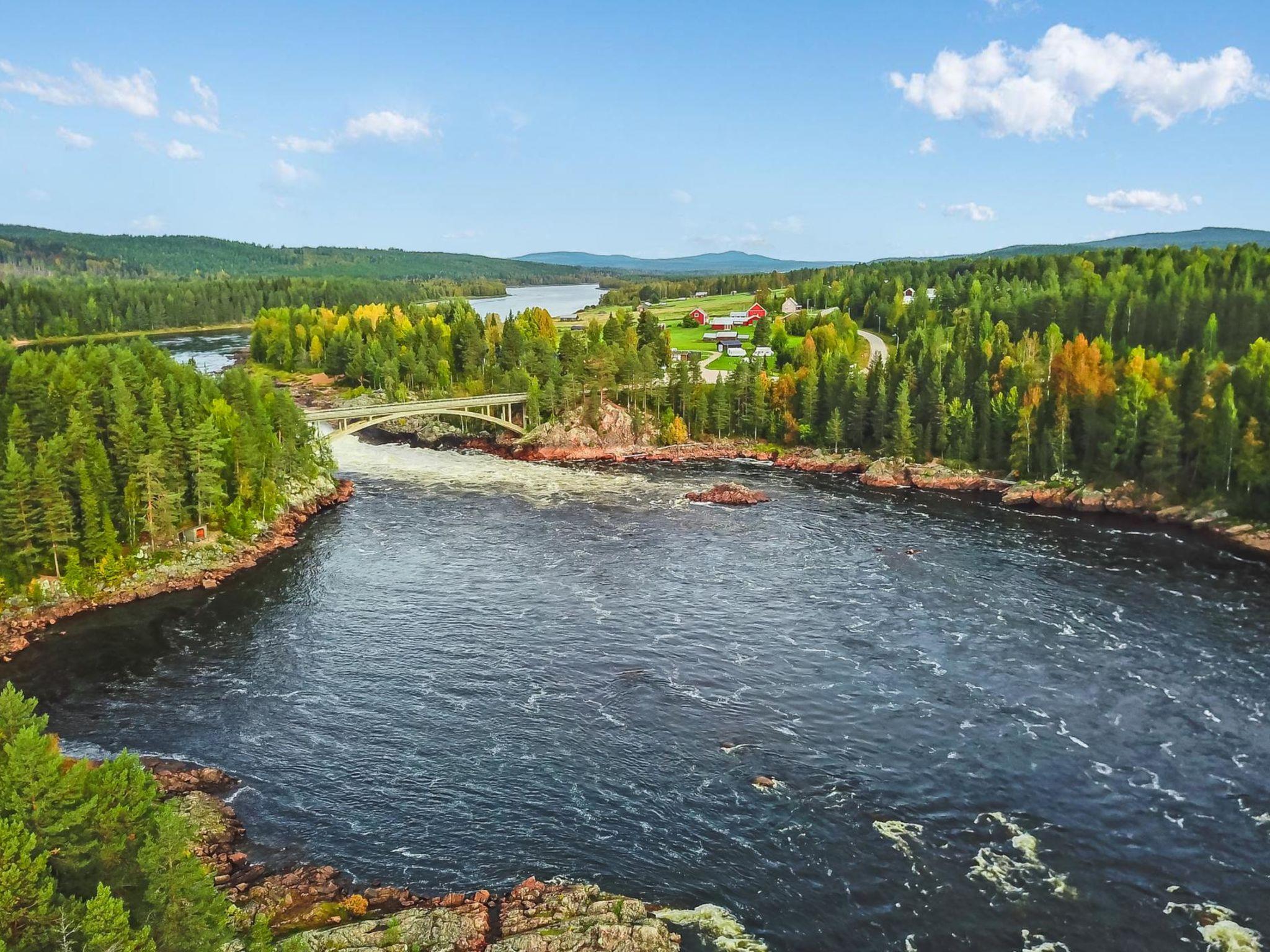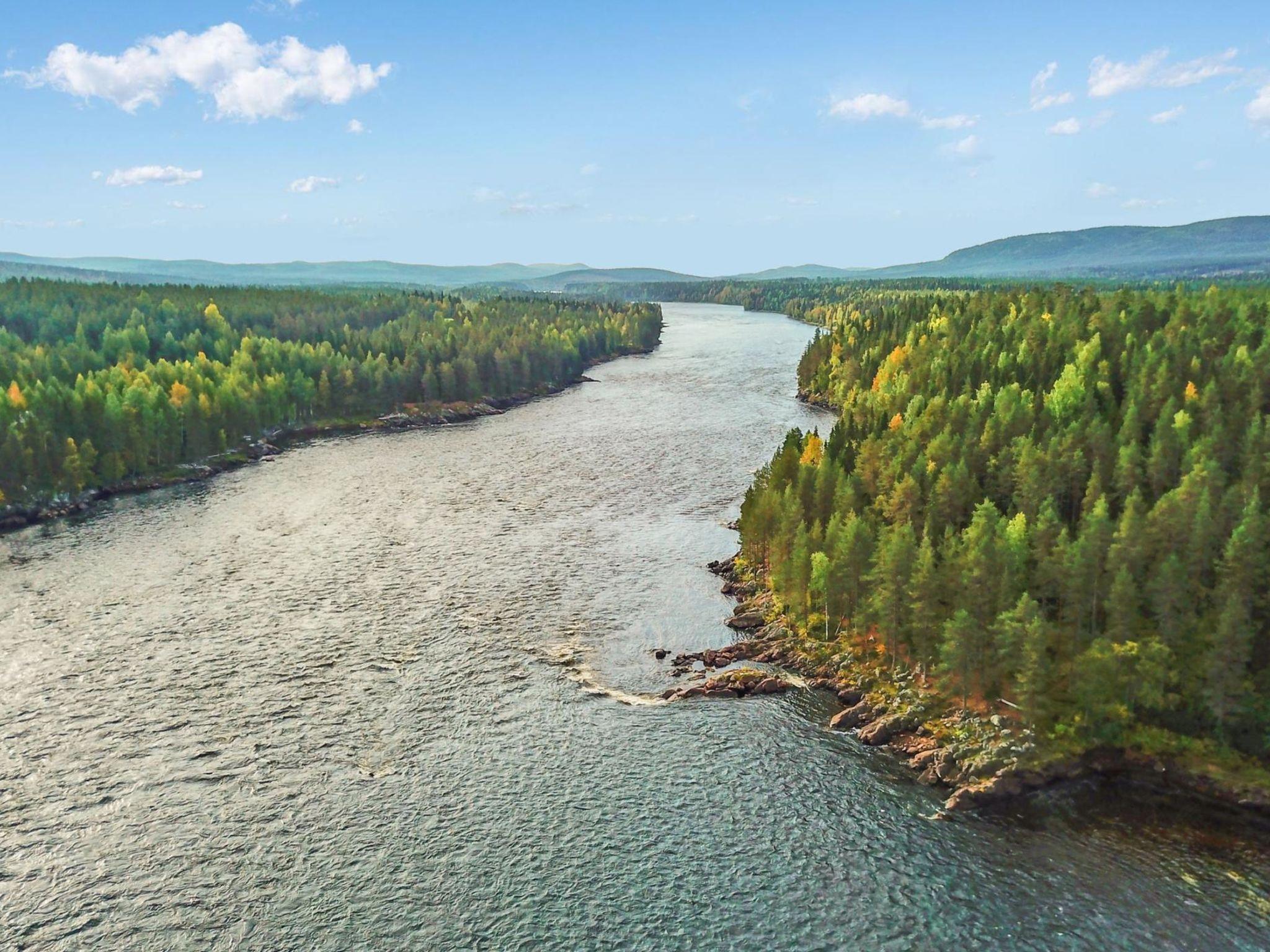 150 km north-west of Tornio, on Swedish side, River Kalixjoki 150 m, Jockfall waterfall 200 m, public shore, public swimming shore 300 m.