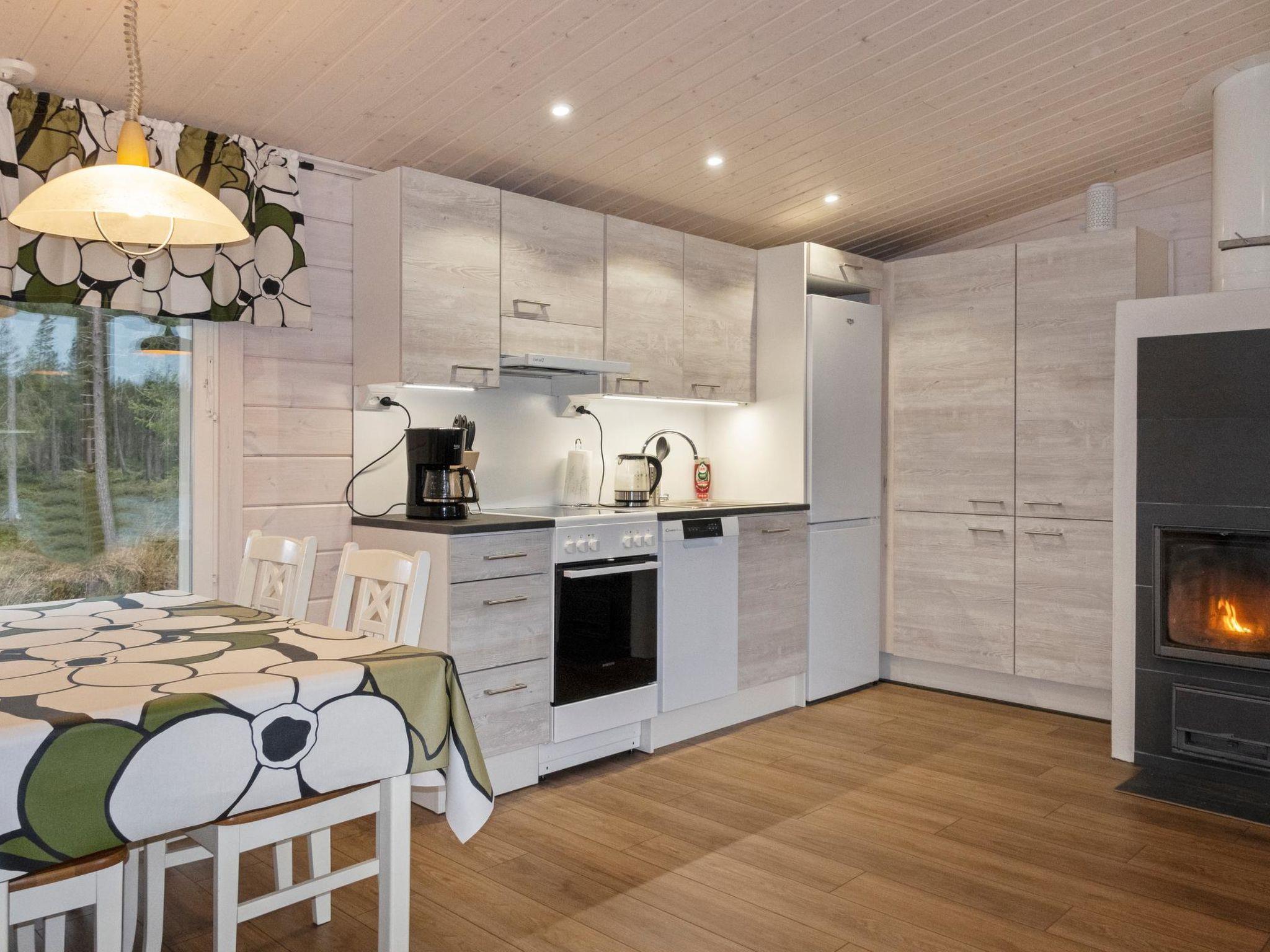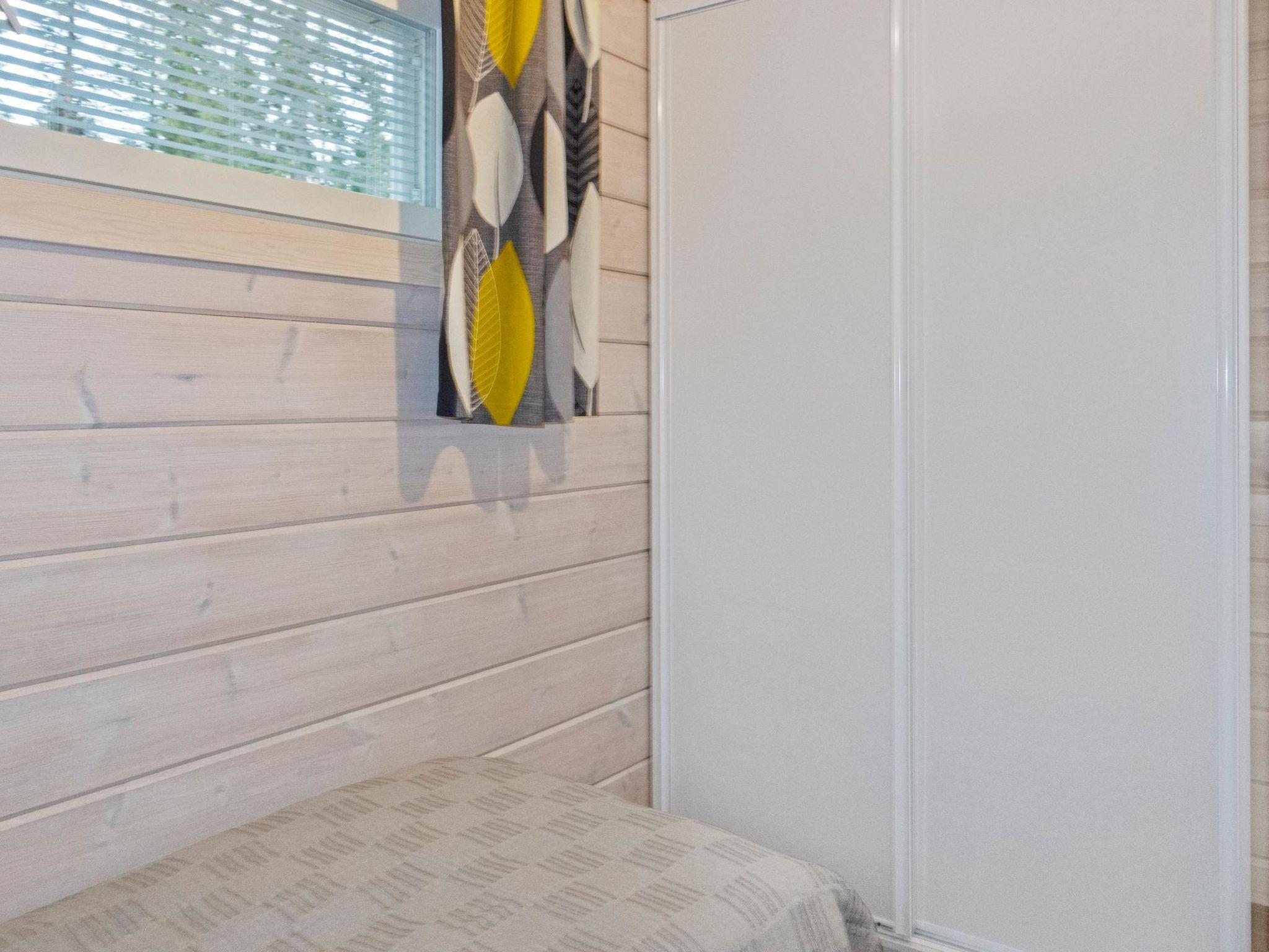 The cabin is built of planed logs, completed in 2022. Living room/kitchen, 2 bedrooms, one with double bed and other with 2 beds, sauna and washroom/WC.