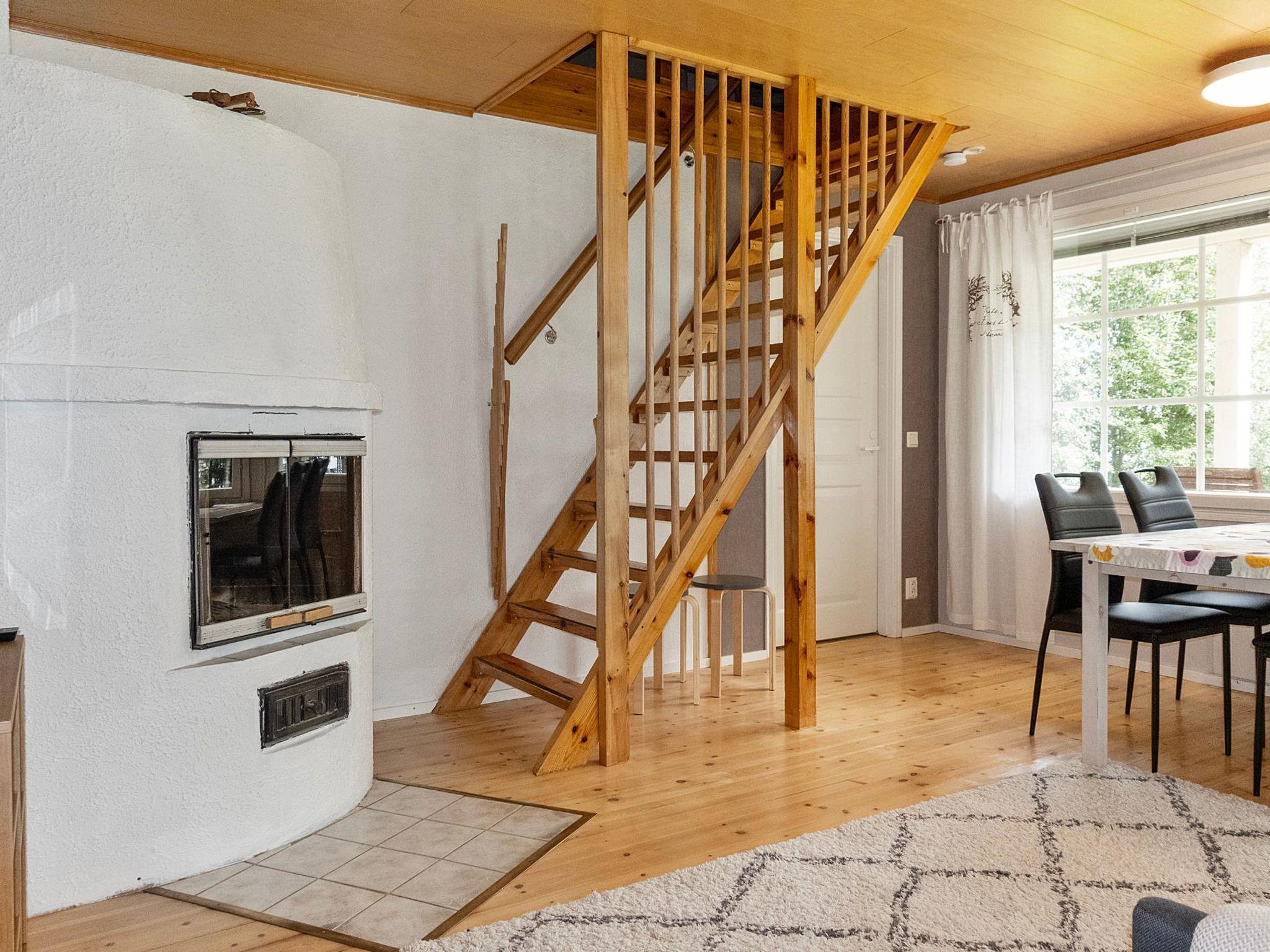 In addition, the cabin has a separate wood-heated yard sauna with separate steam room and fireplace room, as well as a covered terrace. The yard sauna is equipped with electricity and underfloor heating. Here you can enjoy a traditional Finnish sauna.