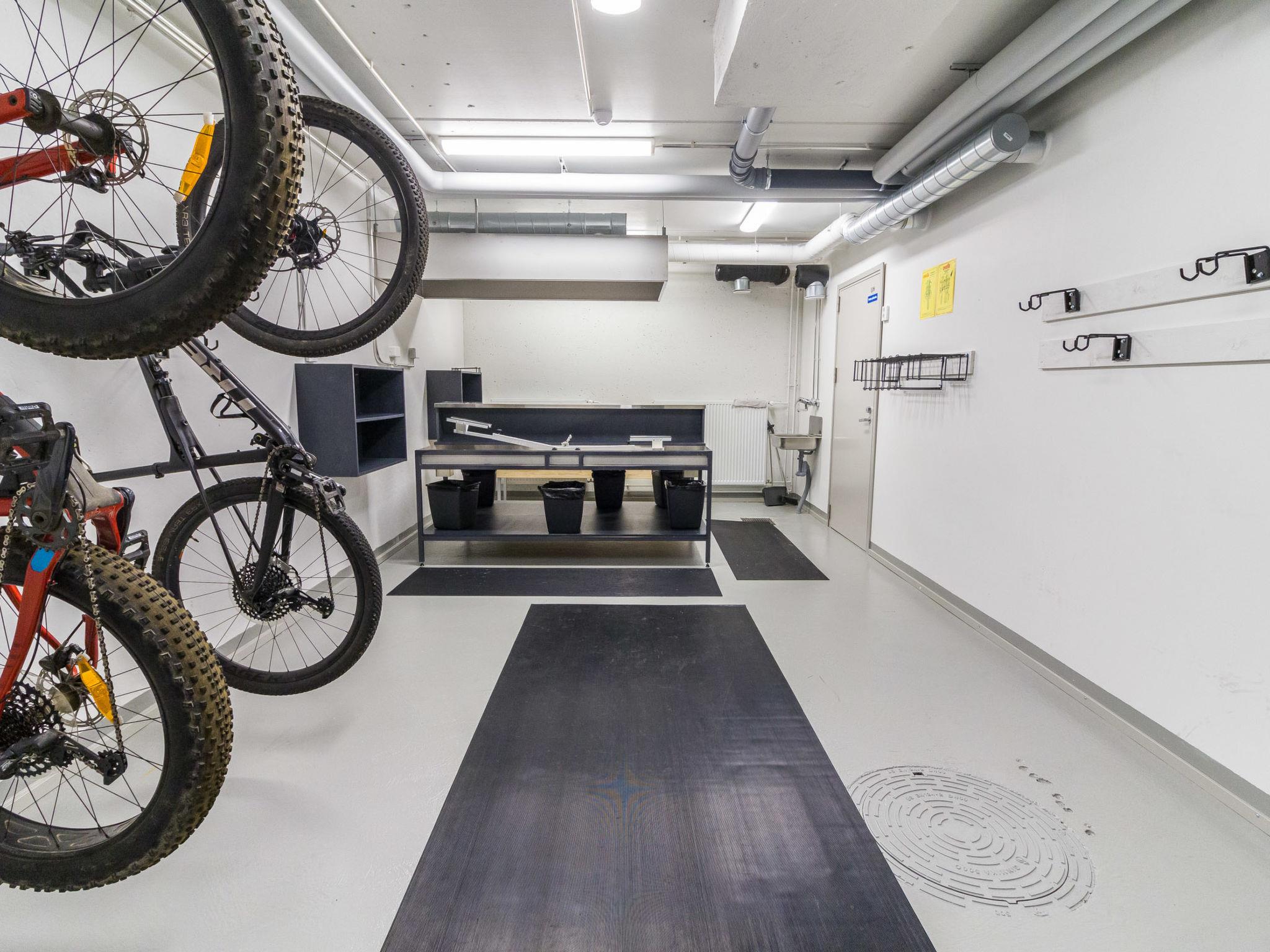 A car is not necessarily needed, as Ylläs' services, restaurants, shops, and outdoor activities are within walking distance. The building has bicycle storage facilities, a separate storage room for guests, and a ski maintenance room, which add to the comfort of living, especially for active vacationers.
