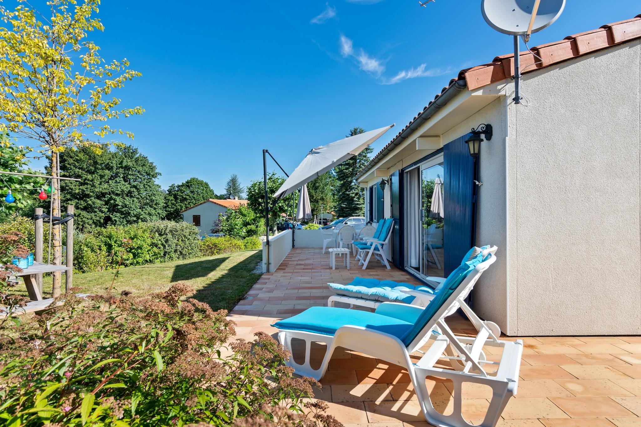 Dette koselige feriehuset ligger i en bungalowpark i Écuras, Poitou-Charentes. Huset har 2 soverom, hvor totalt 4 personer kan overnatte. Så det er ideelt for familier. Det er et oppvarmet basseng på eiendommen og feriehuset har en vakker, stor privat hage med mye grønt. Leter du etter fred og god plass i vakre omgivelser? Da er Rouzède det rette stedet for deg. Dette feriehuset ligger i Écuras, 15 minutter fra Dordogne. Avdelingen med flest soltimer bortsett fra Provence. Regionen er kjent for sitt bølgende landskap, og du kan ikke ignorere det når du bor i dette feriehuset. Huset ligger derfor direkte på sykkel / terrengsykkel og turvei, som det er mange i umiddelbar nærhet av huset. Foruten sykling og fotturer, tilbyr området mange andre aktiviteter. Du kan svømme og fiske i nærliggende større innsjøer innen en halv times kjøretur. Den vakre golfbanen La Preze (18 hull) ligger 1 km unna. Kanopadling er mulig i området, og selvfølgelig er de mange regionale markedene i området en god måte å oppleve autentisk Frankrike på. For gourmeter er det flere restauranter og i nærheten av huset. Endelig anbefales en tur til den befestede byen Angoulême. Nettstedet der dette feriehuset ligger, har forskjellige fasiliteter for underholdning. Det er 2 svømmebassenger, det er en tennisbane, en jeu de boules-bane, et bordtennisbord og diverse lekeplassutstyr. Du kan også leie sykler der. Feriehuset har egen hage og terrasse. Det er parkering tilgjengelig, og du kan tenne på grillen en hyggelig sommerkveld.