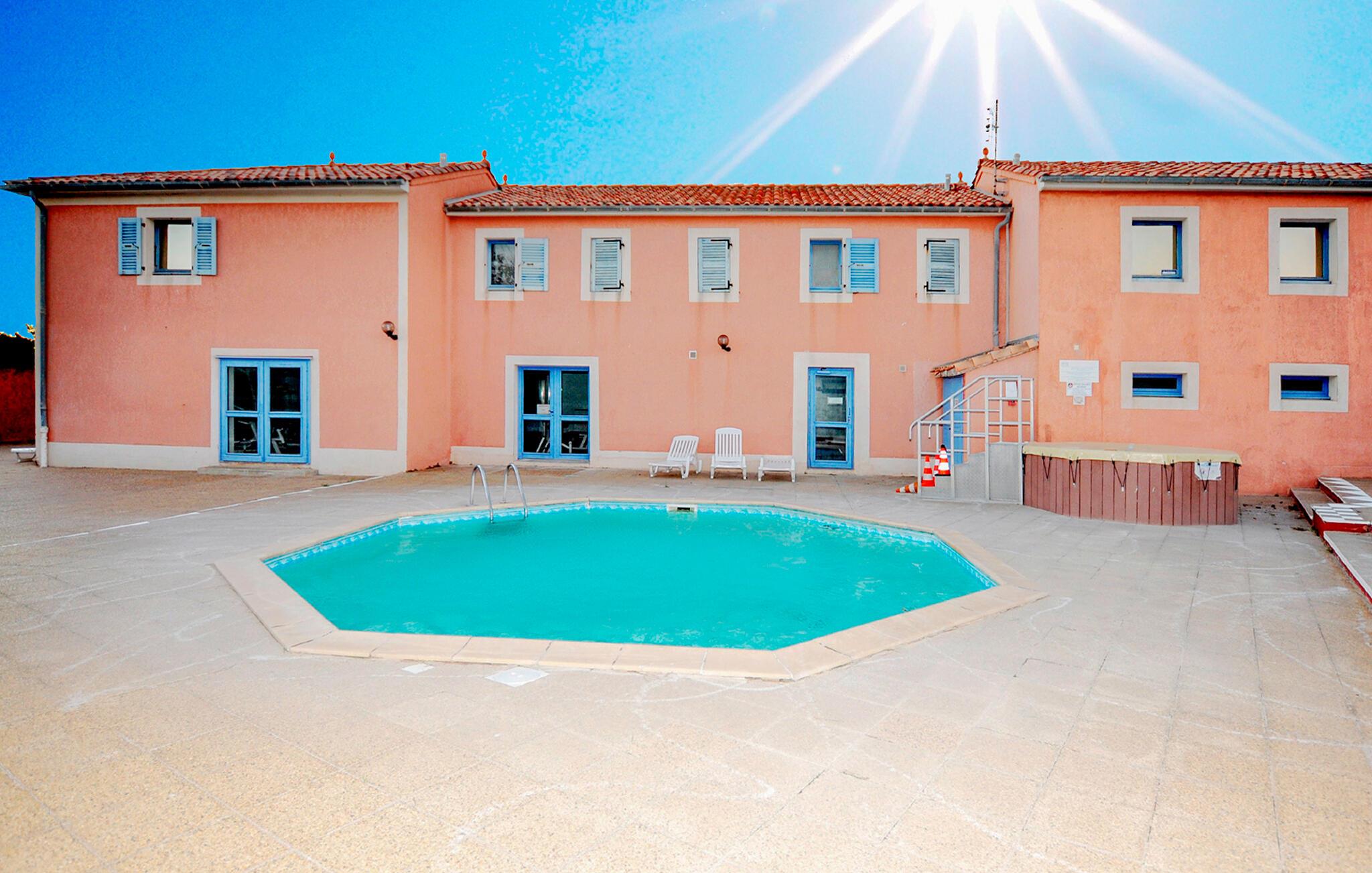 Gled deg til solfylte dager i dette sjarmerende feriehuset med felles basseng.