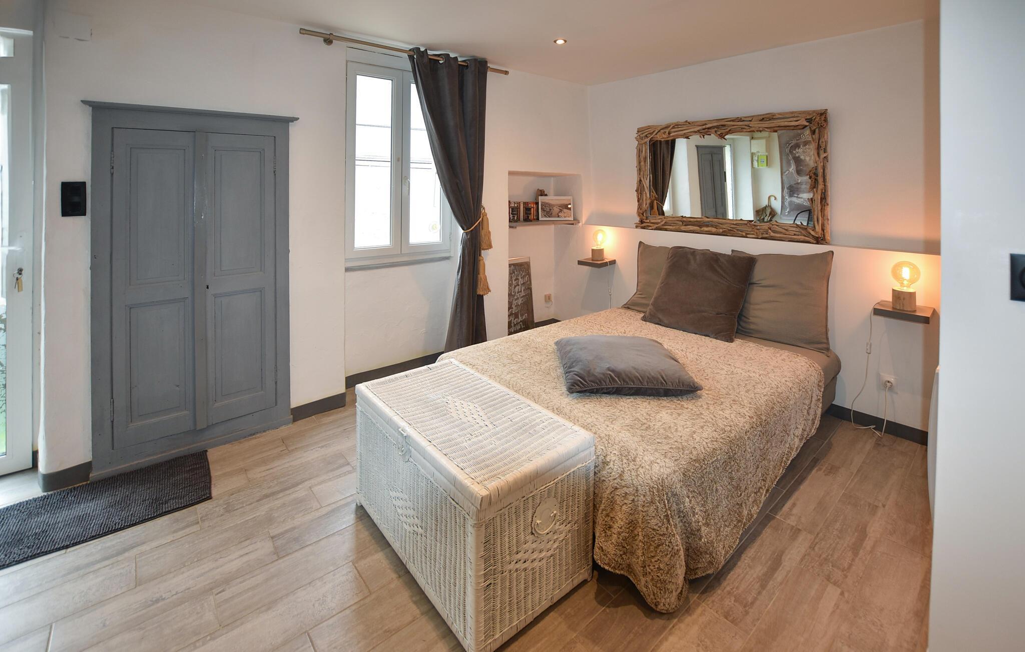 Den varme innredningen og den romslige atmosfæren gjør det lett å føle seg hjemme her. Dette huset, med sin koselige terrasse og sjarmerende detaljer, er perfekt for å slappe av etter en begivenhetsrik dag i regionen. Start dagen med en kaffe på terrassen, eller nyt de lune kveldene utendørs. Med sine tykke steinvegger byr huset på en behagelig svalhet om sommeren, mens den åpne planløsningen er ideell for sosialt samvær. De tradisjonelle elementene kombineres harmonisk med moderne bekvemmeligheter, og tilbyr det perfekte tilfluktsstedet i vakre Aiguèze.
