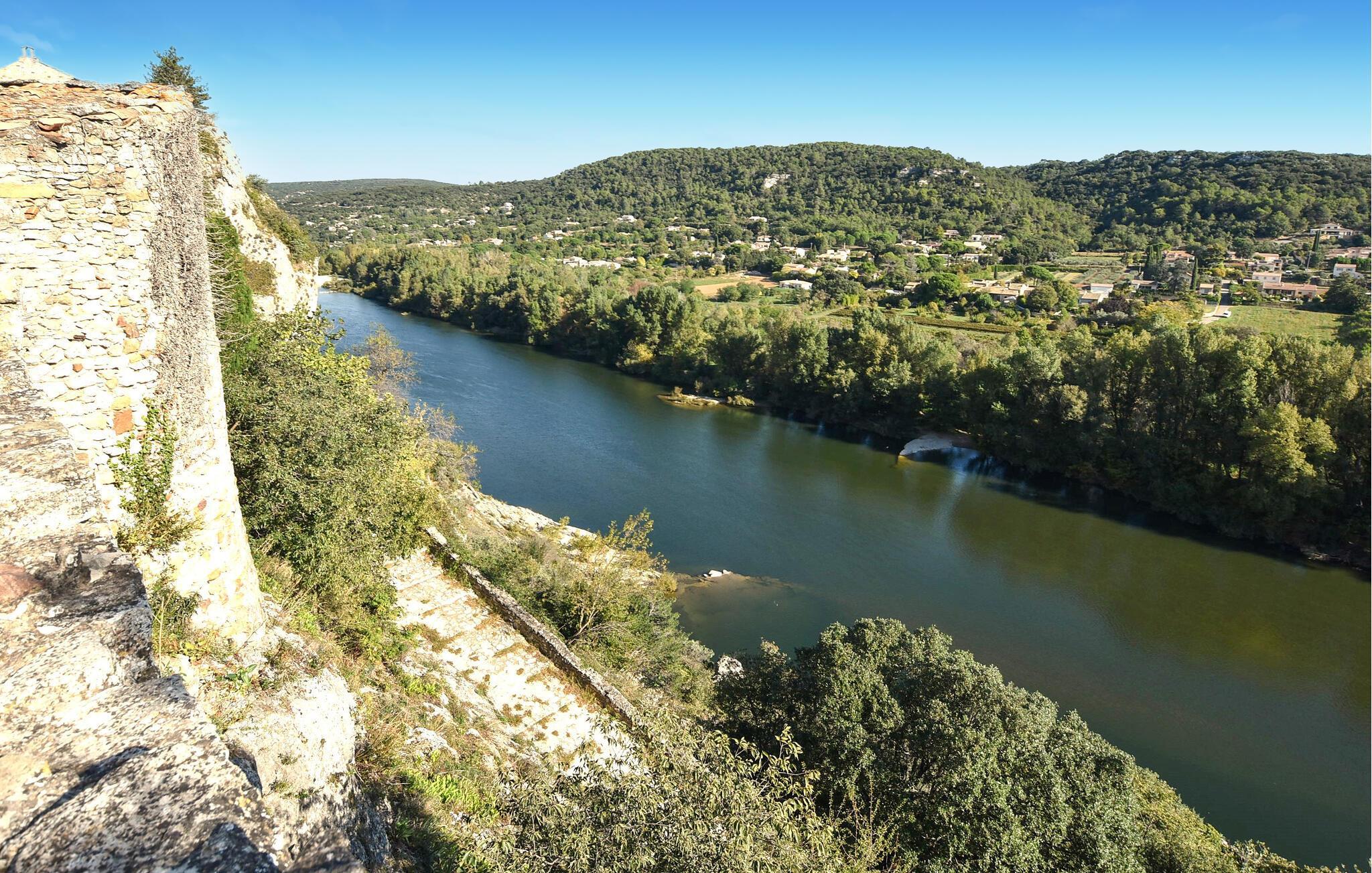Opplev autentisk sjarm i dette rolig beliggende steinhuset i den pittoreske landsbyen Aiguèze, rett ved bredden av Ardèche!