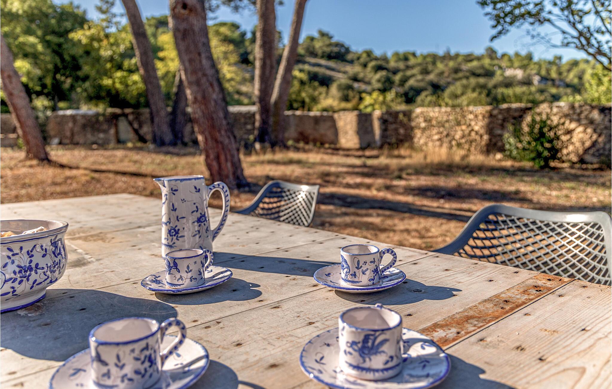 På den vakre eiendommen finnes det koselige skyggefulle steder å lese og slappe av. Server frokosten i det fri, ta en dukkert i bassenget og slå av en prat over et glass vin i de provençalske sommernettene.