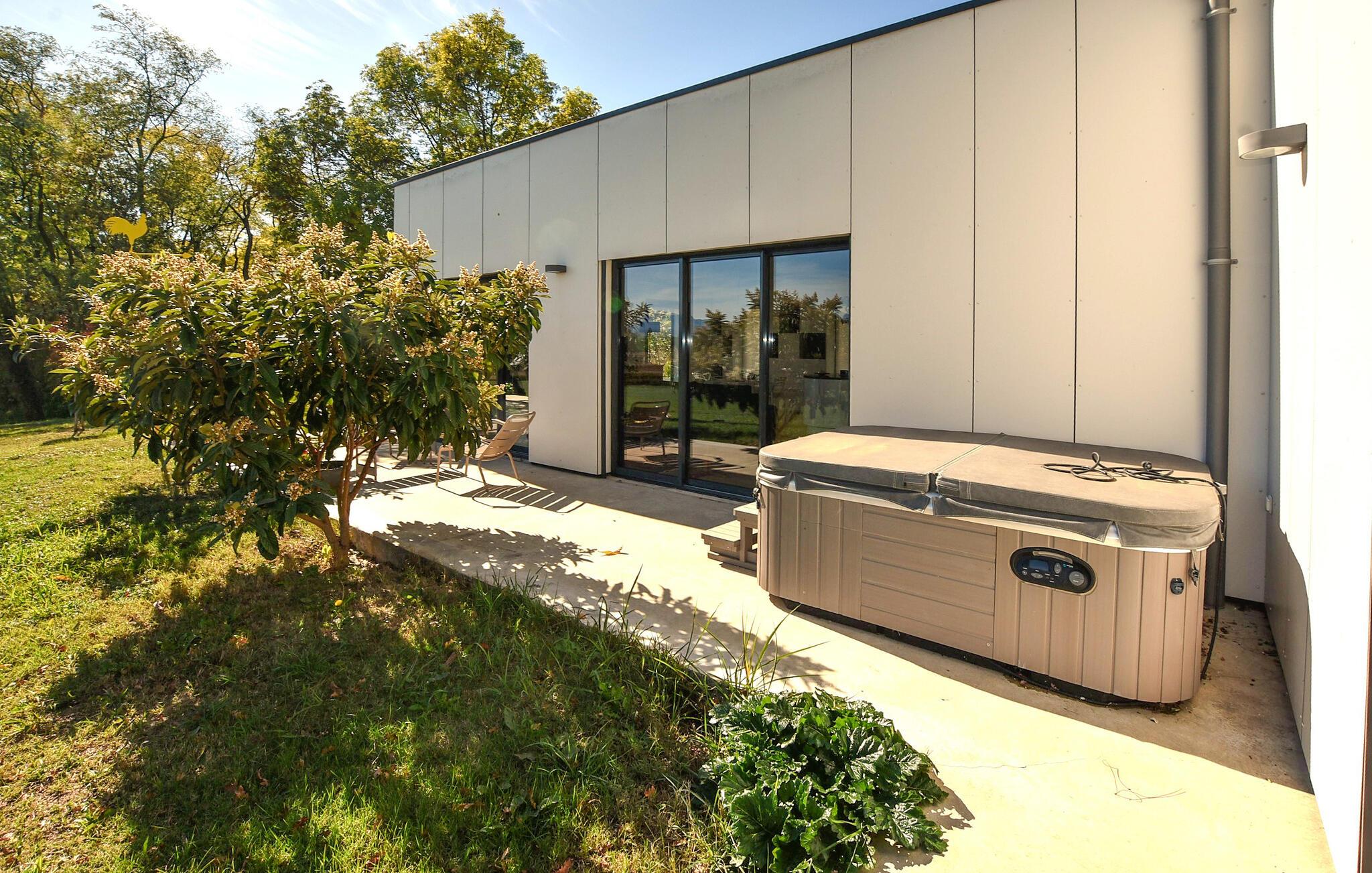 På varme dager kan du forfriske deg i det felles bassenget, eller unne deg noen koselige stunder i boblebadet. Nyt frokosten på terrassen med utsikt over det vidstrakte landskapet, og tilbered deilige retter på grillen.