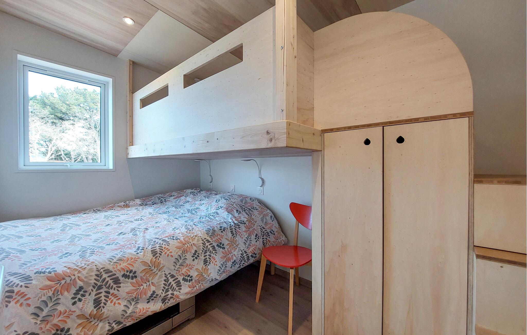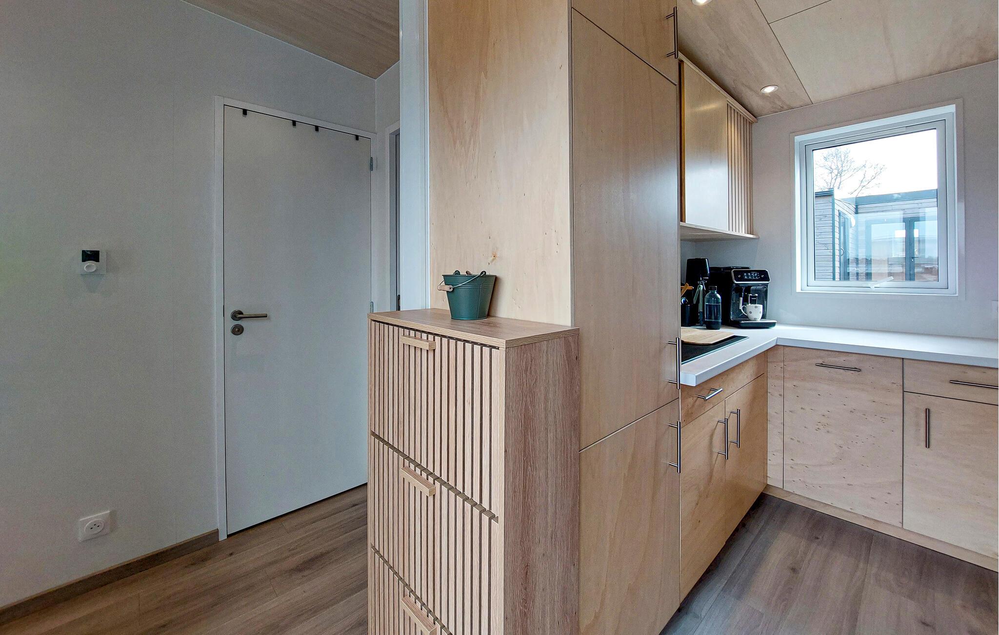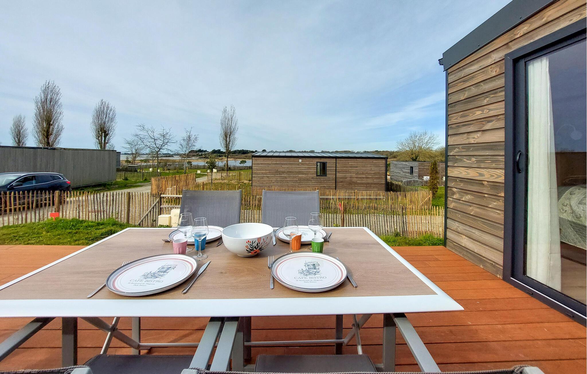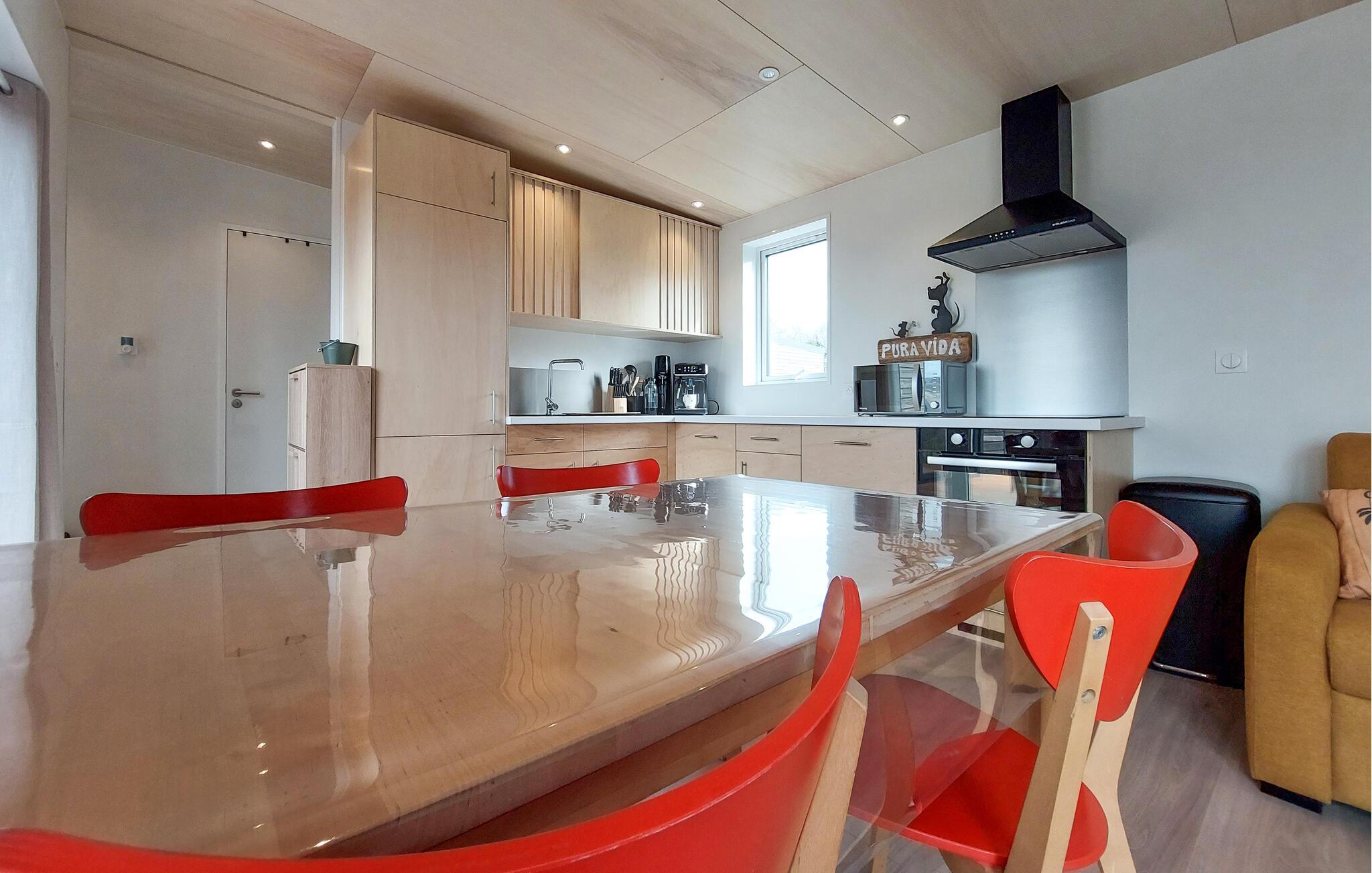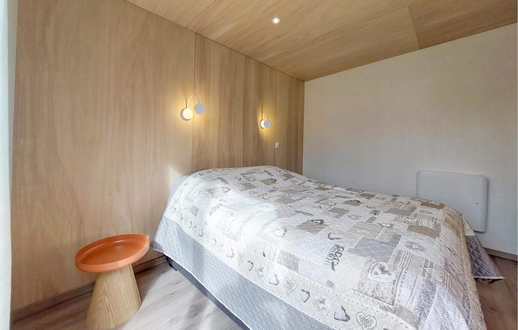 Tilbring ferien i denne moderne og komfortable boligen med trefasade og romslig terrasse. Hytten ligger i et velholdt feriekompleks i Bétahon, bare noen få skritt fra sjøen. Nyt den koselige atmosfæren i lyse, naturlige toner. Den åpne stuen er innredet med en koselig sofa, TV og en stilfull spiseplass. På kjøkkenet kan du enkelt lage mat til deg selv. Hent ferske ingredienser og lag dine favorittretter sammen.