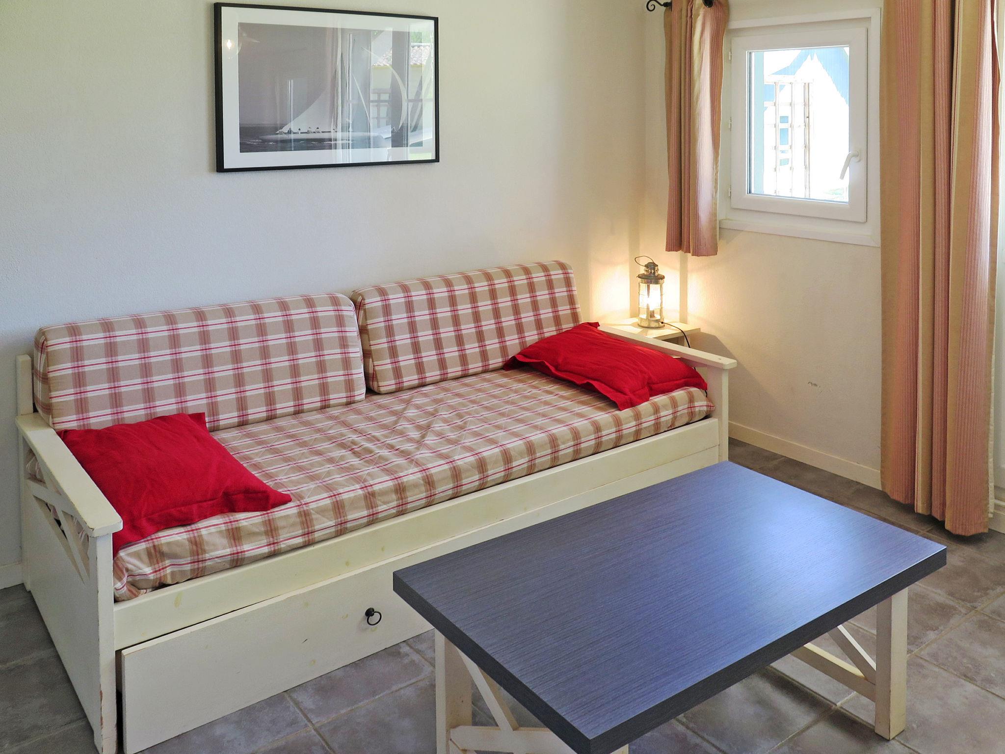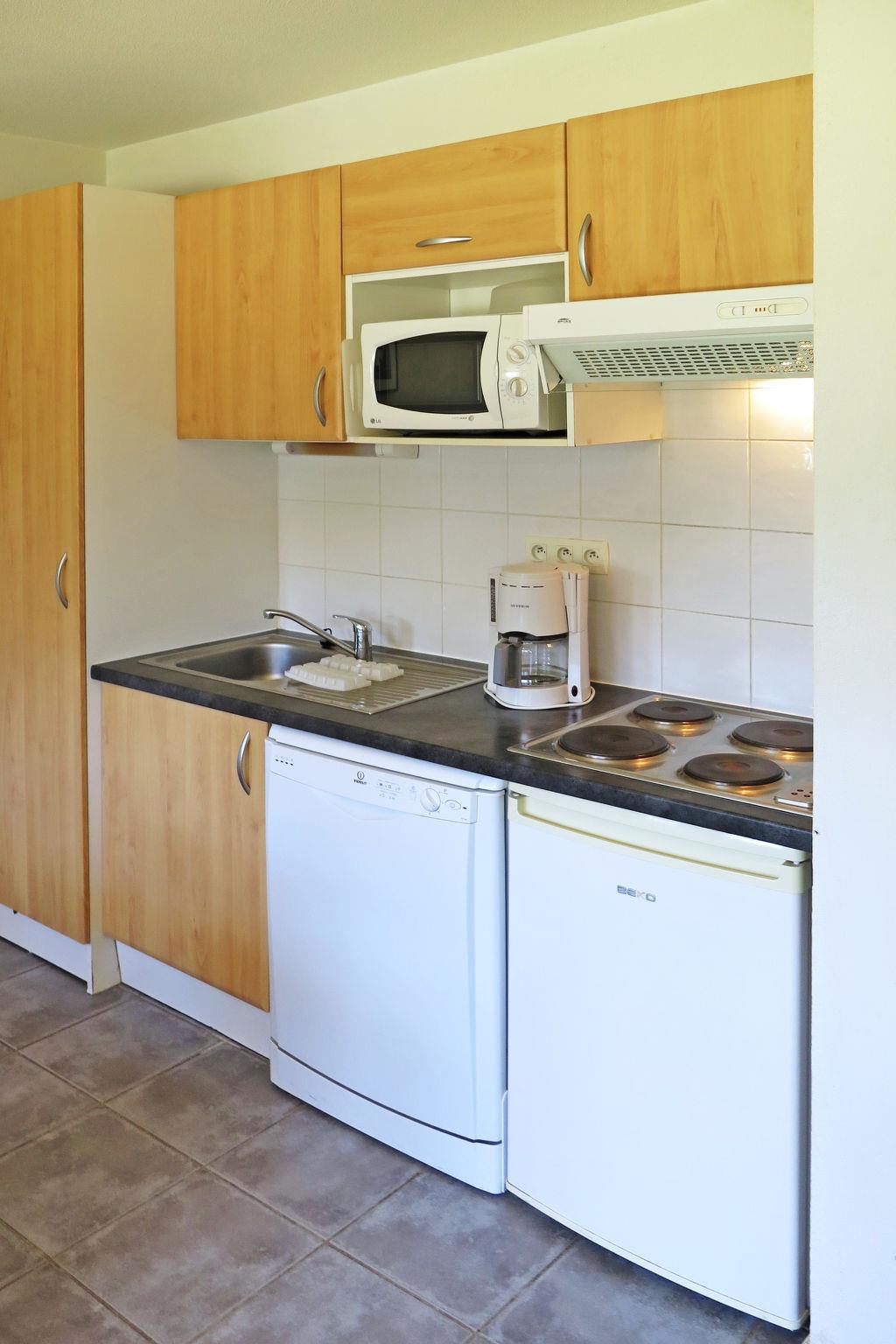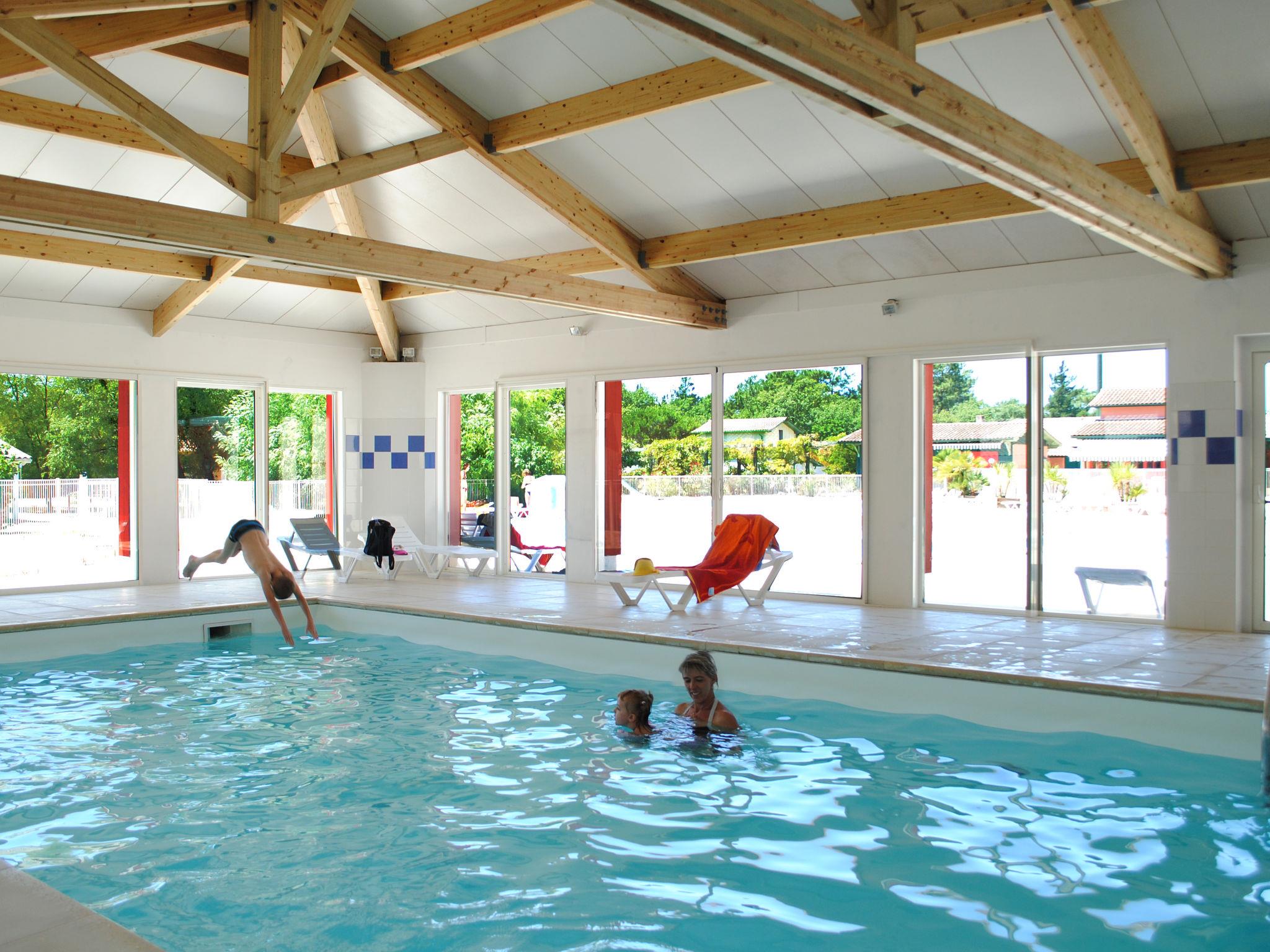 Child friendly resort "Les Rives de Saint Brice". 3 km from the centre of Andernos, 3 km from the centre of Arès, 50 km from the centre of Bordeaux, 10 km from the sea, 10 km from the beach. For shared use: natural state property 7 ha with lawn and trees, swimming pool, indoor pool fenced (12 x 5 m, seasonal availability: 01.Jan. - 31.Dec.). Children's pool, terrace. In the complex: reception, internet access, WiFi, fitness room, table tennis, washing machine, tumble dryer (for shared use, extra), bicycle rental. Parking (limited number of spaces). Shop 1 km, sandy beach "Bassin d'Arcachon" 800 m, swimming bay. Please note: car-free holiday complex. The photograph shows a typical example. The holiday properties may differ in living space, floorplan, equipment and furnishing.
