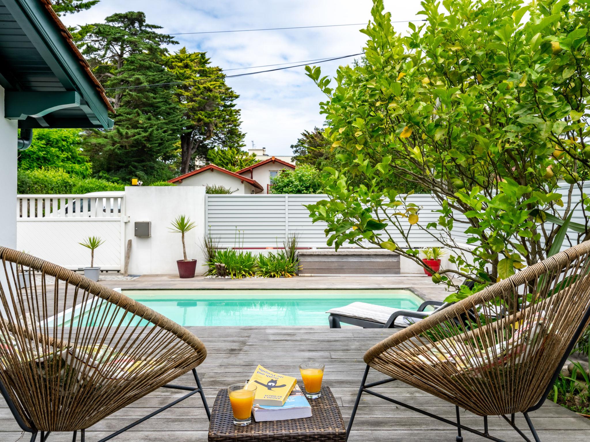 Anglet 2 km from Biarritz: Villa "Liserons". Golf du Phare, in a quiet position, 1.6 km from the sea, 1.6 km from the beach. Private: property 460 m2, garden lawn and wildlife garden, swimming pool (3 x 5 m, seasonal availability: 01.Jun. - 30.Sep.) with shutter cover. Parking (for 2 cars) on the premises. Shop, grocery 600 m, restaurant 500 m, bus stop "Larochefoucault" 700 m, sandy beach "Le Miramar" 1.6 km, thermal baths "Athlantal" 4.6 km. Golf course (18 hole) 800 m, surf school 1.6 km, tennis 1.2 km, riding stable 12.9 km. Nearby attractions: Golf du Phare 800 m, Halles des 5 Cantons 1.3 km, Phare de biarritz 1.9 km, Aquarium 3 km, Bayonne 6.2 km, Saint-Jean-de-Luz 17 km. Hiking paths: Le Sentier du Littoral 800 m, La Rhune 28 km.
