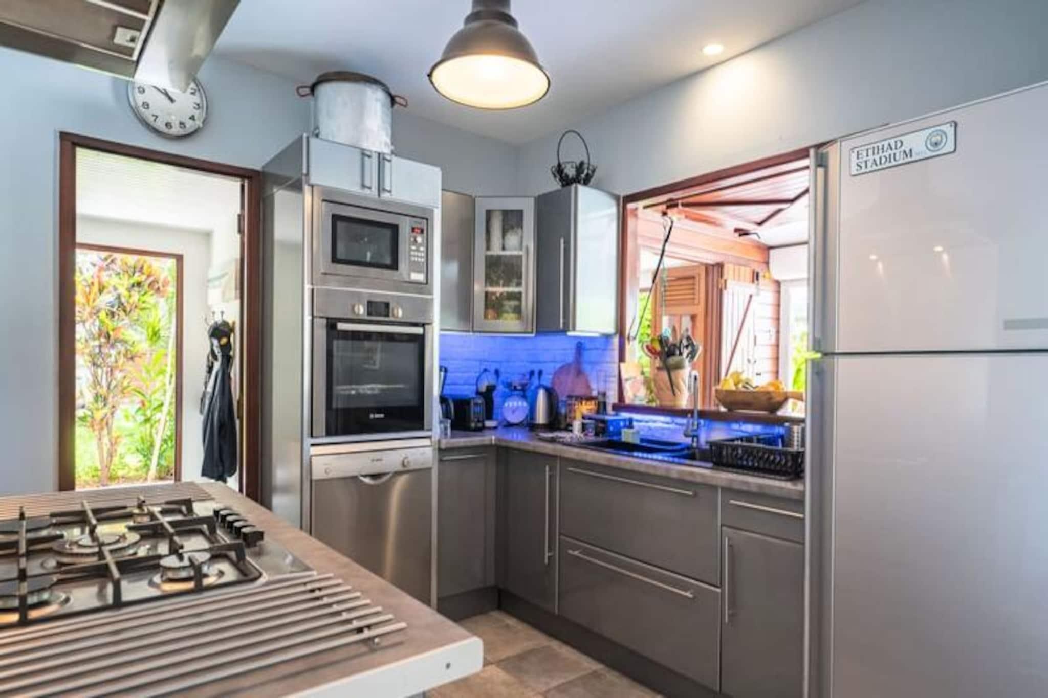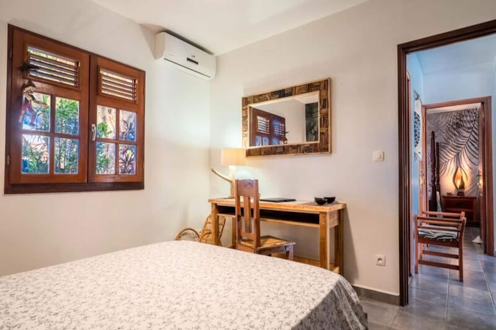 Midt i de fredelige sukkerrøråkrene i Anse-Bertrand tilbyr Villa Catalunya et idyllisk tilfluktssted fylt med karibisk sjarm. Her setter den milde raslingen fra sukkerrøråkrene og den fjerne havutsikten over Montserrat og Antigua scenen for en rolig flukt. Fra det øyeblikket du ankommer, vil du bli møtt med varm gjestfrihet, lokale cocktailer og et løfte om uforglemmelig avslapning under den tropiske solen. Denne 3-stjerners trevillaen blander autentisk karibisk arkitektur med moderne komfort, og skaper en oase av fred og privatliv. Villa Catalunya strekker seg over 118 m² og har plass til opptil seks gjester i tre soverom med klimaanlegg, hvert designet for avslappende netter med myke senger på 140 og 160 cm. Det fullt utstyrte kjøkkenet åpner ut mot en romslig stue og spisestue, perfekt for å dele måltider og latter. Gå ut for å oppdage ditt private saltvannsbasseng, sikret for sikkerhet, hvor forfriskende dukkerter venter når som helst. Utendørsbaren, grillen og petanquebanen inviterer deg til å nyte avslappende ettermiddager og kvelder under stjernene. En tradisjonell karibisk seng og en utendørs dusj gir dette tropiske fristedet unike detaljer. Villa Catalunya ligger bare 9 km fra det berømte surfestedet i Port Louis, og er perfekt plassert for å utforske de nordlige skattene i Grande-Terre. De bølgende sukkerrøråkrene og nærliggende kystperler fordyper deg i Guadeloupes naturlige skjønnhet, mens landsbyen Anse-Bertrand tilbyr alle nødvendige fasiliteter innen kort kjøretur. Enten du søker eventyr eller ro, er denne villaen din inngangsport til en autentisk øyopplevelse. Med høyhastighets Wi-Fi, effektiv klimaanlegg og en dedikert concierge-tjeneste, er hver detalj omhyggelig arrangert for din komfort. Fra personlige utflukter til skreddersydde reiseruter, sikrer Villa Catalunya et sømløst og berikende opphold. La dette tropiske paradiset være bakteppet for dine mest verdifulle minner i Guadeloupe.