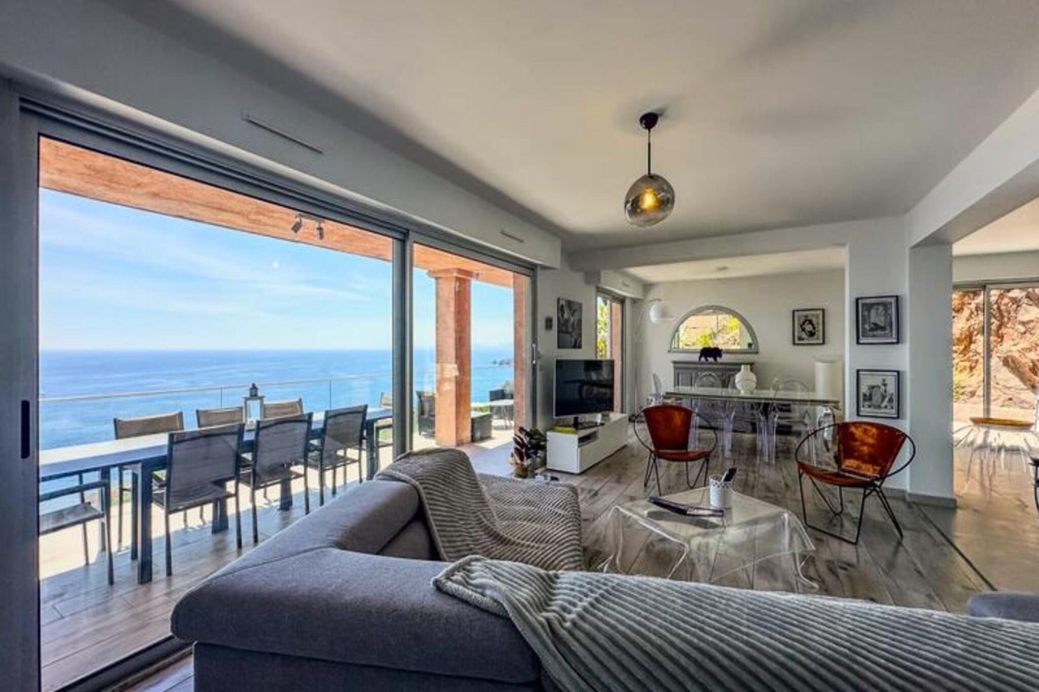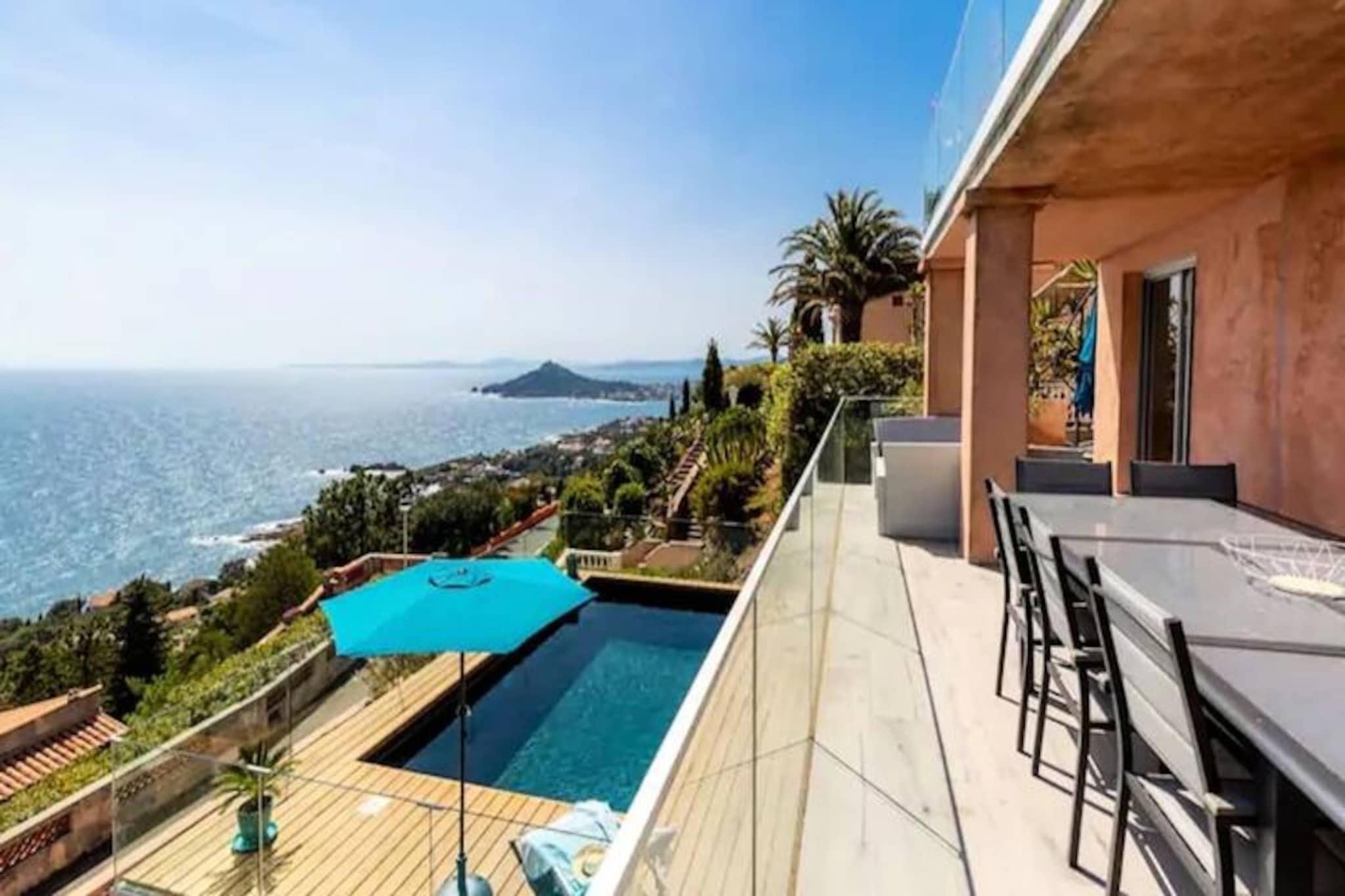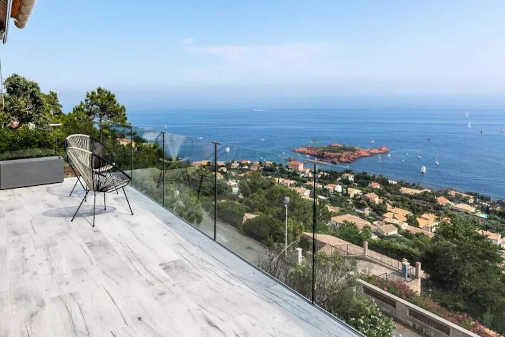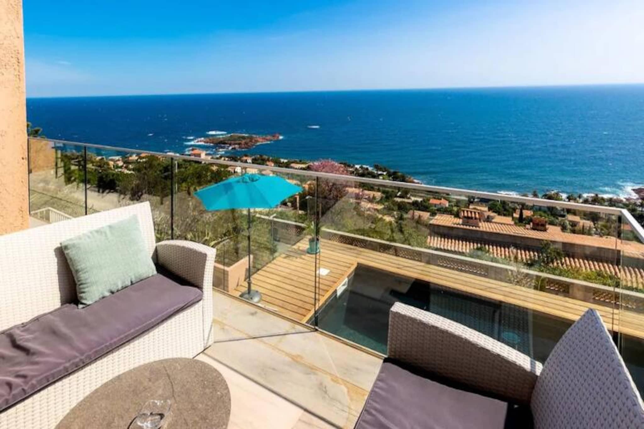 Tenk deg å våkne opp til det glitrende blå Middelhavet, med duften av furutrær og de ikoniske røde klippene i Estérel-massivet rundt deg. Denne moderne villaen på den franske rivieraen tilbyr et rolig tilfluktssted for opptil 8 gjester, og blander moderne luksus med den tidløse sjarmen til Côte d'Azur. Enten du er her for å slappe av ved bassenget eller utforske den livlige regionen, er denne villaen din inngangsport til en uforglemmelig ferie. Villaen er fordelt på fire etasjer og har 1000 m² uteareal og fantastisk havutsikt fra alle hjørner. Første etasje har en lys stue og spisestue med direkte tilgang til en terrasse, et fullt utstyrt kjøkken og flere uteområder som er perfekte for å spise utendørs. Ovenpå ligger tre soverom med havutsikt, hvorav to med queen-size-senger, som gir deg et rolig tilfluktssted, mens det private oppvarmede bassenget og de solfylte terrassene inviterer deg til å slappe av med stil. Moderne fasiliteter, som JBL-høyttaler og grillutstyr, sørger for at oppholdet ditt blir like komfortabelt som minneverdig. Villaen ligger i hjertet av Estérel-massivet og er et paradis for naturelskere og eventyrere. Utforsk tur- og terrengsykkelløyper, eller ta en kort kjøretur til de nærliggende strendene for å nyte krystallklart vann og vannsport. Glamourøse Cannes ligger bare 25 minutter unna, mens Nice lufthavn og Saint-Tropez er innen rekkevidde, noe som gjør dette til det perfekte utgangspunktet for å oppdage skattene på den franske rivieraen. Enten du søker ro, eventyr eller en blanding av begge deler, tilbyr denne villaen den perfekte rammen for å skape minner for livet. La Middelhavets skjønnhet inspirere din neste ferie.