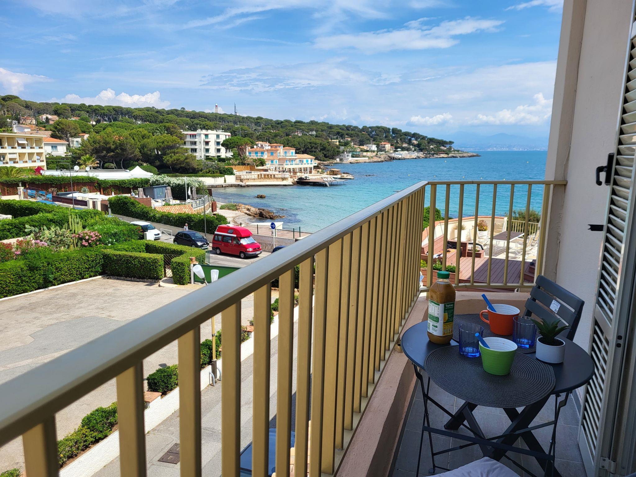 2-room apartment 45 m2 on 2nd floor. Simple furnishings: living/dining room with 1 sofabed (140 cm, length 190 cm). Exit to the balcony. 1 room with 1 french bed (160 cm, length 200 cm). Open kitchen (4 hot plates, oven, microwave). Shower/WC. Electric heating. Balcony 5 m2. Side view of the sea. Facilities: Internet (WiFi, extra). Please note: maximum 1 pet/ dog allowed. TV only FR. Smoke alarm. 06004192980CM