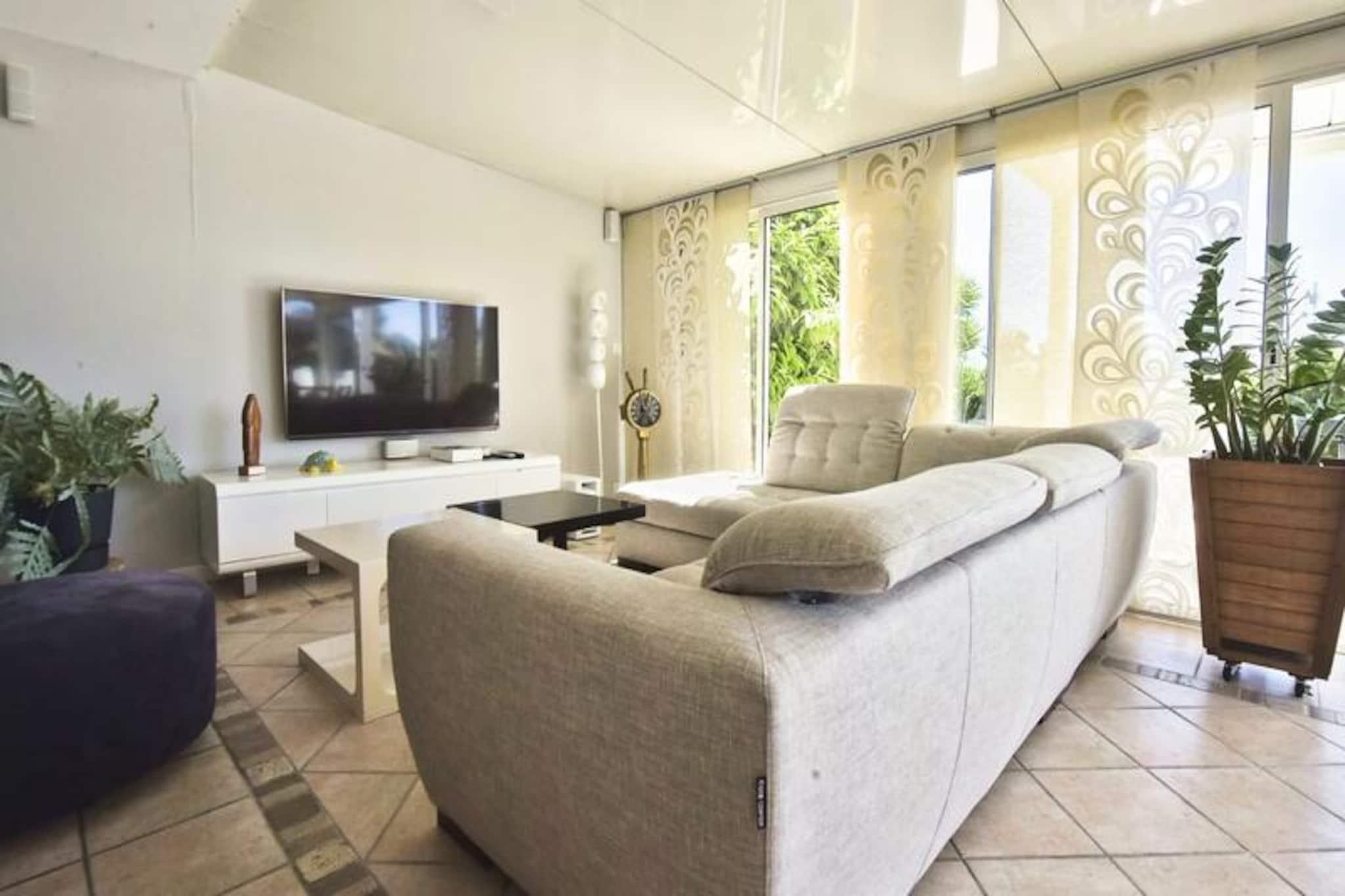Nyt middelhavssjarmen i denne herlige villaen i hjertet av Antibes, hvor hver minste detalj er utformet for din ultimate avslapning. Med et stort svømmebasseng, et glimt av det glitrende havet og en sørvendt beliggenhet for å nyte solen hele dagen, tilbyr denne eiendommen det perfekte tilfluktsstedet for familier eller venner som søker en luksuriøs ferie. Omgitt av den pulserende sjarmen til den franske rivieraen, inviterer denne villaen deg til å oppleve det beste av kystlivet. Gå inn og oppdag 160 m² med gjennomtenkt designet boareal fordelt på to etasjer. Første etasje har en romslig dobbel stue som åpner direkte ut mot en solfylt terrasse, ideell for late ettermiddager eller livlige kvelder. Et fullt utstyrt kjøkken med barområde setter scenen for minneverdige måltider, mens tilleggsfunksjoner som et bibliotek og kontorplass sikrer både komfort og bekvemmelighet. Ovenpå venter tre romslige soverom med dobbeltsenger, inkludert et hovedsoverom med terrasseutgang og fantastisk utsikt. Det luksuriøse badet, komplett med hjørnebadekar, gir et snev av luksus til oppholdet ditt. Utenfor skinner villaen virkelig. Slapp av ved det store svømmebassenget, fyr opp grillen for å spise utendørs, eller nyt et hyggelig spill med bordtennis. Med høyhastighets Wi-Fi, klimaanlegg på alle soverom og parkering for to biler, er all moderne komfort lett tilgjengelig. Med en perfekt beliggenhet, er du bare noen minutter fra sandstrendene i Antibes, det historiske Fort Carré og den sjarmerende gamlebyen med sine travle markeder og kulturelle landemerker som Picasso-museet. For familiemoro ligger Marineland og Valmasque Park en kort kjøretur unna, mens nærliggende byer som Cannes og Juan-les-Pins tilbyr uendelige muligheter for utforskning. Enten du er her for å slappe av eller dra på eventyr, er denne villaen din inngangsport til magien på Côte d'Azur.