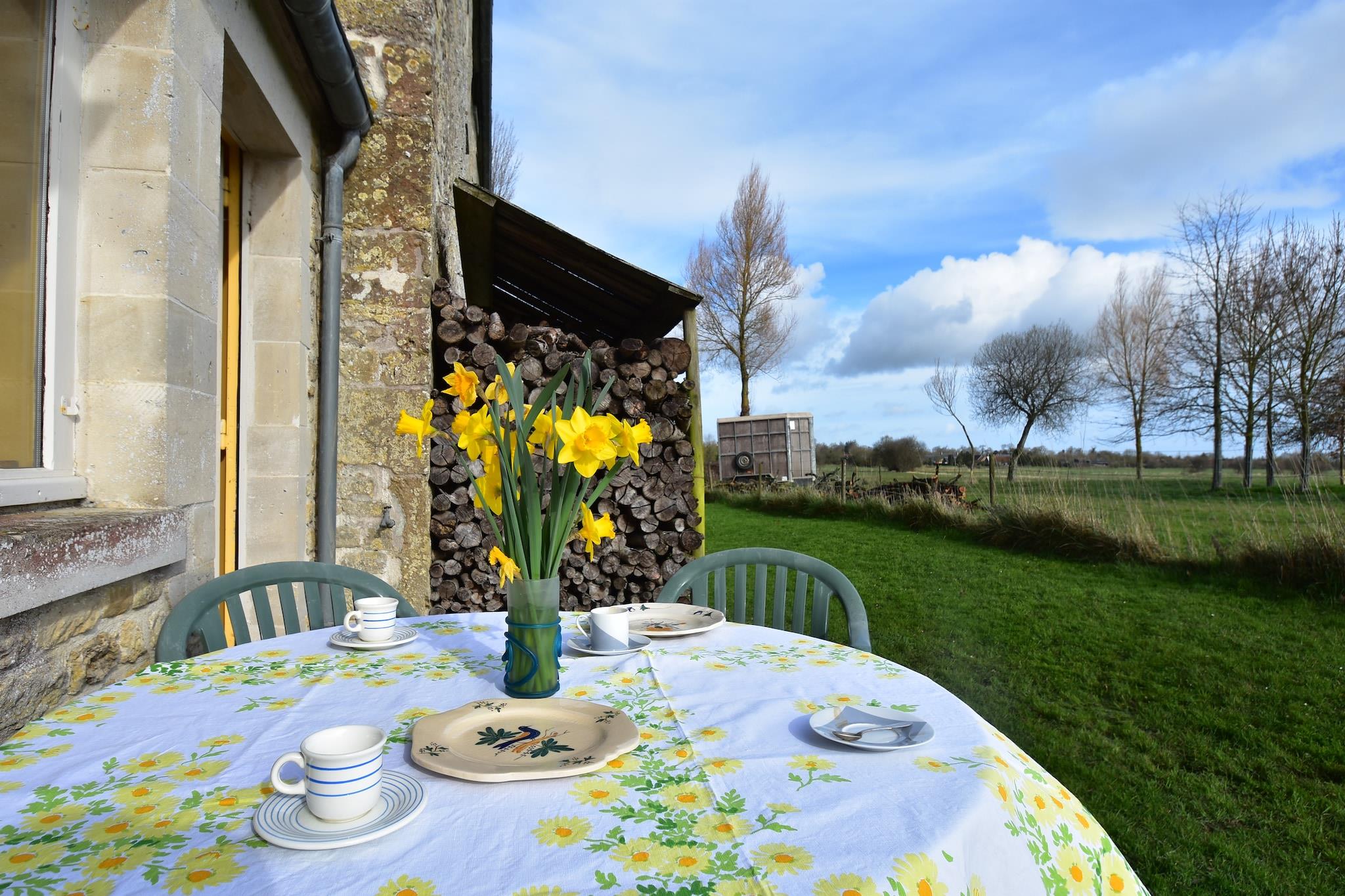 Velkommen til La Cigogne, en sjarmerende gîte som ligger i Baie des Veys, i hjertet av Cotentin og Bessin Marshes regionale naturpark. Dette rolige tilfluktsstedet for opptil 4 gjester ligger ved siden av en bolig fra 1700-tallet, og tilbyr en stue, et soverom med to enkeltsenger og en mesanin med en dobbeltseng. Nyt morgensolen på den østvendte terrassen, eller slapp av i den private hagen mens du ser storkene hekke bare 40 meter unna. Gîte ligger i Appeville, kun 1 km fra dens romanske kirke fra 1200-tallet og 3 km fra butikkene i Baupte, og har en ideell beliggenhet for å utforske Normandies rike arv. Besøk Utah Beach (20 minutter), Omaha Beach (40 minutter) og Sainte-Mère-Église (15 minutter), eller ta en dagstur til Bayeux, Cherbourg eller den amerikanske kirkegården. Naturelskere vil nyte fugletitting, båtliv og spaserturer langs GR 223 kyststien, mens aktive gjester kan få tilgang til ridning (10 minutter), svømming (15 minutter) og tennis (15 minutter). Med gratis Wi-Fi, fredelige omgivelser og enkel tilgang til både øst- og vestkysten, er La Cigogne en perfekt base for flukt fra Normandie.