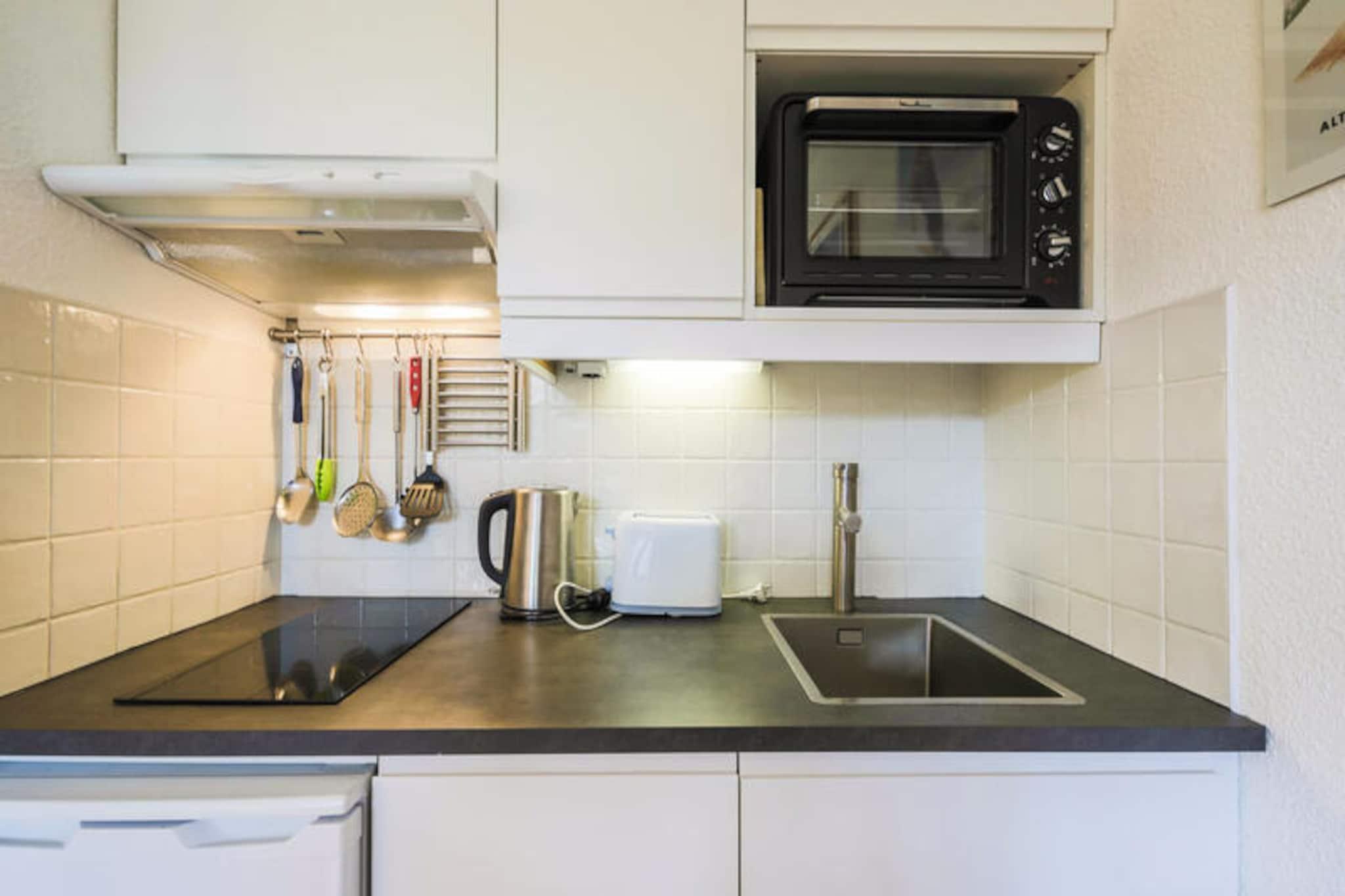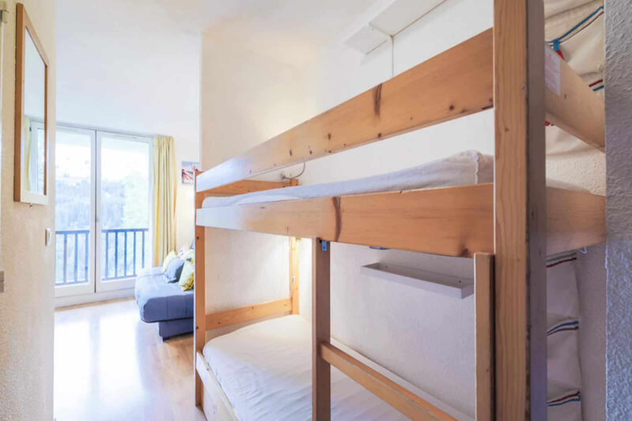 Høyt over det pittoreske landskapet i de franske Alpene ligger denne sjarmerende leiligheten i Sirius Residence, som tilbyr et rolig tilfluktssted i hjertet av Flaine's Forêt-distrikt. Eiendommen ligger i 1700 meters høyde og inviterer deg til å fordype deg i den fantastiske naturen, samtidig som du kan nyte fordelene ved en livlig alpin landsby bare noen få skritt unna. Enten du er ute etter eventyr eller avslapning, tilbyr dette stedet den perfekte balansen mellom begge deler. Den koselige leiligheten på 25 m² er gjennomtenkt designet for å maksimere komfort og funksjonalitet. Den har en innbydende stue med en treseter sofa, et åpent kjøkken utstyrt for alle dine kulinariske behov og en spiseplass med plass til fire personer. Soveplassene består av to alkove: en med dobbeltseng og den andre med køyesenger, noe som gjør den ideell for familier eller små grupper. En privat balkong tilbyr fantastisk utsikt over de frodige omgivelsene, mens badet med badekar og separat toalett sikrer bekvemmelighet under oppholdet. Ligger bare 50 meter fra kjøpesenteret i Forêt-distriktet, har du enkel tilgang til butikker, restauranter og viktige fasiliteter. En heis forbinder deg med Flaine Forum, det livlige sentrum av feriestedet, hvor du finner barer, aktiviteter og underholdning. For skientusiaster ligger Grand Massif-skiområdet bare 500 meter unna, tilgjengelig til fots eller med gratis skibuss. Om sommeren kan du utforske turstier, terrengsykkelløyper og regionens rike kulturtilbud. Enten du er her for å kjøre ned uberørte bakker eller bare slappe av i den rolige alpine atmosfæren, tilbyr denne eiendommen en innbydende base for uforglemmelige minner i Flaine. Opplev magien i fjellene hvert øyeblikk av oppholdet ditt.