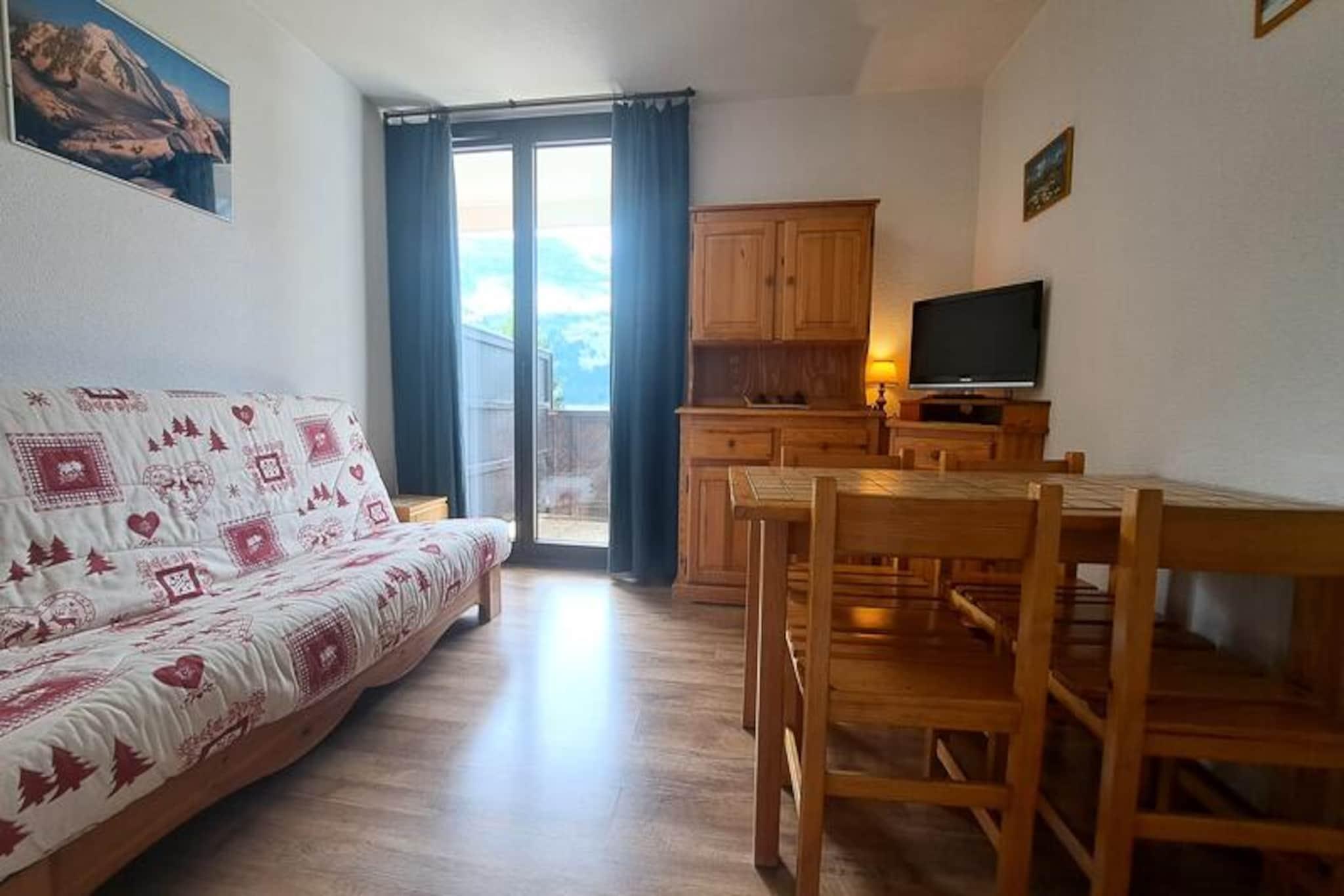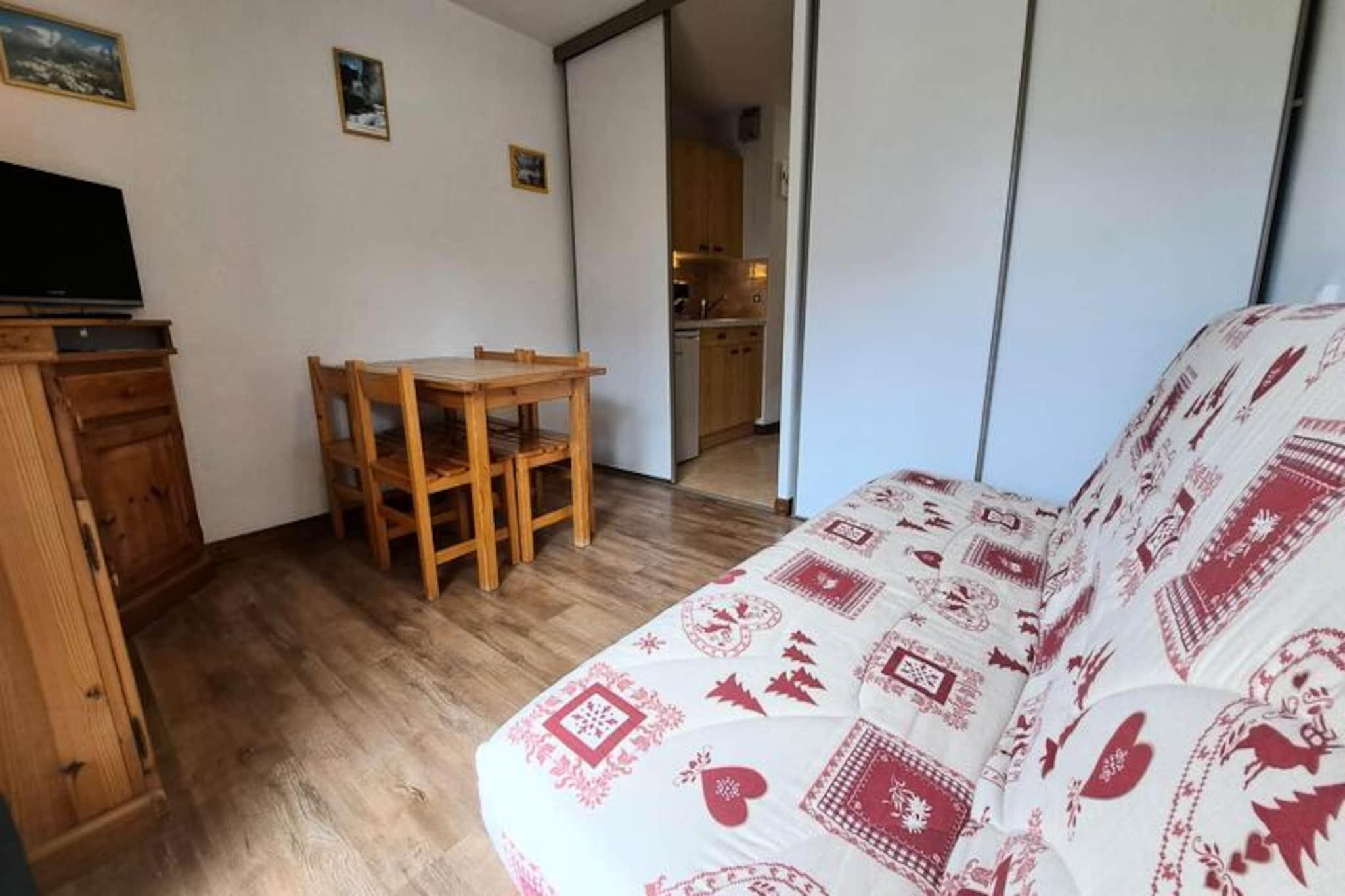 Tenk deg å våkne opp til frisk fjelluft og fredelig utsikt over alpene i hjertet av Flaine Forêt. Résidence Doris tilbyr et rolig tilfluktssted, perfekt plassert for de som søker både avslapning og eventyr. Denne koselige leiligheten ligger gjemt bort fra kjas og mas i feriestedets sentrum, og byr på en fredelig oase samtidig som du har alt du trenger innen rekkevidde. Bare 250 meter unna finner du kjøpesenteret Flaine Forêt, som tilbyr en matbutikk og andre bekvemmeligheter, slik at du har alt du trenger for et komfortabelt opphold. For mer livlige aktiviteter, barer og restauranter, er Flaine Forum bare en kort heistur unna, og forbinder deg uanstrengt med det livlige hjertet av feriestedet. Selve leiligheten er gjennomtenkt designet for å maksimere komfort og funksjonalitet innenfor sitt 26 m² store område. Stuen har en sovesofa for to, mens en koselig sovealkove med køyesenger er perfekt for barn eller ekstra gjester. Det åpne kjøkkenet er utstyrt for å tilberede solide måltider etter en dag i bakken, og spisestuen har komfortabel plass til fire. En privat balkong inviterer deg til å slappe av med en varm drikke mens du nyter det omkringliggende fjellandskapet. Badet har badekar for et avslappende bad, og et separat toalett gjør oppholdet ditt enda mer komfortabelt. Résidence Doris ligger ved foten av Gerats-stolheisen, og er en inngangsport til det berømte skiområdet Grand Massif. Enten du er en ivrig skiløper eller nybegynner, stopper den gratis Skibus-bussen rett utenfor residensen, noe som sikrer rask og enkel tilgang til bakkene. Om sommeren forvandles fjellene til en lekeplass for turgåere og naturentusiaster, og tilbyr fantastiske stier og utendørseventyr. Velg Résidence Doris for din neste alpine ferie og opplev den perfekte blandingen av ro, bekvemmelighet og fjellsjarm. Enten du er her for snøen eller sommersolen, lover dette sjarmerende tilfluktsstedet uforglemmelige minner.