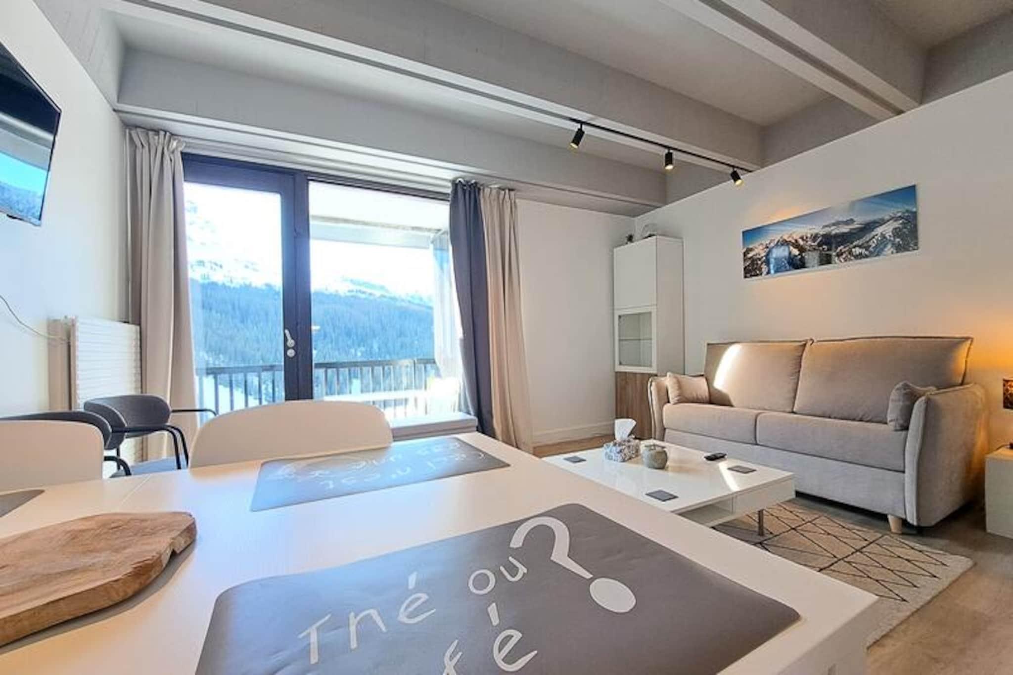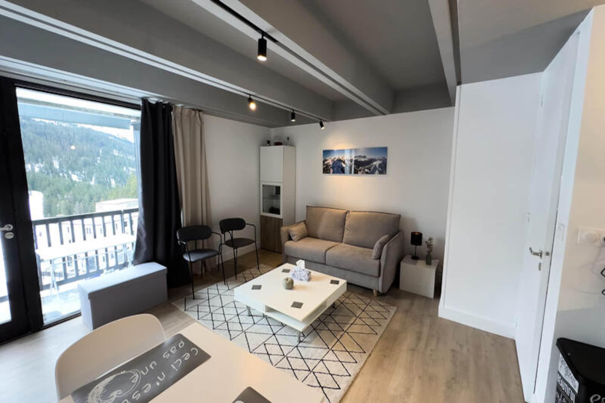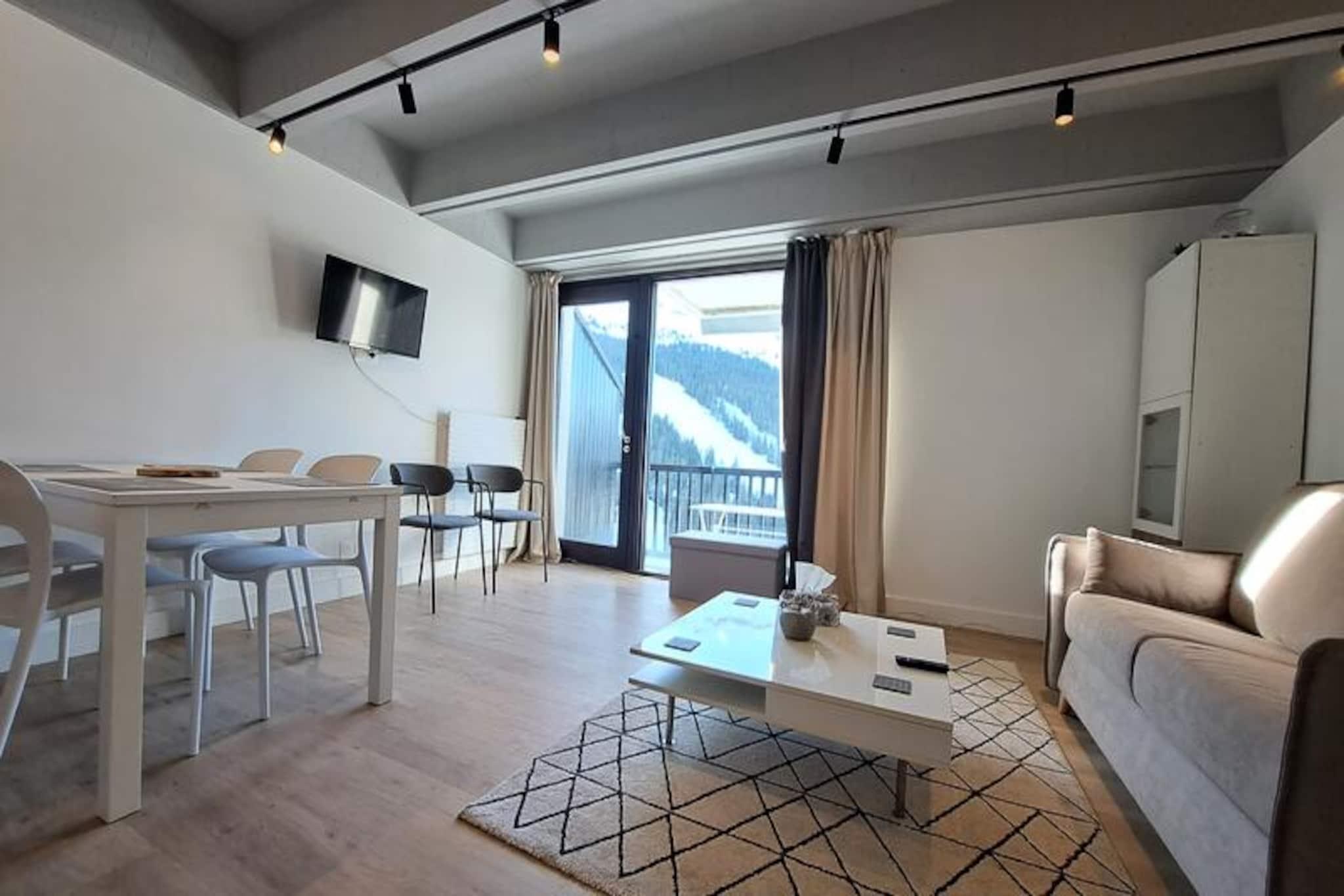 Høyt over det fredelige alpine landskapet i Flaine, tilbyr Aldébaran Residence i Forum-distriktet en uslåelig beliggenhet for din fjellferie. Dette pulserende knutepunktet er hjertet av feriestedet, hvor sjarmen til snødekte topper møter den livlige energien til butikker, restauranter og afterski-aktiviteter. Tenk deg å gå ut av ditt koselige tilfluktssted og befinne deg bare 50 meter fra kjøpesenteret Flaine Forum, med alt du trenger lett tilgjengelig. Residensen er designet for komfort og bekvemmelighet, med en 43 m² stor leilighet i 8. etasje. Med en planløsning som inkluderer en lys stue med sovesofa, et halvåpent kjøkken, et soverom med dobbeltseng og en sovealkove med køyesenger, er den perfekt for familier eller grupper på opptil seks personer. To balkonger gir fantastisk utsikt over de omkringliggende fjellene, mens moderne fasiliteter som Wi-Fi, vaskemaskin og et velutstyrt kjøkken sikrer et problemfritt opphold. Etter en dag i bakken kan du slappe av i den romslige spisestuen eller nyte et stille øyeblikk på balkongen, mens du nyter den friske fjelluften. Skientusiaster vil elske nærheten til bakkene, med Flaine Forum ESF-møtestedet og Télébennes-taubanen bare noen skritt unna. Enten du er nybegynner eller erfaren skiløper, lover det enorme Flaine-skiområdet uendelige eventyr. Om kveldene kan du utforske feriestedets pulserende natteliv eller nyte lokale savoyard-spesialiteter på restauranter i nærheten. Velg Aldébaran Residence for en uforglemmelig alpinferie der hver minste detalj er skreddersydd for å gjøre oppholdet ditt så hyggelig og minneverdig som mulig.