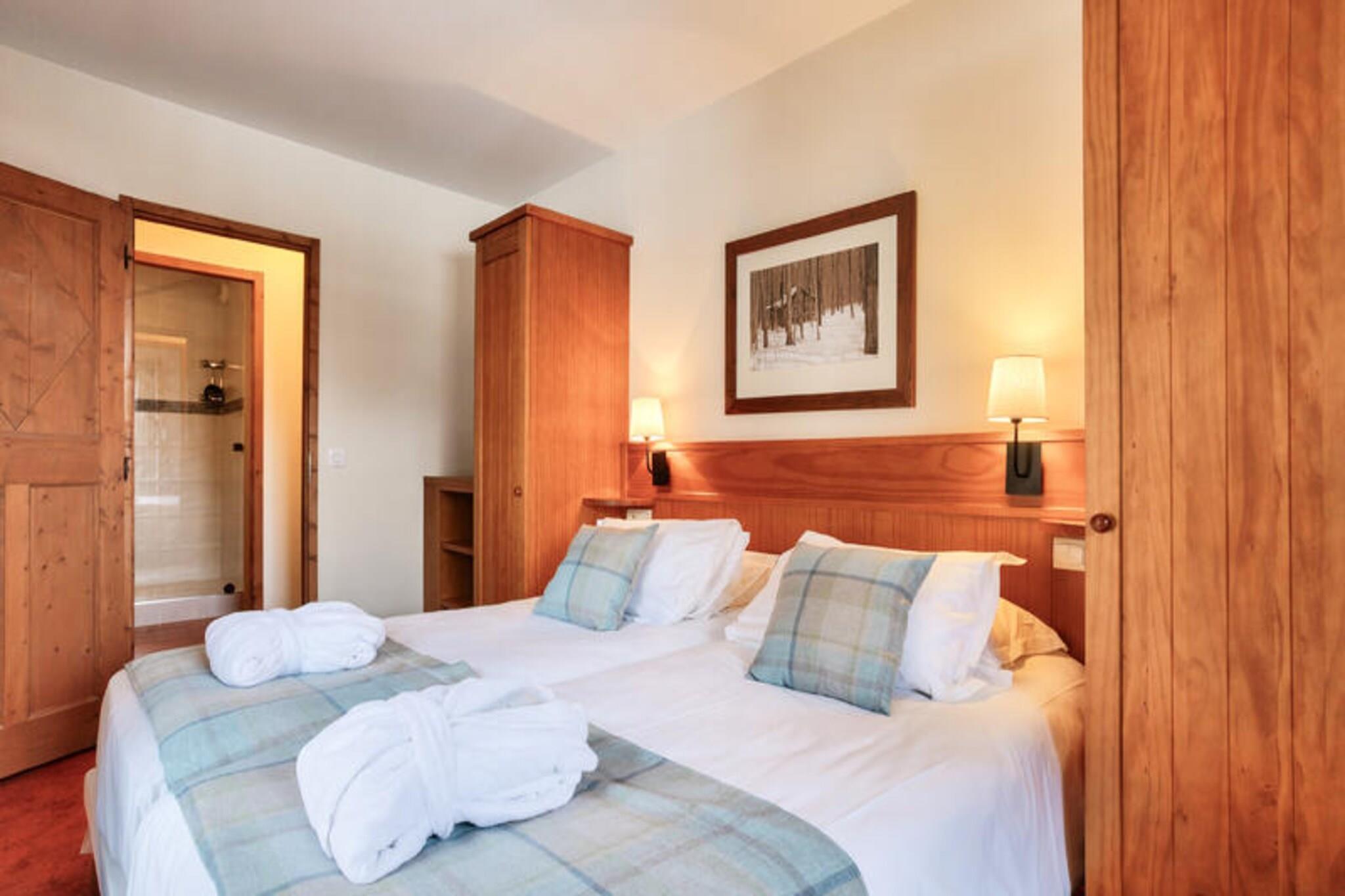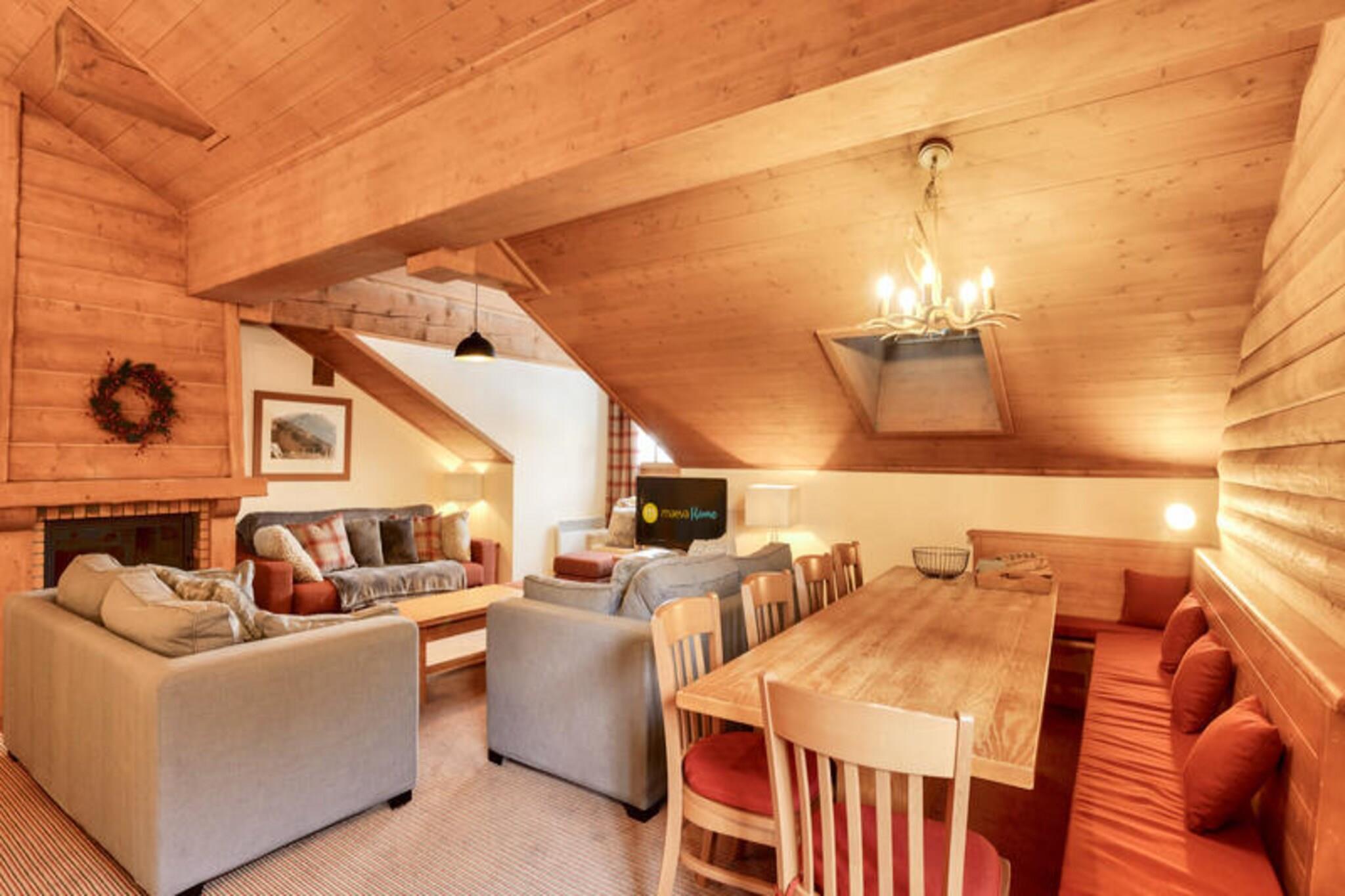 Dette romslige feriehuset tilbyr fire komfortable soverom, inkludert to med dobbeltsenger og to med enkeltsenger, perfekt for familier eller grupper. Den har fire bad, en koselig stue med peis og et velutstyrt kj?kken. Kj?ledyr er tillatt med forh?ndsgodkjenning, og et babysett er tilgjengelig p? foresp?rsel. Eiendommen ligger i n?rheten av skibakkene, og tilbyr enkel adkomst for vintersportsentusiaster. Eiendommen har en praktisk beliggenhet i hjertet av landsbyen, kun 100 meter fra butikker, kafeer og lokale markeder. Den fotgjengervennlige landsbyen tilbyr mange utend?rsaktiviteter, inkludert ski om vinteren, fotturer og sykling om sommeren. Med fantastisk utsikt over fjellene og en avslappet atmosf?re kan gjestene nyte den omkringliggende naturlige skj?nnheten og den pulserende lokalkulturen. Leiligheten har et fullt utstyrt kj?kken med spisebord og alt n?dvendig utstyr. Hvert av de fire badene har badekar eller dusj, elektriske h?ndklestativ og h?rf?ner. Gjestene kan ogs? nyte den utend?rs balkongen med fantastisk fjellutsikt, og tilleggsfasiliteter som et felles utend?rs oppvarmet basseng, parkering (tilgjengelig mot en ekstra avgift) og rengj?ringstjenester.