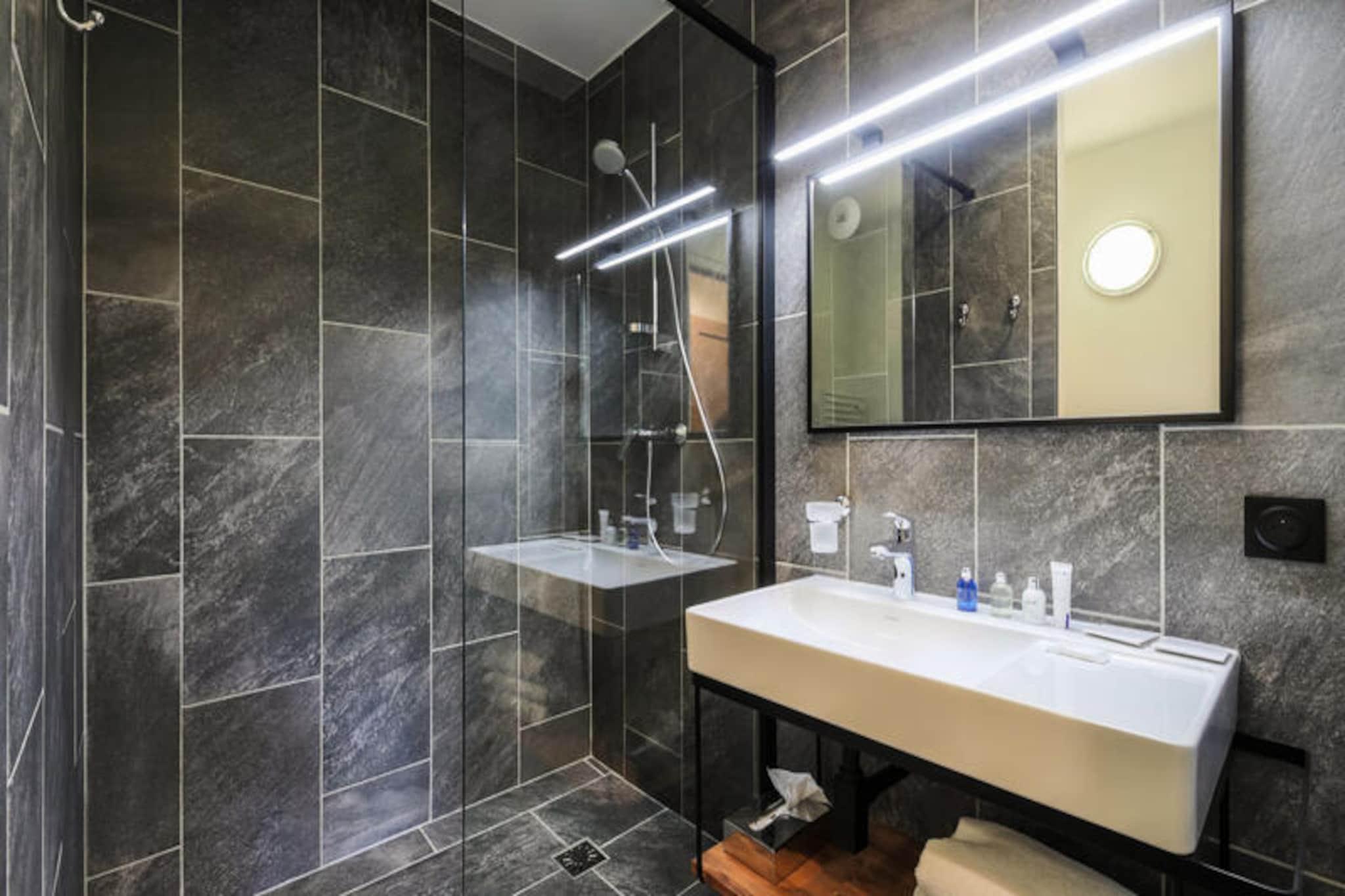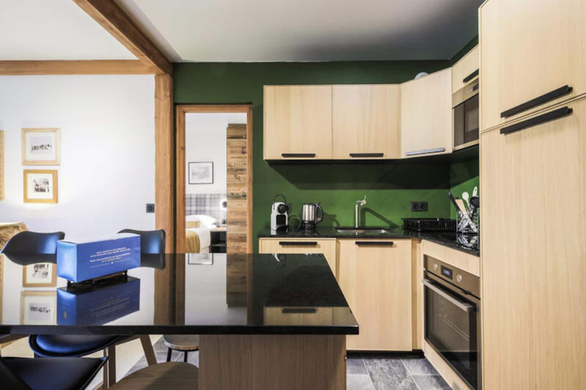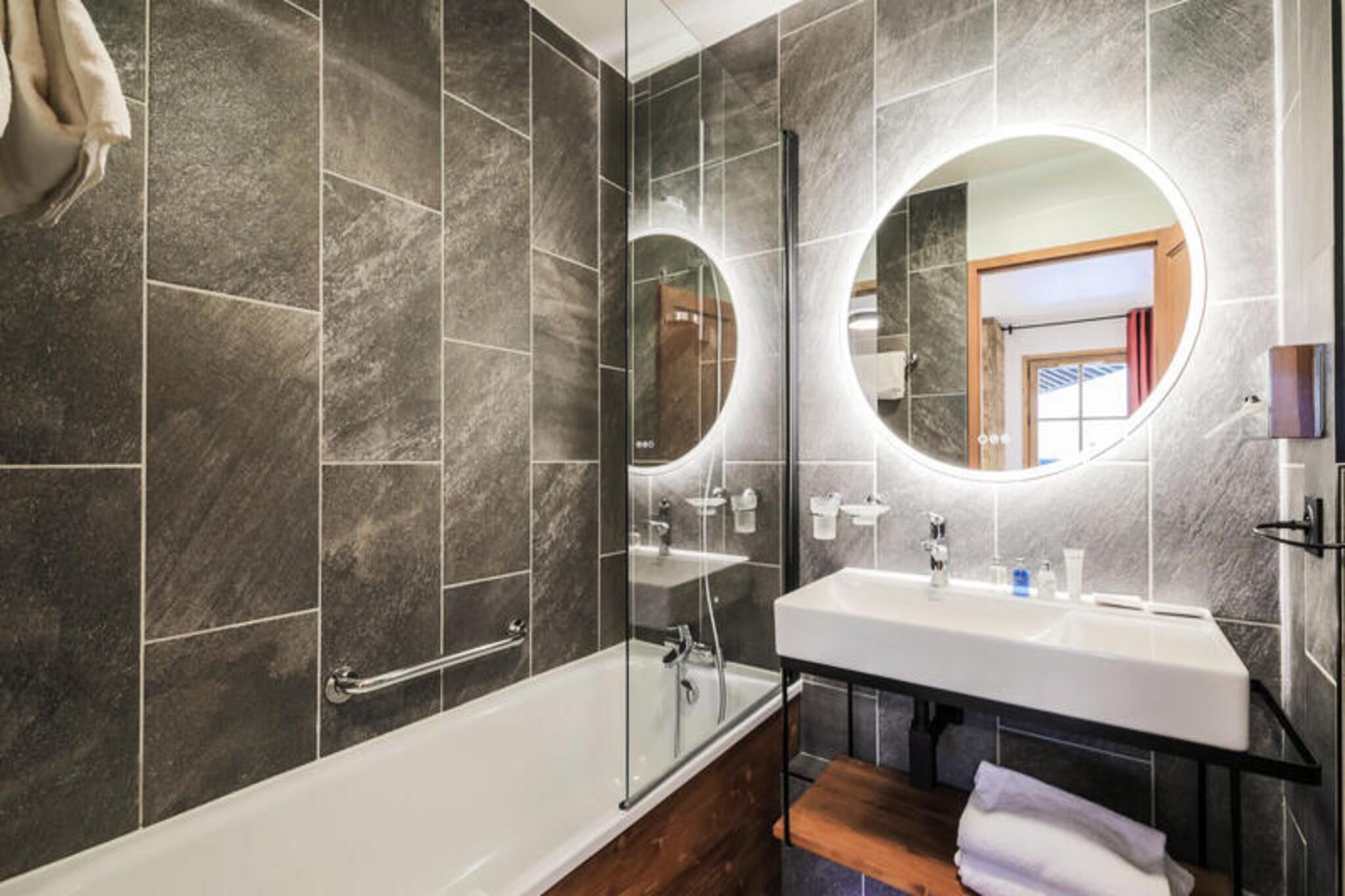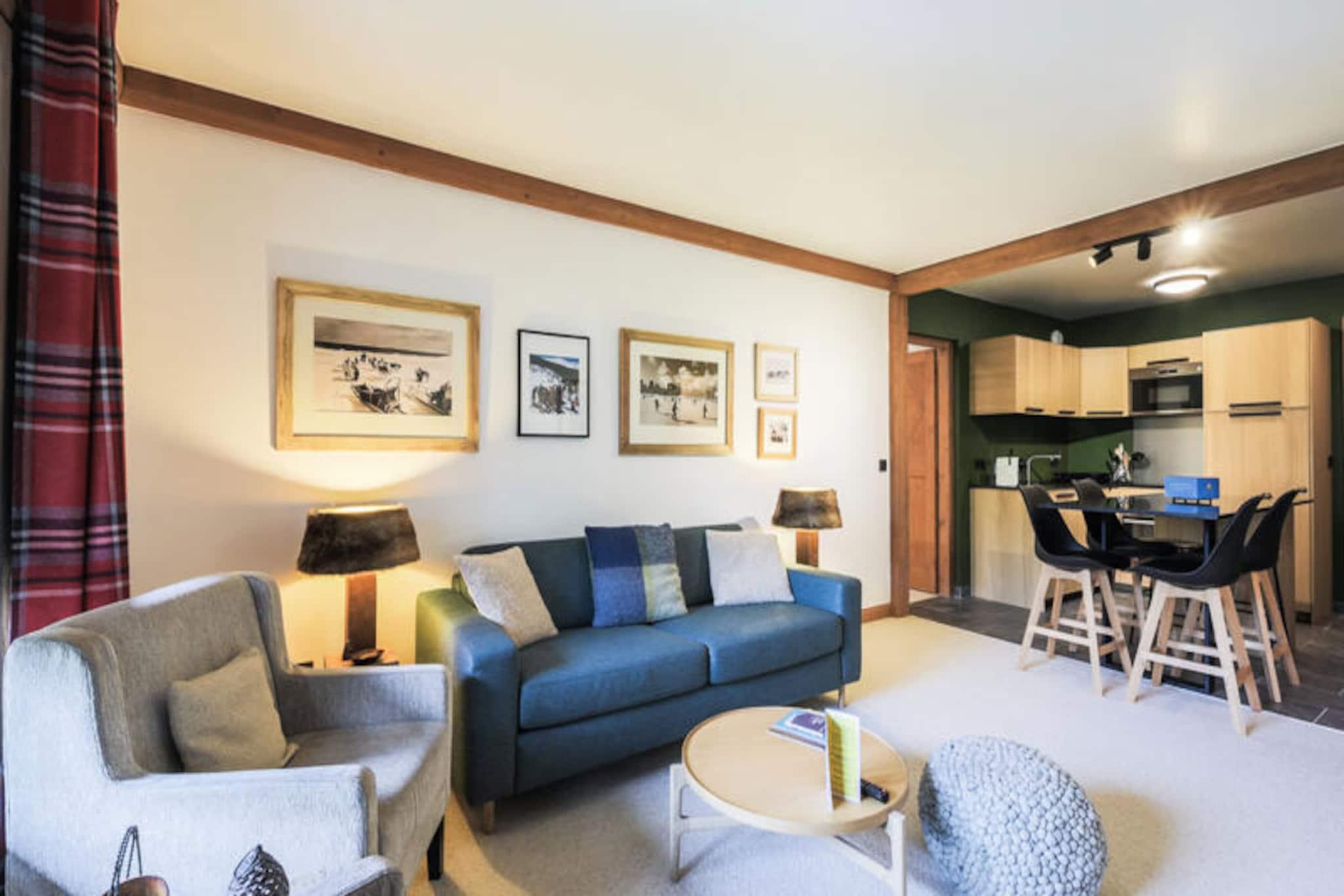 Denne moderne og romslige leiligheten tilbyr komfortable rom med to soverom: ett med dobbeltseng og et annet med to enkeltsenger. Stuen har sovesofa og spisebord. Nyt bekvemmeligheten av ski-in, ski-out-tilgang og et skiskap for oppbevaring av utstyr. Kj?ledyr er tillatt mot en ekstra avgift. Leiligheten har fasiliteter av h?y kvalitet som gratis Wi-Fi, h?rf?ner og safe, noe som sikrer et avslappende opphold. Eiendommen ligger i en fotgjengervennlig landsby med direkte tilgang til Paradiskis skibakker og n?rliggende turstier. Gjestene kan utforske ulike lokale kafeer, restauranter og markeder, mens de nyter fantastisk utsikt over de omkringliggende fjellene. Omr?det er ogs? hjemsted for 40 butikker, barer og det anerkjente Deep Nature Spa, som tilbyr en komplett avslappende opplevelse etter en dag i bakken. Leiligheten har et fullt utstyrt kj?kken ?pent mot stuen, ideelt for ? tilberede m?ltider. Det er to bad, ett med badekar og ett med dusj, samt separat toalett. Ytterligere bekvemmeligheter inkluderer et bord og strykejern, noe som sikrer et komfortabelt opphold. Eiendommen tilbyr ogs? rengj?ring og parkering for gjestene.