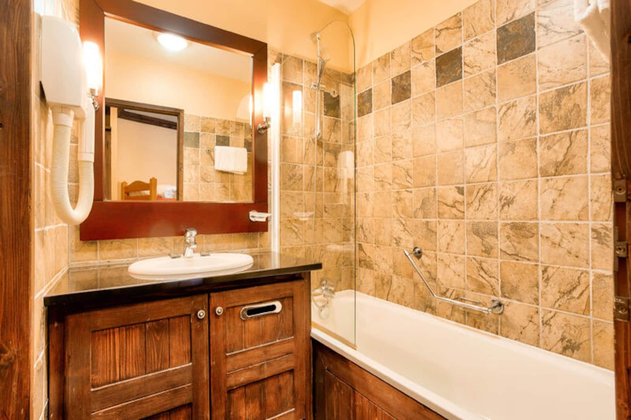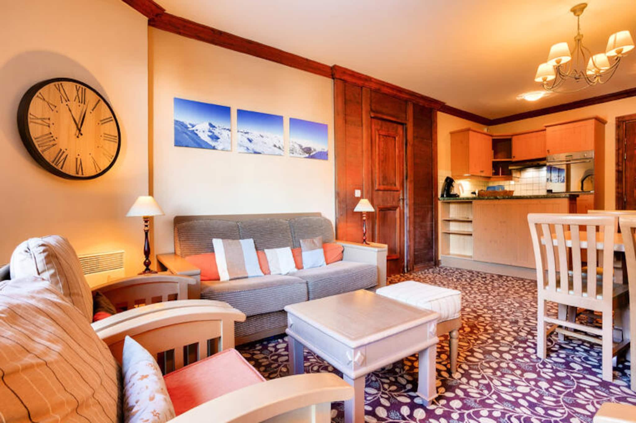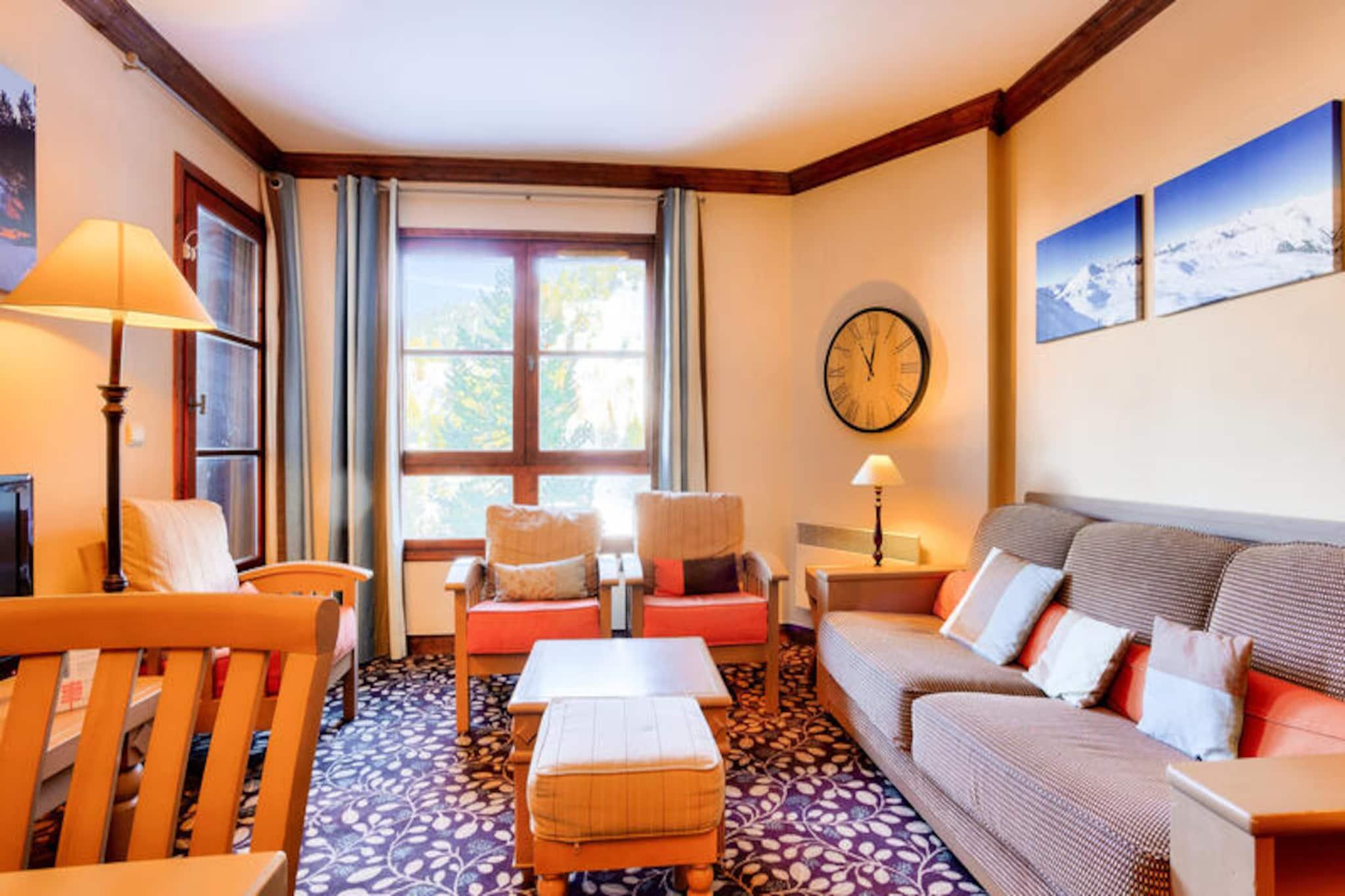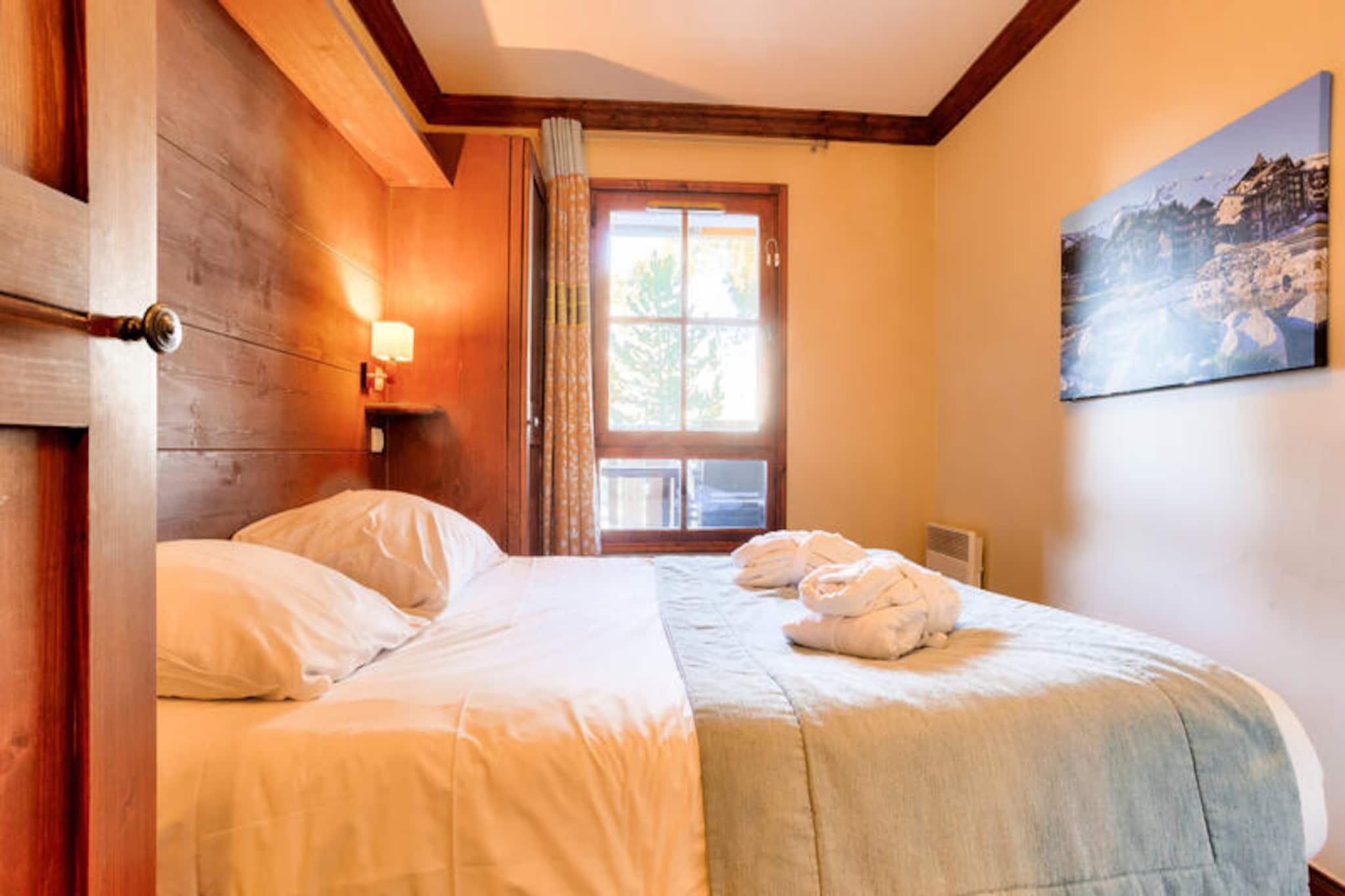 Denne koselige leiligheten er perfekt for en familie- eller gruppeferie, og tilbyr to komfortable soverom og en romslig stue. Ett soverom er utstyrt med en dobbeltseng, mens det andre har to enkeltsenger og et sett med k?yesenger. Leiligheten har ogs? to bad med badekar, et fullt utstyrt kj?kken og en stue med sovesofa. Eiendommen er kj?ledyrvennlig, med noen restriksjoner, og kommer med praktiske fasiliteter som gratis Wi-Fi, flatskjerm-TV og ski-in/ski-out-tilgang. Sluttrengj?ring er inkludert, noe som sikrer en problemfri ferie. Leiligheten ligger i en fotgjengervennlig landsby, og tilbyr direkte tilgang til bakkene om vinteren og en rekke attraksjoner hele ?ret. Gjestene kan utforske de livlige lokale kafeene, butikkene og restaurantene bare noen f? skritt unna. For friluftsentusiaster kan det n?rliggende skidomenet Paradiski skilte med over 700 km med l?yper, og om sommeren kan bes?kende nyte fotturer i Vanoise nasjonalpark med fantastisk utsikt over Mont Blanc. Leiligheten har et velutstyrt kj?kken i amerikansk stil med moderne apparater, perfekt for ? tilberede m?ltider. Badene er utstyrt med elektriske h?ndklet?rkere, og det er en vaskemaskin for ekstra bekvemmelighet. Balkongen gir nydelig fjellutsikt, og gjestene kan nyte tilgang til det oppvarmede utend?rsbassenget, badstuen og treningssenteret, avhengig av bygningen. Parkering er tilgjengelig mot en ekstra avgift.