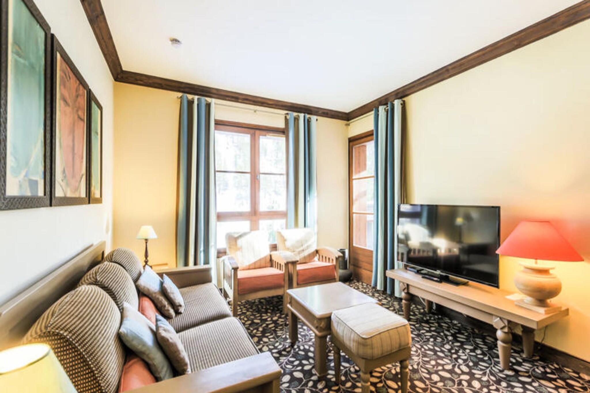 Dette romslige feriehuset har to komfortable soverom, inkludert en king-size-seng og to enkeltsenger, ideelt for sm? familier eller grupper. Stuen har en sovesofa for ekstra gjester. Eiendommen er kj?ledyrvennlig, mot en ekstra kostnad, og tilbyr en rekke fasiliteter som Wi-Fi, TV og oppvarming for et koselig opphold. Et separat toalett og to bad, ett med badekar-dusj-kombinasjon og et annet med dusj, s?rger for bekvemmelighet og komfort. Denne eiendommen ligger i hjertet av en fotgjengervennlig landsby, og tilbyr tilgang til det vidstrakte skiomr?det Paradiski og et bredt spekter av utend?rsaktiviteter. Gjestene kan nyte fantastisk utsikt over Mont Blanc, samt fotturer, sykling og ski rett utenfor d?rstokken. N?rliggende kafeer, markeder og restauranter tilbyr en rekke alternativer for bespisning og shopping. Omr?det er ogs? perfekt for ? nyte b?de vintersport og sommereventyr. Hjemmet har et fullt utstyrt ?pent kj?kken, slik at gjestene kan tilberede sine egne m?ltider. Badene er velutstyrte med moderne fasiliteter, og leiligheten har egen balkong med utsikt over fjellene og landsbyen. Ytterligere fasiliteter inkluderer tilgang til oppvarmede utend?rsbassenger, badstue (tilgjengelighet avhenger av bygningen) og parkering (reservasjon kreves). Et babysett er tilgjengelig p? foresp?rsel, noe som sikrer et komfortabelt opphold for familier.
