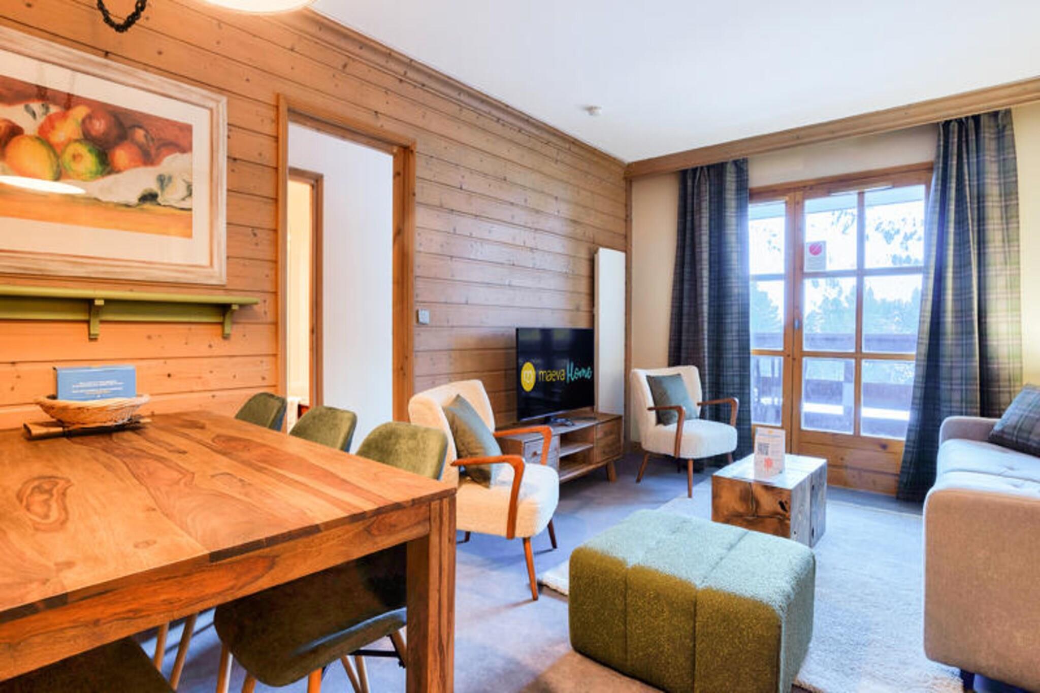 Denne moderne ferieleiligheten har to romslige soverom, ett med dobbeltseng og det andre med to enkeltsenger. En komfortabel sovesofa i stuen har plass til flere gjester. Leiligheten er kj?ledyrvennlig (ekstra avgifter kan p?l?pe) og inkluderer fasiliteter som Wi-Fi, en 50-tommers Smart-TV og et fullt utstyrt kj?kken. Alle enhetene er designet for et koselig, luksuri?st opphold, og gjestene kan nyte fantastisk utsikt fra balkongen. Eiendommen ligger i en landsby kun for fotgjengere, og er ideell for b?de vinter- og sommeraktiviteter. Ski-in/ski-out-tilgang er tilgjengelig om vinteren, mens du kan utforske turstier og terrengsykkelruter om sommeren. Landsbyen har 40 butikker, kafeer, barer og restauranter. N?rliggende attraksjoner inkluderer skiomr?det Paradiski og Vanoise nasjonalpark, som byr p? mange utend?rsopplevelser. Leiligheten har ogs? to bad, ett med badekar-dusj-kombinasjon og det andre med dusj. Et fullt utstyrt kj?kken er perfekt for ? tilberede m?ltider, mens tilleggsfasiliteter som babysett, et felles oppvarmet utend?rsbasseng og et betalingsalternativ for parkering forbedrer opplevelsen. Rengj?ring og nye h?ndkl?r tilbys p? slutten av oppholdet.