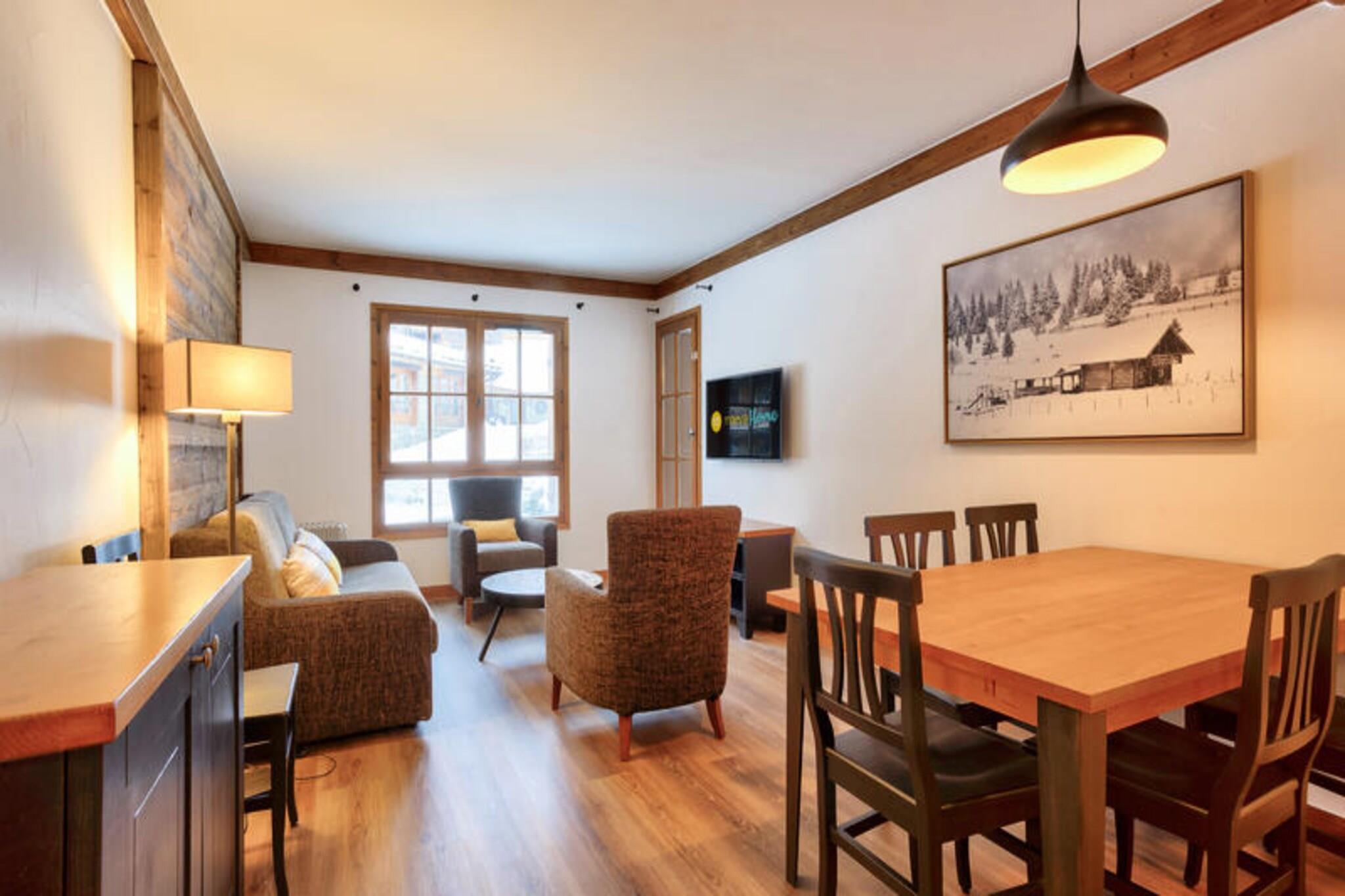 Dette sjarmerende feriehuset tilbyr romslige rom med en blanding av moderne komfort og fjellsjarm. Den har to soverom, inkludert et dobbeltrom og et tomannsrom, som gir avslappende s?vn for opptil seks gjester. Du kan slappe av i den koselige stuen med sovesofa eller nyte utsikten fra den private balkongen. Eiendommen er kj?ledyrvennlig (ekstra avgifter tilkommer) og inkluderer fasiliteter som Wi-Fi, flatskjerm-TV og peis. Ski-in, ski-out-tilgang gj?r den perfekt for vinterentusiaster. Feriehuset ligger i en fotgjengervennlig landsby, i n?rheten av en rekke lokale attraksjoner, inkludert kafeer, butikker og restauranter. Gjestene har lett tilgang til Paradiski skiomr?de, som tilbyr et av de st?rste skidomenene i verden. I de varmere m?nedene gir den n?rliggende sykkelparken en spennende m?te ? utforske p?, med over 180 km med stier. Landsbyen har ogs? mange markeder, noe som gj?r det enkelt ? hente lokale r?varer eller suvenirer. Innvendig har hjemmet et fullt utstyrt kj?kken i amerikansk stil, perfekt for ? lage mat etter en dag med utforsking. To bad og et separat toalett s?rger for bekvemmelighet for alle gjester. Stuen er designet for komfort, med rikelig med sitteplasser rundt spisebordet og en koselig atmosf?re. Ytterligere fasiliteter inkluderer en vaskemaskin, t?rketrommel og tilgang til oppvarmede utend?rsbassenger, noe som sikrer et hyggelig opphold hele ?ret.