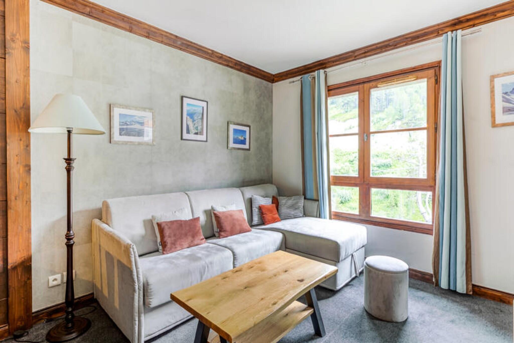 Denne sjarmerende ferieleiligheten tilbyr et komfortabelt opphold med en dobbeltseng p? soverommet og en sovesofa med plass til to. Det er kj?ledyrvennlig (ekstra kostnad), noe som gj?r det til et godt valg for de som reiser med kj?ledyrene sine. Gjestene kan slappe av i den koselige stue med peis, eller nyte fasilitetene som oppvarmet utend?rsbasseng, boblebad, badstue og treningsrom. Det er det perfekte stedet for ? slappe av etter en dag med eventyr. Eiendommen ligger sentralt til, og gir enkel tilgang til bakkene, med skiomr?det bare noen f? skritt unna. Det er ogs? i n?rheten av ulike kafeer, restauranter og butikker, og tilbyr mange muligheter for bespisning og shopping. Omr?det byr p? et fantastisk utvalg av utend?rsaktiviteter, fra ski og snowboard om vinteren til fotturer og terrengsykling i de varmere m?nedene. Anlegget er en del av Paradiski-omr?det, en av de st?rste skiomr?dene i verden, og tilbyr over 700 km med skil?yper. Leiligheten har et fullt utstyrt kj?kken, ideelt for ? tilberede m?ltider under oppholdet. Badet har badekar med dusj, og det er et separat toalett for enkelhets skyld. Den private balkongen tilbyr naturskj?nn fjellutsikt, og leilighetens beliggenhet gj?r det enkelt ? nyte alle de n?rliggende fasilitetene og aktivitetene. Tilleggstjenester som babysett, h?ndkl?r og rengj?ring er inkludert for et stressfritt opphold.