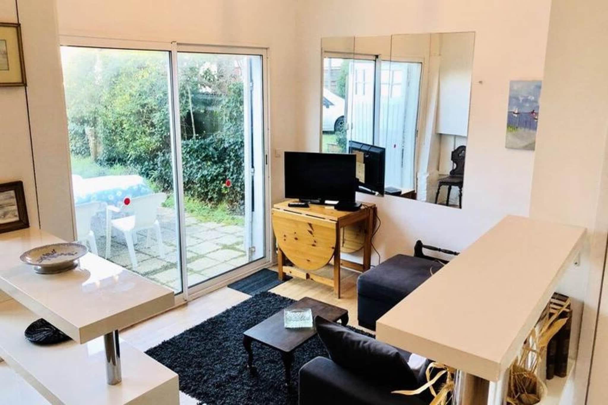 Denne sjarmerende tomannsboligen, kun 150 meter fra stranden, tilbyr en perfekt base for et avslappende opphold i det livlige Moulleau-distriktet i Arcachon. Huset er på 61 m² og har to koselige soverom, en romslig stue, spiseplass og et fullt utstyrt separat kjøkken. Stuen, innredet med en hjørnesofa og en TV, gir et komfortabelt sted for avslapning, mens spisestuen inviterer deg til å nyte måltider sammen. Det nylig renoverte dusjrommet har et separat toalett. Soverommene, ett med dobbeltseng og enkeltseng og det andre med dobbeltseng, vender mot sør for mye naturlig lys. Gå ut til en herlig hage med møbler, fluktstoler og en parasoll, perfekt for å slappe av etter en dag på stranden. Du kan parkere kjøretøyet trygt på eiendommen, og et skur er tilgjengelig for oppbevaring av sykler og strandtilbehør. Huset ligger på den største shoppinggaten, innen gangavstand fra ulike butikker, inkludert et bakeri, dagligvarebutikk, kafeer og en bokhandel, noe som sikrer bekvemmelighet under hele oppholdet. Dette området er spesielt pulserende i sommersesongen, med stranden og lokale attraksjoner lett tilgjengelig. Nyt en spasertur langs den pittoreske vannkanten eller utforsk den nærliggende Arcachon-bukten for ytterligere utendørseventyr.