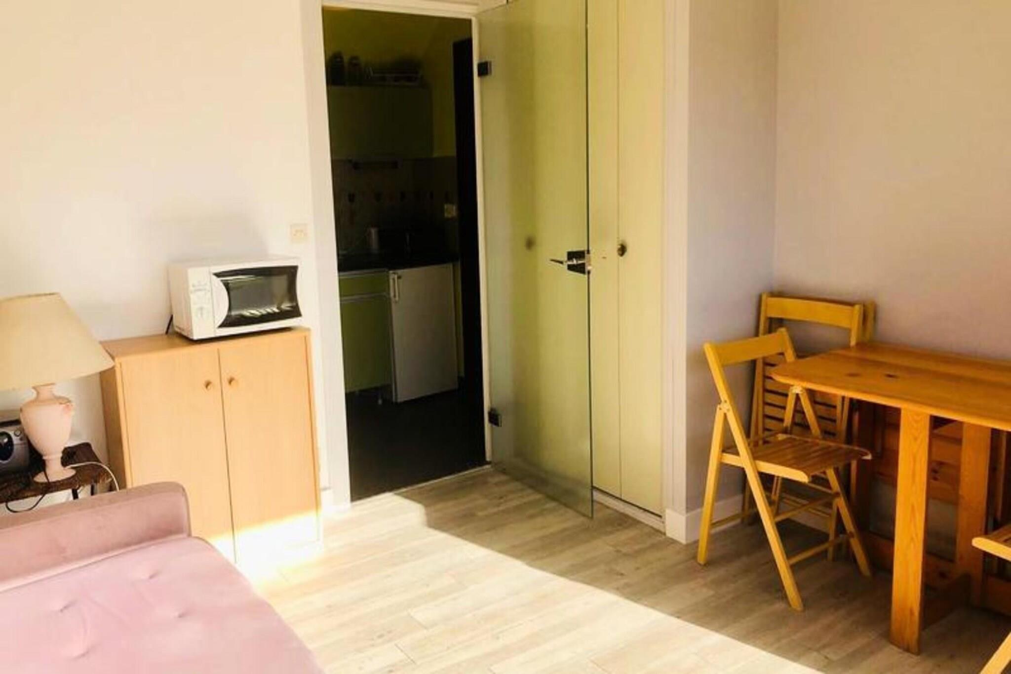 Eiendom, koselig og godt plassert, tilbyr et komfortabelt tilfluktssted for 2 personer. Denne intime ettromsleiligheten på under 20 m² ligger på mellometasjen til en trygg 70-tallsbolig. Den har en sørvendt balkong og viktige fasiliteter, inkludert et lite kjøleskap, 2 keramiske kokeplater, en miniovn og en mikrobølgeovn. Stuen er innredet med en 140 cm sovesofa, spiseplass, TV og garderobeskap, noe som skaper en funksjonell og innbydende plass. Badet har WC og bidet. Kjæledyr er ikke tillatt, og gateparkering er tilgjengelig mot en avgift. Sengetøy er tilgjengelig for leie, og sluttrengjøring tilbys mot et pristillegg. Studioet har en ideell beliggenhet 200 meter fra stranden og 500 meter fra butikker. I nærheten av Boulevard de la Plage i Arcachon, tilbyr det enkel tilgang til stranden og nær lokale fasiliteter. Denne eiendommen er en flott base for å utforske Arcachon og dens attraksjoner. Studioet er utstyrt med varme, parkett og flislagte gulv, og et enkelt kjøkken for tilberedning av måltider. Den solrike balkongen gir et avslappende uterom. Avbestillingsforsikring er inkludert, og rengjøring er tilgjengelig på slutten av oppholdet. Dette sjarmerende studioet er en kompakt, komfortabel base for en fredelig strandferie.
