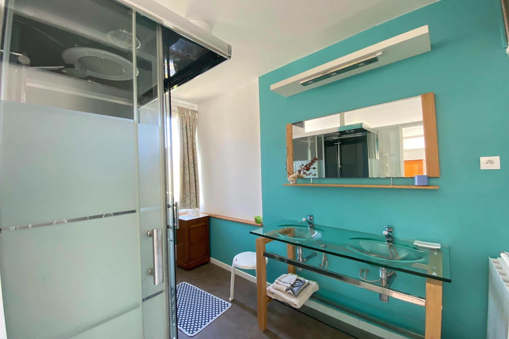 I 2. etasje: (Kjøkken(komfyr med kokeplater(komfyr med 2 kokeplater, keramisk), vannkoker, brødrister, kaffetrakter(kaffetrakter), stekovn, mikrobølgeovn, kjøleskap, fryser), Stue/spisestue(dobbel sovesofa(140 x 190 cm), TV(Ingen nederlandske TV-kanaler, Ingen tyske TV-kanaler)), soveværelse(dobbeltseng(140 x 190 cm)), bad(dusj, toalett)) tørketrommel, vaskemaskin, oppvarming(elektrisk), takterrasse, sykkelparkering, hagemøbler, parkering, markise