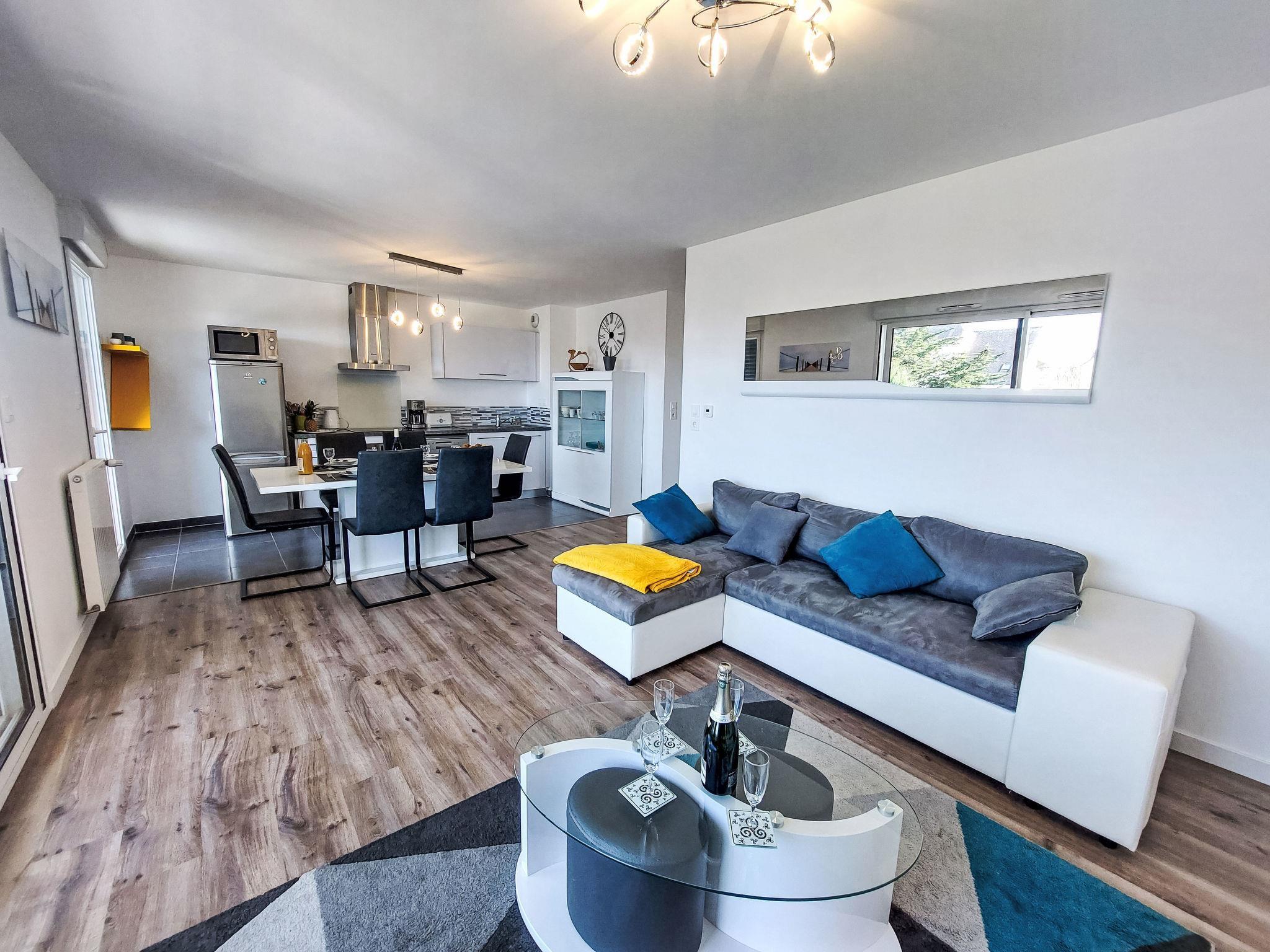 Very very modern, beautiful residence, 3 storeys, built in 2019. 300 m from the centre of Arzon, excellent location: right in the centre but still quiet, 300 m from the sea. For shared use: park 3'000 m2 (fenced), indoor pool heated, fenced (10 x 5 m, seasonal availability: 28.May. - 13.Sep. pool opening hours: 09:00-13:00 and 15:00-19:00). In the complex: lift, storage room for bicycles. Parking space n 14, communal covered parking. Shop 300 m, supermarket 400 m, restaurant 500 m, bus stop 300 m, sandy beach "Fogeo" 1.5 km. Sports harbour 300 m, golf course (18 hole) 4 km, sailing school 2 km, tennis 2 km. Nearby attractions: Port du Crouesty 300 m, Port Navalo-Golfe du Morbihan 1.5 km, Thalassotherapie 1.6 km, Sarzeau 11 km, Vannes 33 km, Carnac 60 km. Hiking paths: GR34. Residence with electric gates.