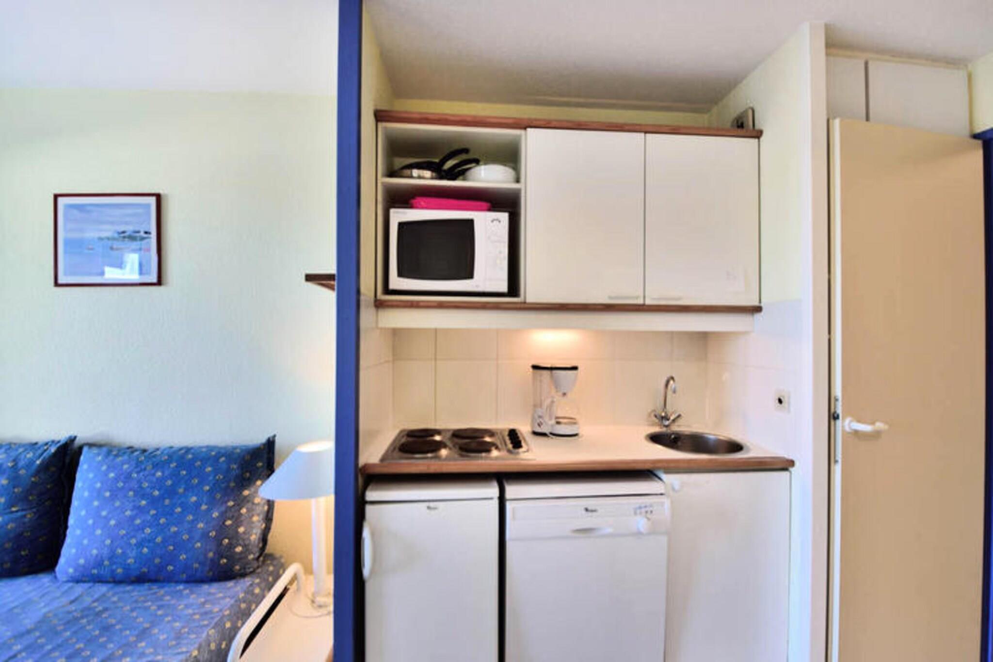 Denne ettromsleiligheten på 25 m² tilbyr rimelig innkvartering for opptil fire gjester. Den har en stue med to sovesofaer (en med en uttrekkbar seng egnet for barn) og et hytteområde med køyesenger. Kjøkkenet er åpent mot stuen, og det er et bord med plass til fire. Badet har badekar og toalett. En møblert terrasse og lagringsplass tilbys også. Wi-Fi, kjæledyr, babysett, håndklær og sluttrengjøring er tilgjengelig mot en ekstra avgift. Beskrivelsen nevner ikke spesifikke steder for denne typen studioer som tilbys av Maeva Home Budget. Imidlertid er disse studioene sannsynligvis plassert på forskjellige steder i hele Frankrike. Denne ettromsleiligheten er en del av Maeva Home Budget-serien, som tilbyr grunnleggende fasiliteter til en lav pris. Det er et godt alternativ for budsjettbevisste reisende som prioriterer rimelige priser fremfor omfattende fasiliteter.