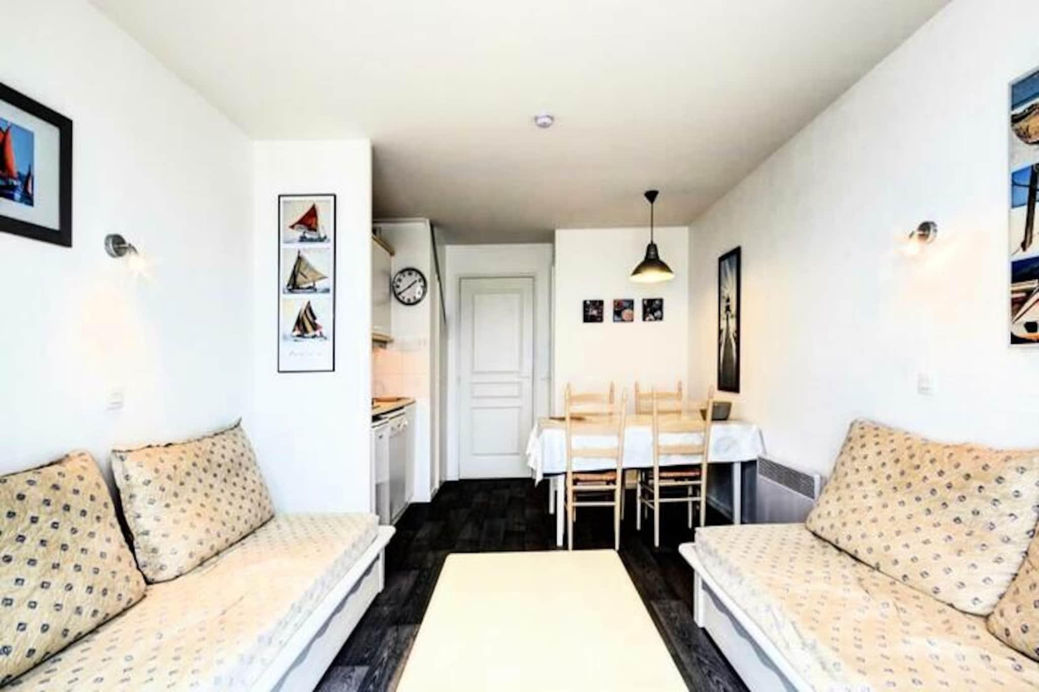 I den sjarmerende kystbyen Arzon, der den atlantiske brisen møter den pulserende energien i marinaen, tilbyr denne herlige residensen en perfekt ferie ved sjøen. Bare noen øyeblikk fra sandstrendene ved Fogeo-stranden og den livlige Port du Crouesty, vil du befinne deg midt i en verden av naturlig skjønnhet og kystsjarm. Enten du spaserer langs bevarte kyststier eller nyter summingen fra lokale butikker og kasinoet, føles hvert øyeblikk her som en feiring av havet. Den 3-roms leiligheten, designet for opptil seks gjester, er gjennomtenkt innredet med en koselig stue, et fullt utstyrt kjøkken, to komfortable soverom og to moderne bad. Interiøret er lyst og innbydende, og blander moderne design med praktiske fasiliteter for å sikre et avslappet og hyggelig opphold. Gjestene kan også nyte tilgang til et felles svømmebasseng, åpent fra tidlig juli til midten av september, perfekt for å kjøle seg ned etter en dag på stranden. Ytterligere bekvemmeligheter som Wi-Fi, babysett og kjæledyrvennlige alternativer gjør denne residensen ideell for familier og grupper. Gå ut, og du er bare et steinkast fra marinaen, hvor du kan se båter kjøre inn og ut, eller nyte fersk sjømat på lokale restauranter. Området rundt byr på en blanding av ro og spenning, med naturskjønne turstier, kulturelle arrangementer og vannsport innen rekkevidde. Enten du søker eventyr eller avslapning, plasserer denne residensen deg i hjertet av alt. Med sin uslåelige beliggenhet, moderne komfort og et snev av bretonsk sjarm, lover denne eiendommen en uforglemmelig ferie ved sjøen. La bølgenes rytme og Arzons sjarm skape minner du vil verne om for alltid.
