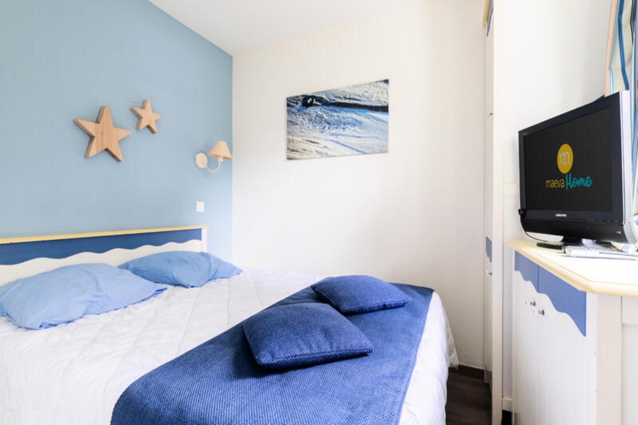 Port du Crouesty Cap'Océan-residensen ligger i byen Arzon, meget tæt på lystbådehavnen og sandstranden i Fogeo: til fods eller på cykel er strandpromenaden let tilgængelig. Nogle gange vilde, med sine bevarede kyststier, og nogle gange meget livlige, med sit kasino og sine butikker, kan havet ikke undgå at fascinere dig. For at give dig mulighed for at nyde det endnu mere, har mange af de tilbudte boliger udsigt over havet. Swimmingpool åben fra 06/15 til 09/15. Din feriebolig inkluderer: 1 stue, 1 køkken, 1 soveværelse, 1 badeværelse, 1 toilet og 1 terrasse. Fordelene ved din udlejning: Lejlighed til 5 personer beliggende tæt på havet og butikker og tilbyder en smuk møbleret terrasse. Areal: 35 m². Beliggenhed: Etage i boligen: Stueetagen Adgang til strand eller pist: Nej By eller landsbycenter: Nej Afstand fra pister til hav: <100m Forretningsafstand: <100m Afstandsaktiviteter: <100m Antal boligplaner: Etplan Sammensætning af opholdet: Standard sofa: Ja Siddepladser i sofaen: 4 Antal senge: 2 sovesofaer, den ene med 1 udtræksseng Dagseng: Ja Antal senge på sovesofaen: 1 Bord i spisestuen: Nej Antal stole (eller skamler): Nej Sofabord: Ja Pejs: Nej Måltid side: Type køkken: Amerikansk Bord i køkkenet: Ja Antal stole i køkkenet: 4 + 1 skammel Værelsernes sammensætning: Soveværelse 1: Enkeltseng soveværelse 1: Nej Dobbeltseng, soveværelse 1: 1 Køjeseng soveværelse 1: Nej Sammensætning af badeværelset: Hovedbadeværelsets stand: God stand Et privat vandkloset inde i boligen: Ja Et andet privat badeværelse med uafhængig adgang: Nej Et andet vandkloset: Nej Eksteriør: Terrasse: Overdækket Modsat terrasse: Nej Terrasseudsigt: Andet Terrasseorientering: Nord Parkering dedikeret til indkvartering: Nej Parkeringstype: Udendørs Hvordan vil du beskrive boligens lysstyrke som helhed? : Normal maeva Home Selection label: Vedligeholdte lejligheder, opdaterede og med kvalitetsudstyr. For en vellykket og behagelig ferie. Wifi-adgang - Med tillæg - afhængig af tilgængelighed. Husdyr tilladt - Forespørg desuden direkte hos boligen for priser. Babykit - Afhænger af tilgængelighed: 1 sammenklappelig babyseng (NF EN 716 standard), 1 babystol (fra 6 måneder), 1 pusleunderlag, 1 klapvogn: indholdet kan variere afhængigt af boligen) - priser ses i receptionen. Sengelinned - Mod et tillægsgebyr - indholdet kan variere afhængigt af boligen: lagner, lagen eller dynebetræk og pudebetræk. Håndklæder - Ekstra gebyr. Mulighed for at skifte dagligt sengetøj til rådighed, spørg i receptionen for priser. Slutrengøring - Obligatorisk rengøring skal betales ved indtjekning eller ved ankomst. Parkering - Udendørs - gratis, afhængig af tilgængelighed. Swimmingpool - Inkluderet. Boligens fælles swimmingpool (åben fra 15/06 til 15/09) Turistskat (ekstra gebyr) - Betaling af turistskatten sker via dit personlige rum: https://mon-compte.maeva.com, beløbet varierer afhængigt af lokationen. Gratis for under 18 år. Fjernsyn - Afhænger af din bolig. Depositum (i euro) - 500 Kæledyr tilladt - Ekstra gebyr Slutrengøring - Obligatorisk rengøring skal betales ved indtjekning eller ved ankomst. Sengelinned - Ekstra gebyr.