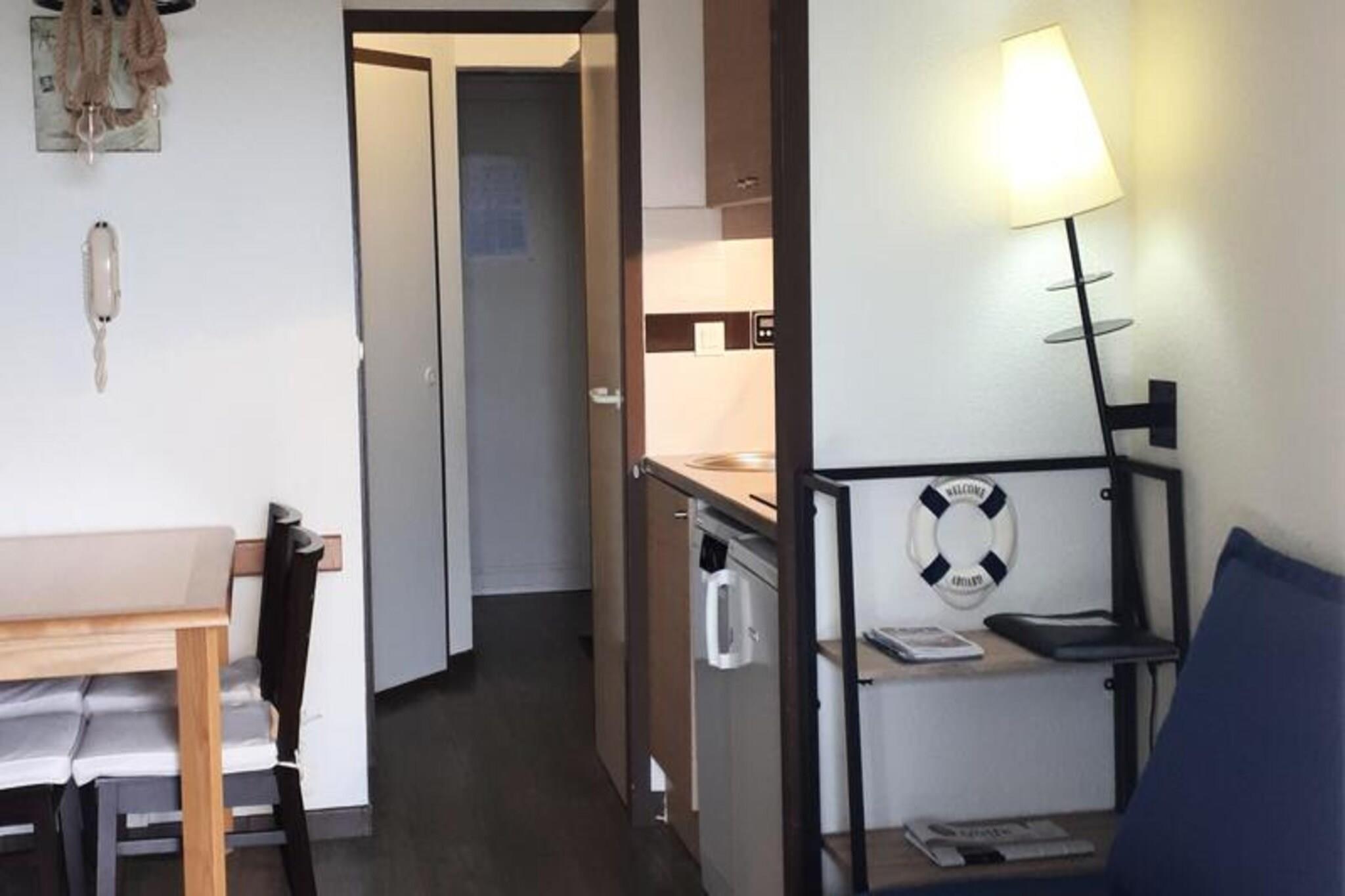 Denne 25 m² store leiligheten i bretonsk stil tilbyr komfortabel innkvartering for opptil 4 gjester. Den har en stue med to sovesofaer (en med uttrekkbar seng), et soveområde med køyesenger, et bad med badekar og et separat toalett. En møblert balkong med bord og stoler gir ekstra plass til å slappe av og nyte utsikten (havet eller hagen avhengig av den spesifikke leiligheten). Leiligheten ligger i første etasje og gir tilgang til en utendørs parkeringsplass og en reservert parkeringsplass i underjordisk garasje. Selv om Wi-Fi, babysett, sengetøy og håndklær er tilgjengelig, koster de ekstra. Kjæledyr er tillatt, men regler og avgifter for kjæledyr må bekreftes direkte med overnattingsstedet. Denne leiligheten ligger i landsbyen Port du Crouesty på Rhuys-halvøya, bare noen skritt fra havnen, havet, butikker og restauranter. Den 1 km lange Fogeo-stranden med sine fritidsaktiviteter ligger bare 300 meter unna. Gjestene har også direkte tilgang til Miramar Crouesty thalassoterapisenter, perfekt for en avslappende spaferie. Leiligheten har et kjøkken som er åpent mot stuen, noe som gjør den ideell for sosiale sammenkomster. Andre fasiliteter inkluderer en safe, lagringsplass og en 86 cm LCD flatskjerm-TV. Sluttrengjøring er obligatorisk og må betales ved innsjekking.