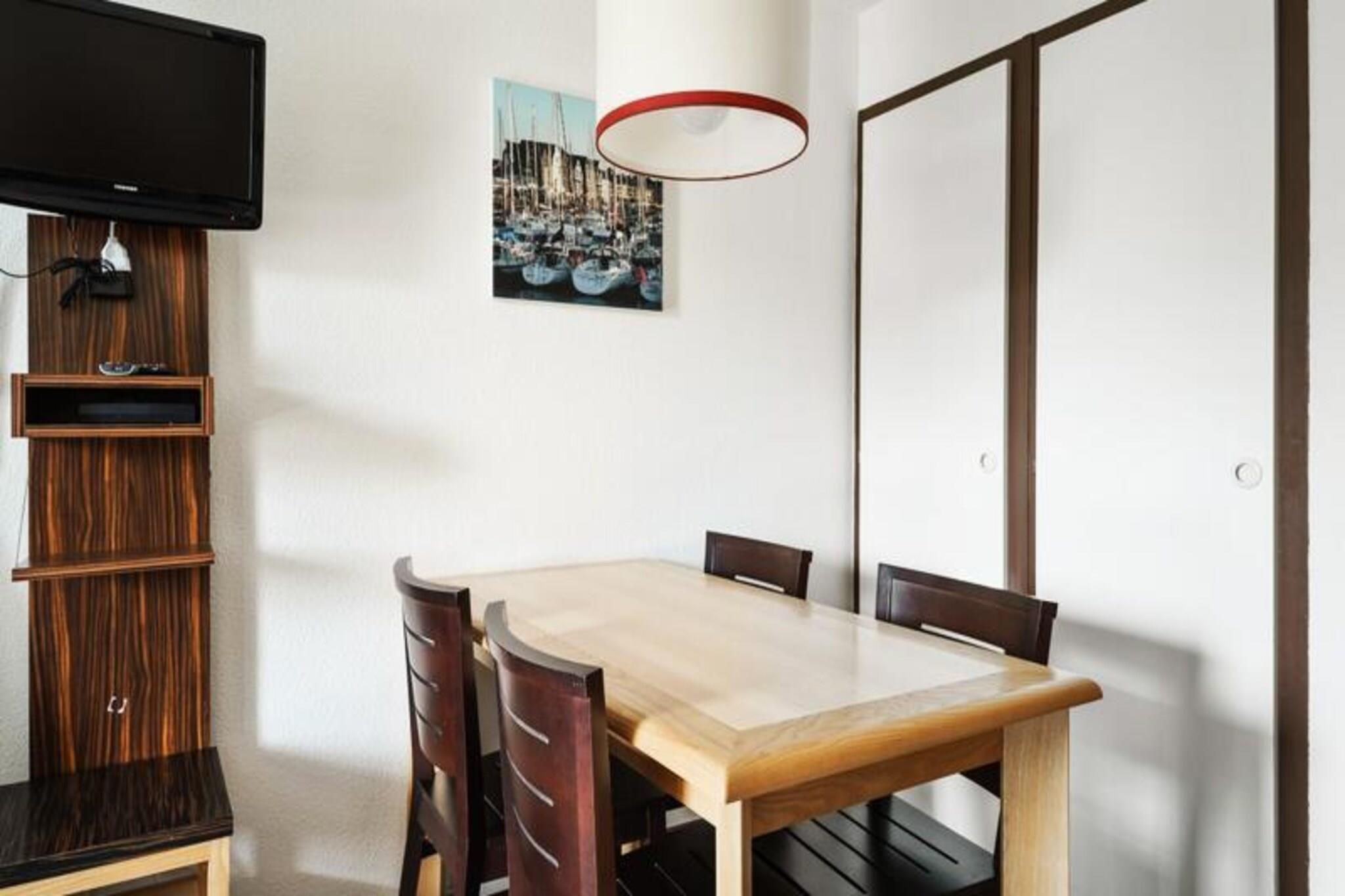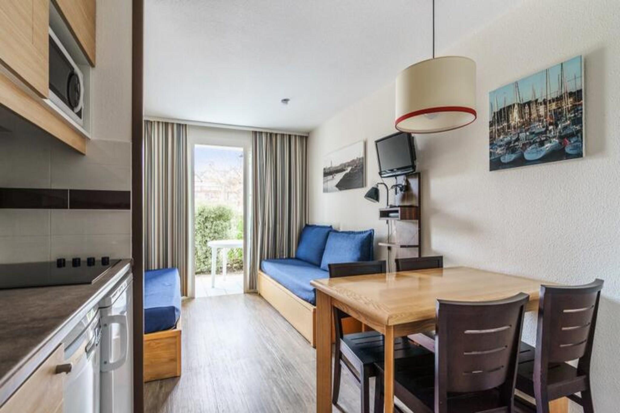 Denne sjarmerende leiligheten på 26 m² er perfekt for en budsjettvennlig ferie i Bretagne. Leiligheten tilbyr komfortable soveplasser for opptil fem gjester med en stue med to sovesofaer (en med uttrekkbar seng) og et hytteområde med køyesenger. Eiendommen ligger i Port du Crouesty Village-residensen, bare noen skritt fra havnen, havet, butikker og restauranter. Den fantastiske 1 km lange Fogeo-stranden med sine fritidsaktiviteter ligger også bare 300 meter unna. Gjestene kan til og med nyte direkte tilgang til Miramar Crouesty thalassoterapisenter for en avslappende spaopplevelse. Kjæledyr kan tillates mot en ekstra avgift (spør med boligen). Residensen ligger midt i tradisjonell bretonsk arkitektur på Rhuys-halvøya, og tilbyr en sjarmerende atmosfære. Området rundt kan skilte med vakker natur med Morbihan-bukten på den ene siden og Quiberon-bukten på den andre. Utforsk strendene, spill sandvolleyball eller oppdag butikkene og restaurantene i Port Crouesty, alt innen gangavstand. Leiligheten har en stue, et hytteområde, en kjøkkenkrok som er åpen mot stuen, et bad med toalett og en terrasse med utemøbler. Wi-Fi-tilgang, leie av babysett, sengetøy, håndklær og daglig skift av håndklær er tilgjengelig mot et pristillegg. Sluttrengjøring er obligatorisk.