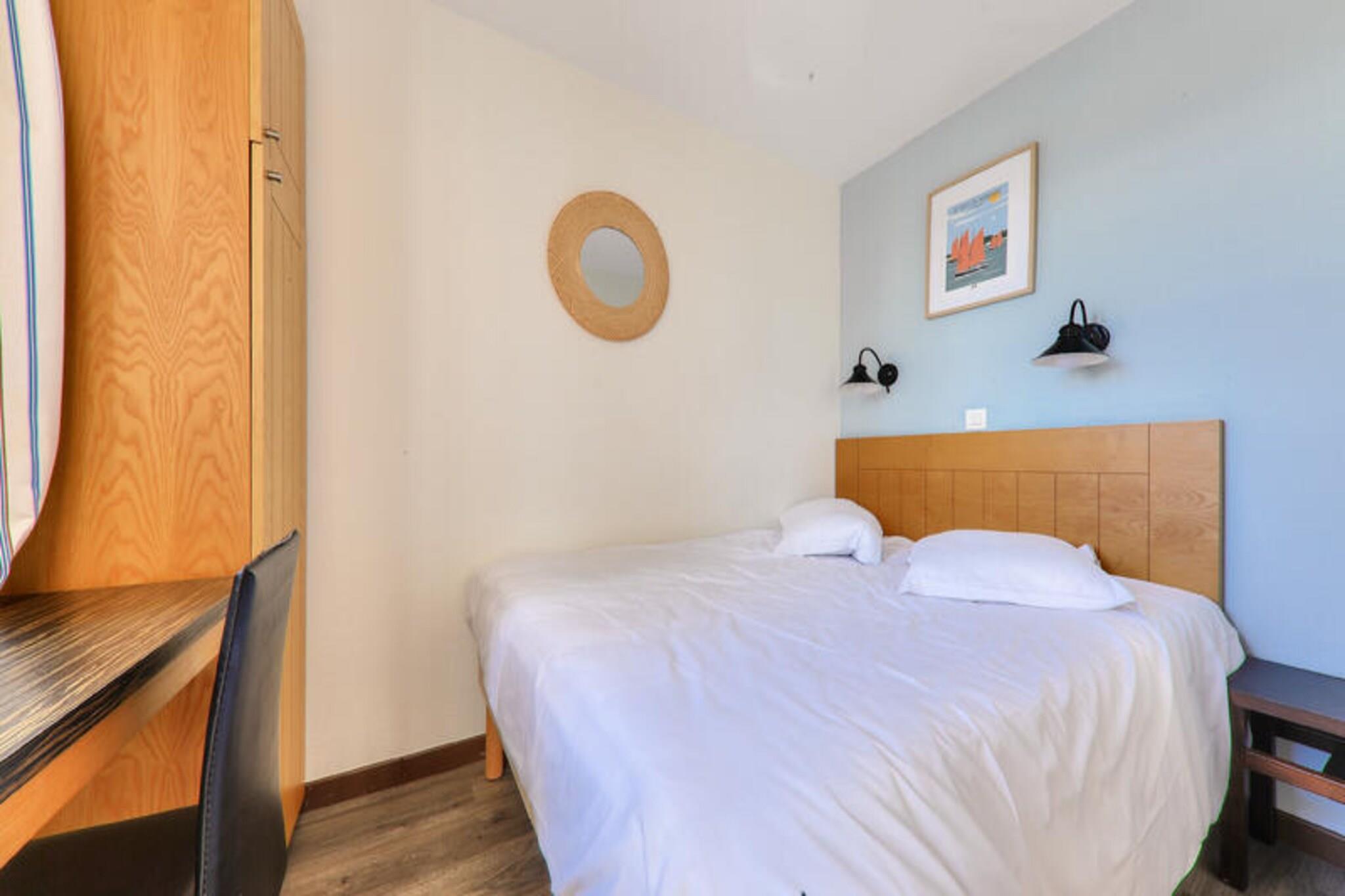 Denne leiligheten i 1. etasje tilbyr en avslappende ferie i en tradisjonell bretonsk landsby på Rhuys-halvøya. Leiligheten har havutsikt, en overbygd terrasse for solrike måltider og direkte tilgang til stranden (300 meter unna). Det sover komfortabelt fire gjester med en dobbeltseng på soverommet og en sovesofa i stuen. Eiendommen er kjæledyrvennlig (med forhåndsgodkjenning og ekstra avgifter). Leiligheten ligger i hjertet av landsbyen, med butikker og restauranter kun 200 meter unna. Gjestene kan også nyte en rekke fritidsaktiviteter i nærheten, fra svømming og sandvolleyball til thalassoterapibehandlinger på Miramar Crouesty-senteret. Morbihan-bukten og Quiberon-bukten er også innen rekkevidde. Den 28 kvadratmeter store leiligheten har en stue med et amerikansk kjøkken, et soverom, et bad med badekar og WC og en overbygd terrasse med sørvendt orientering. Ytterligere fasiliteter tilgjengelig mot et gebyr inkluderer Wi-Fi-tilgang, leie av babysett (seng, barnestol, stellematte, barnevogn), leie av sengetøy og håndklær, daglig bytte av håndklær, sluttrengjøring og utendørs parkering. Bassenget på stedet er åpent til 15. september. Et depositum kreves ved innsjekking.