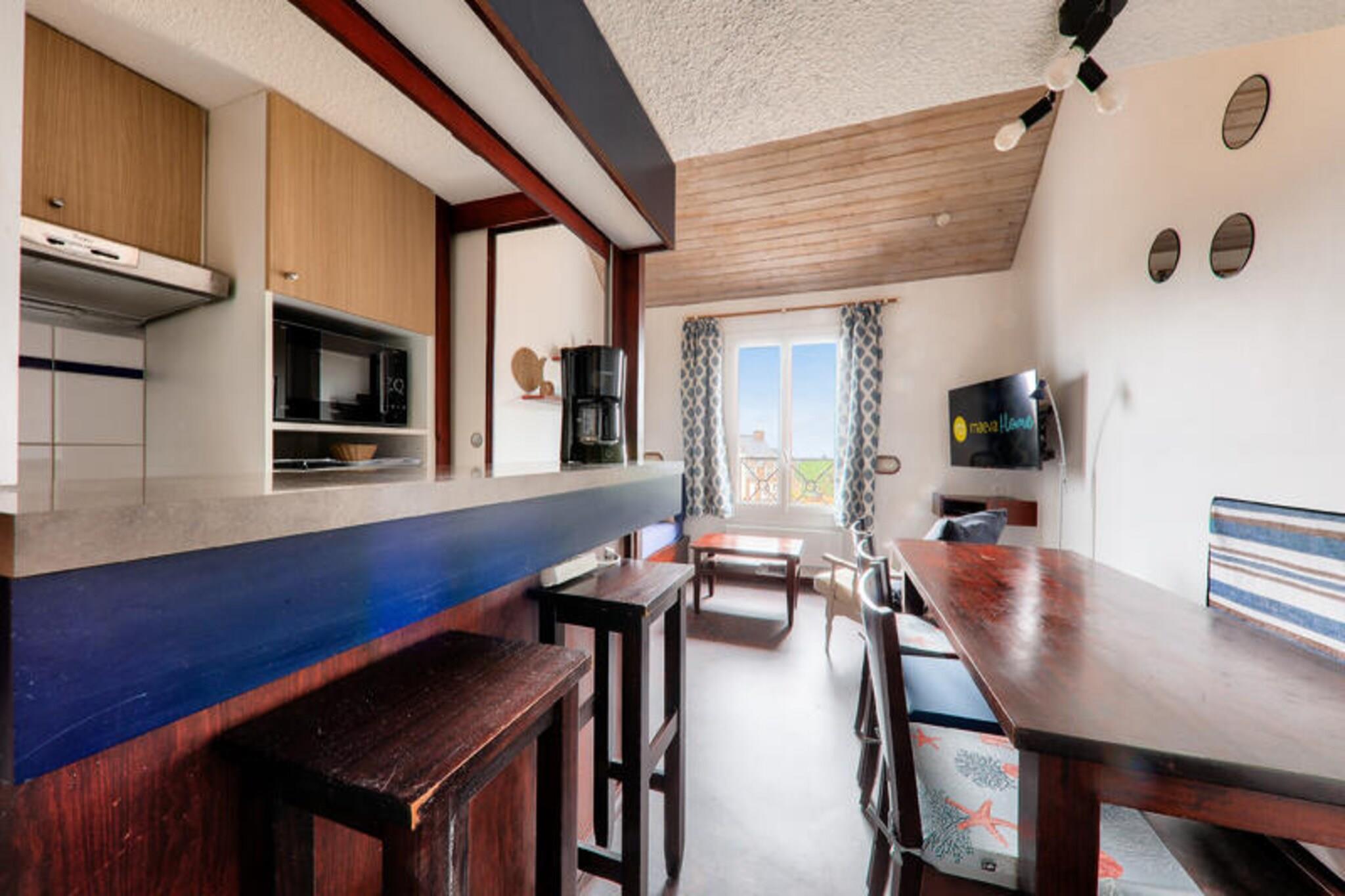 Denne sjarmerende leiligheten tilbyr et komfortabelt opphold for opptil 6 personer, og har to soverom og et hytteområde med en enkeltseng. Hovedsoverommet har en dobbeltseng, mens det andre soverommet har køyesenger. Leiligheten er utstyrt med moderne fasiliteter, inkludert en sovesofa i stuen, Wi-Fi-tilgang (mot en ekstra kostnad) og en TV. Kjæledyr er tillatt mot et pristillegg, og et babysett er tilgjengelig på forespørsel. Boligen er perfekt for en familie eller en liten gruppe som ønsker å nyte en avslappende ferie. Leiligheten ligger i hjertet av Port du Crouesty, kun 300 meter fra Fogeo-stranden, og tilbyr enkel tilgang til svømming, sandvolleyball og andre fritidsaktiviteter. Boligen ligger også innen gangavstand fra butikker, restauranter og det pulserende havneområdet. For de som søker avslapning, er det direkte tilgang til det nærliggende Miramar Crouesty thalassoterapisenteret, som gir en ideell setting for en foryngende helg i Bretagne. Leiligheten har et velutstyrt amerikansk kjøkken, ideelt for å tilberede måltider under oppholdet. Det er to bad, det ene med badekar og det andre med dusj, samt et separat toalett. Eiendommen inkluderer også en dedikert utendørs parkeringsplass for gjestenes bekvemmelighet. Med en sør-østvendt terrasse kan du nyte naturskjønn utsikt over havet mens du slapper av i de rolige omgivelsene.