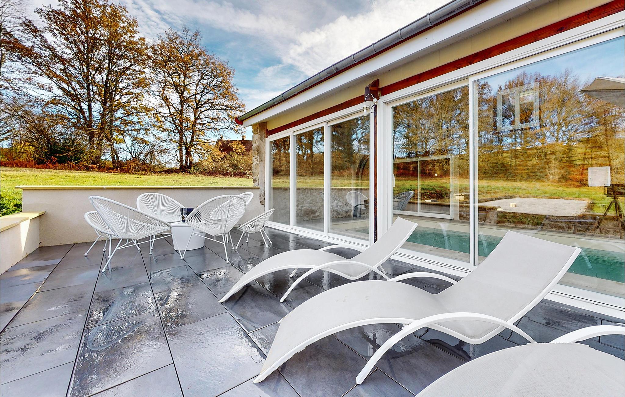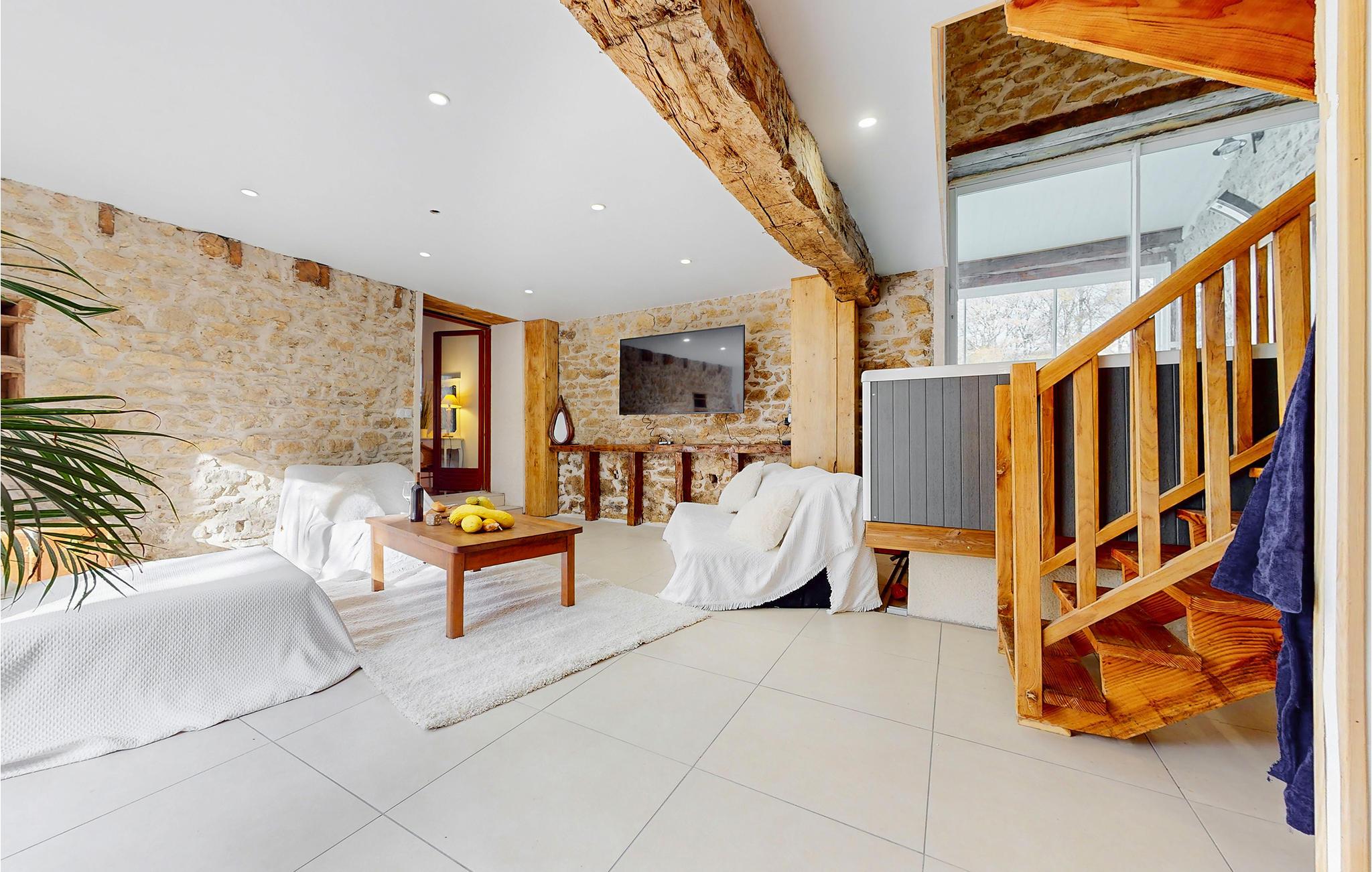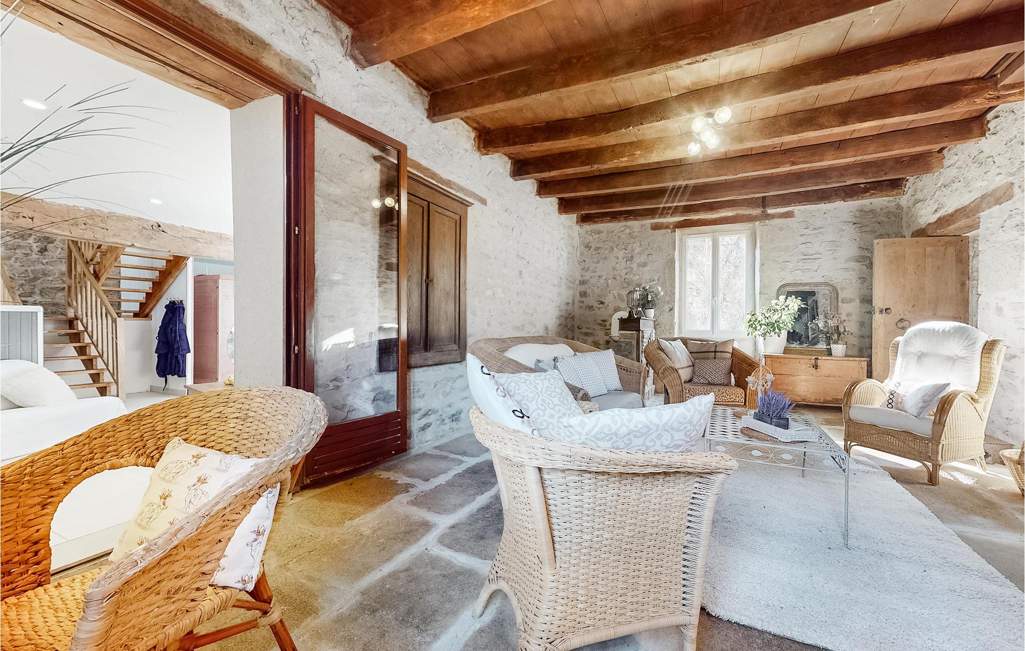 Ønsker du høy komfort og en spesiell boopplevelse? Er dere en stor familie eller kanskje flere familier som ferierer sammen? Da er dette landstedet med topp innredning nær en liten innsjø perfekt for dere. Dette store huset i to plan med utendørsbasseng, innendørsbasseng, boblebad og badstue ligger i vakre landlige omgivelser, og vil gi deg en fantastisk ferie. Det romslige huset imponerer med sine rustikke detaljer som takbjelker av naturlig tre og synlige steinvegger, og samspillet mellom tre og hvitt gir huset noe helt spesielt. Amatørkokker kan utfolde seg på det store kjøkkenet, mens andre kan slå seg ned i en av stuene. På kjøligere dager kan du sole deg på terrassen eller bruke innendørsbassenget.