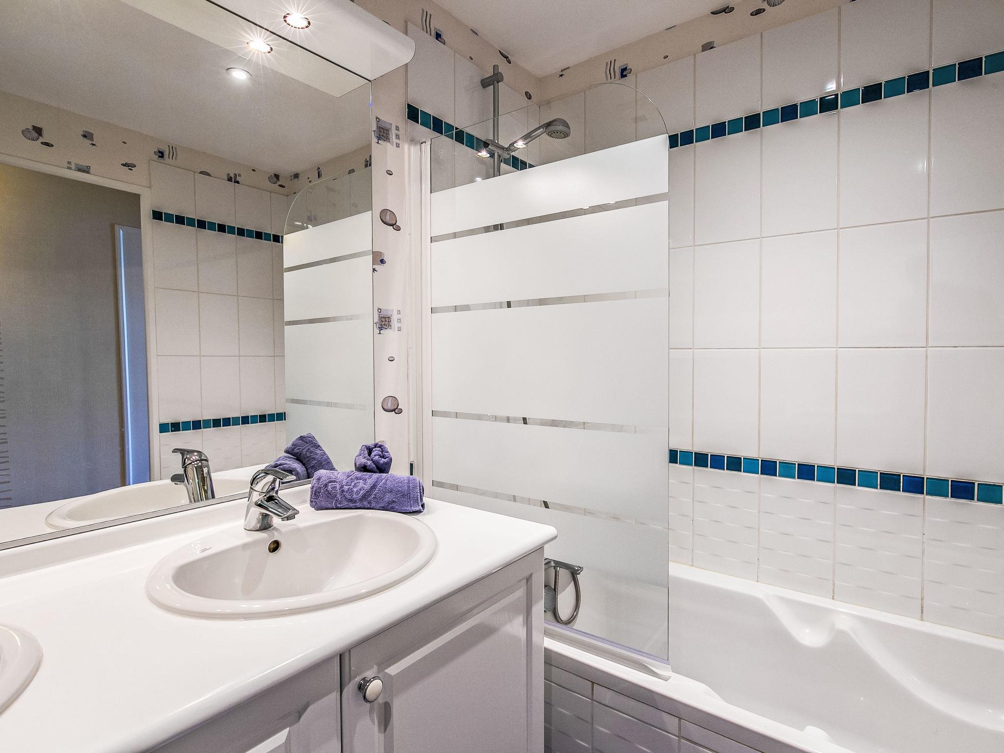 "Entre port et plages", 4-room apartment 97 m2 on 2 levels, on the upper ground floor, south facing position. Object suitable for 4 adults + 2 children. Bright, comfortable and beautiful furnishings: entrance hall. Living/dining room with winter garden with TV and flat screen. Exit to the loggia, to the patio. Open kitchen (oven, dishwasher, 3 induction hot plates, toaster, kettle, microwave, freezer, electric coffee machine, Capsules for coffee machine (Senseo) extra). Shower/WC. Upper floor: 1 room with 1 french bed (160 cm, length 200 cm). 1 room with 1 double fold-away bed (140 cm, length 190 cm). Exit to the balcony. 1 room with 2 pull-out beds (2 x 90 cm, length 190 cm). Bathroom, sep. WC. Electric heating. Balcony 4 m2, south facing position, patio 120 m2, south facing position and, east facing position. Deck chairs (2). Side view of the sea. Facilities: washing machine, iron, hair dryer. Internet (WiFi, free). Please note: non-smoking house. Smoke alarm. Offer by a private individual according to Art. 155, IV of CGI.