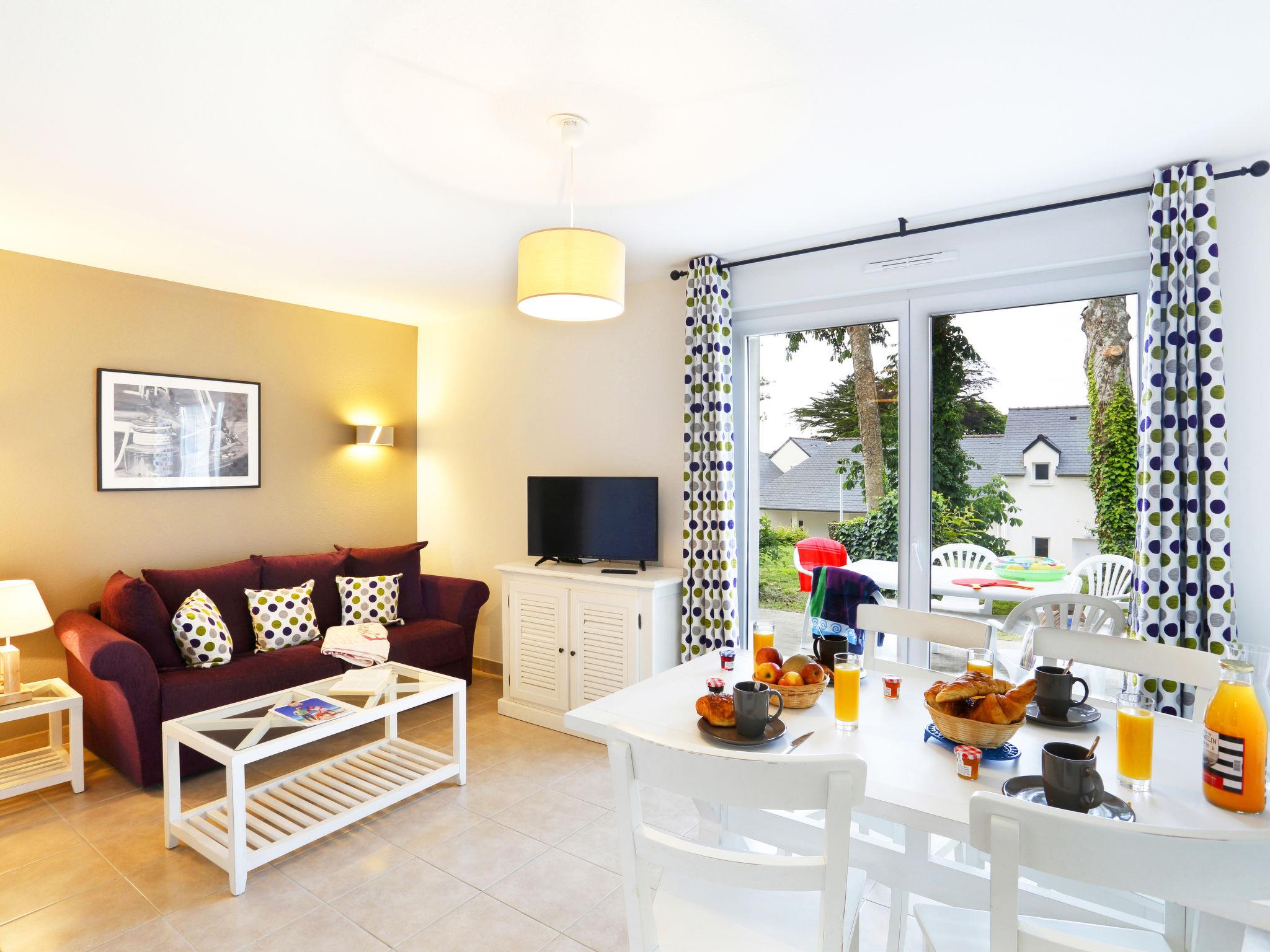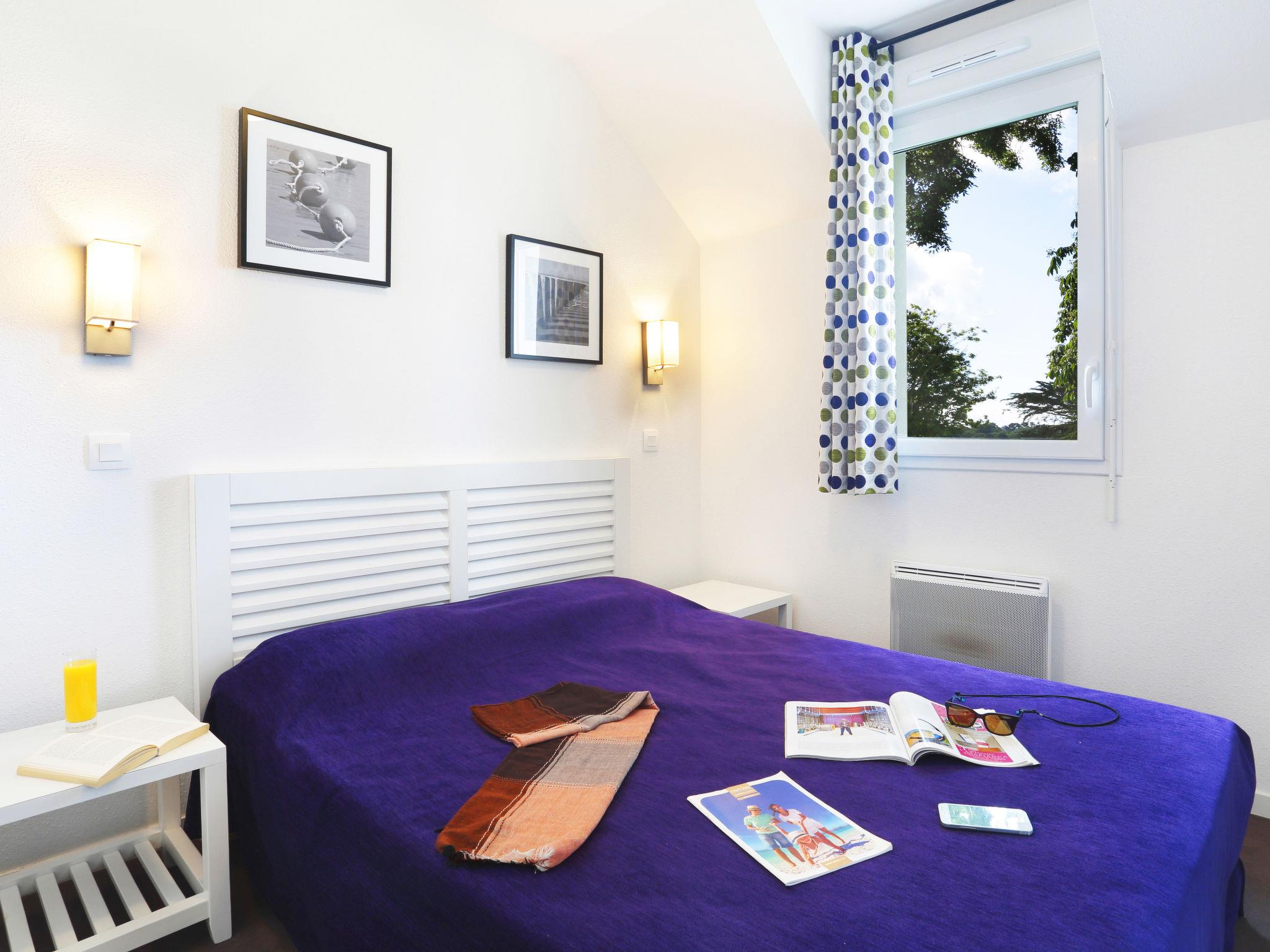 Child friendly resort "Domaine de la Baie". 118 apartments in the residence. 2 km from the centre of Audierne, 22 km from the centre of Douarnenez, 40 km from the centre of Quimper, 3 km from the sea. For shared use: property 6 ha, park with lawn and trees, meadow, 2 swimming pools heated (seasonal availability: 03.Apr. - 07.Nov. and 31.May. - 31.Aug.). Terrace. In the complex: reception, internet access, WiFi, fitness room, table tennis, billiard table, washing machine, tumble dryer (for shared use, extra). Parking on the premises. Shop 50 m, supermarket 3 km, bus stop 2 km, sandy beach 3 km. Please note: the photograph shows a typical example. The holiday properties may differ in living space, floorplan, equipment and furnishing.