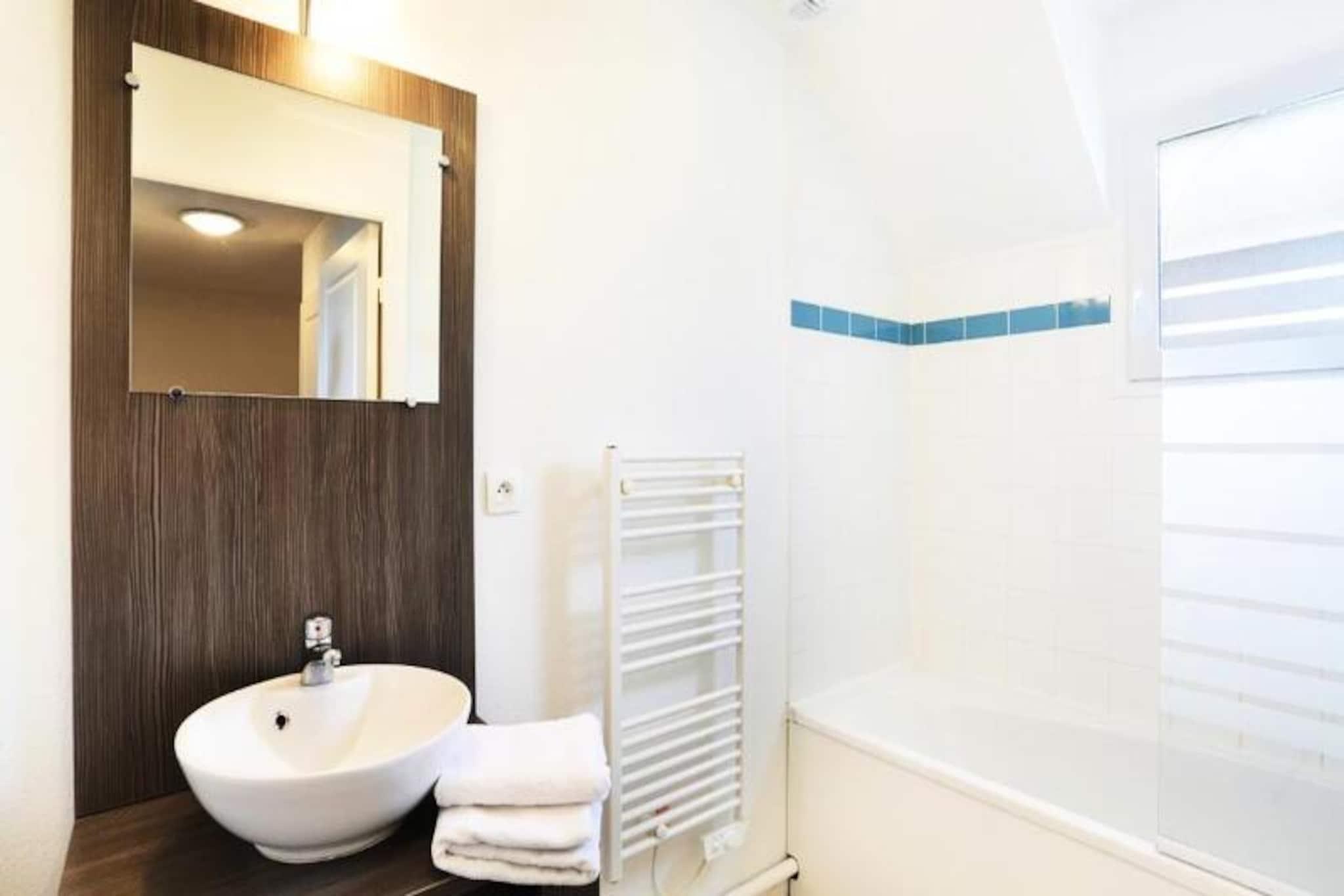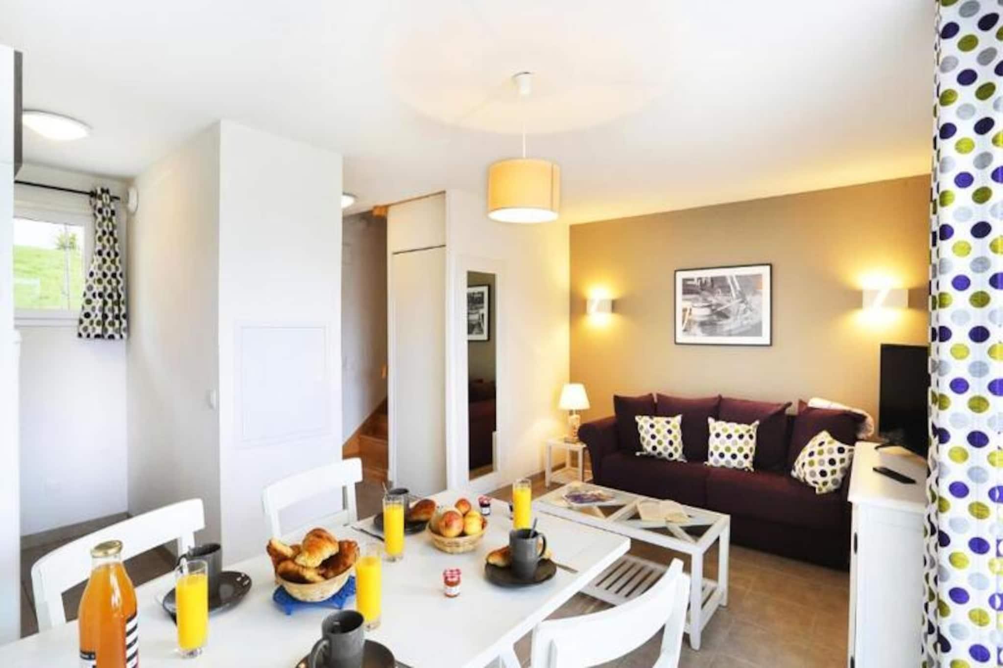 I hjertet av sørlige Finistère, der den kuperte kystlinjen møter sjarmen til Bretagne, ligger Residence Le Domaine de la Baie. Omgitt av over seks hektar med frodig, skogkledd parklandskap, tilbyr dette rolige tilfluktsstedet en perfekt balanse mellom naturlig skjønnhet og moderne komfort. Bare en kort avstand fra den pittoreske Pointe du Raz og den livlige byen Quimper, inviterer beliggenheten deg til å utforske regionens rike kulturelle og historiske arv. Den travle havnen i Audierne, med sine sjarmerende butikker, innbydende restauranter og smale gater, er det perfekte stedet å nyte den lokale atmosfæren. Residensen består av åtte sjarmerende landsbyer med tomannsboliger, hver omtenksomt designet for å gi et koselig og komfortabelt opphold. Hvert hus har en stue med en dobbel sovesofa, et fullt utstyrt kjøkken, et soverom med en dobbeltseng, en lugar med to enkeltsenger og en privat terrasse hvor du kan nyte måltider under solen eller den forfriskende sjøbrisen. Moderne fasiliteter som Wi-Fi, oppvarmede innendørs- og utendørsbassenger og valgfrie tillegg som elektriske griller og barnesenger sikrer en stressfri og hyggelig ferie. Enten du ønsker å slappe av ved bassenget, utforske de nærliggende strendene eller vandre gjennom pittoreske bretonske landsbyer, tilbyr denne residensen noe for enhver smak. De oppvarmede bassengene, inkludert et innendørsbasseng med boblebad, gir avslapning året rundt, mens utendørsbassenget er perfekt for solfylte sommerdager. For de som reiser med kjæledyr, ønsker residensen dine pelskledde venner velkommen, noe som gjør det til en virkelig inkluderende ferie. Oppdag magien i Bretagne på Residence Le Domaine de la Baie, hvor naturens skjønnhet og hjemmets komfort forenes for å skape uforglemmelige minner.