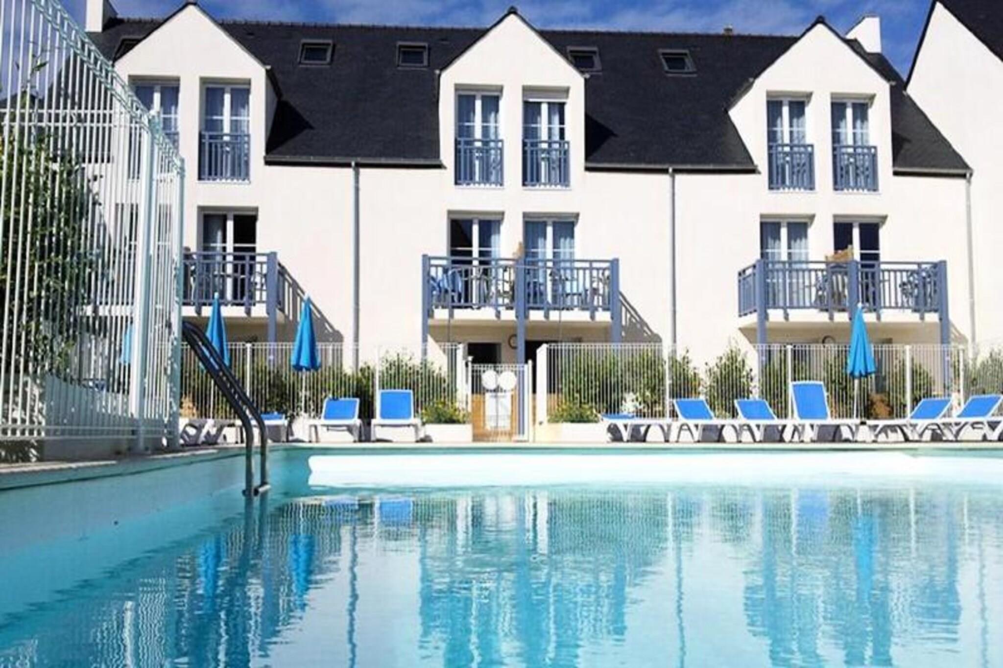 Der Atlanterhavet møter sjarmen til Bretagne, tilbyr Goélia An Douar*** Residence i Audierne en idyllisk tilflukt bare noen skritt fra Trescadec-stranden. Tenk deg å våkne opp til lyden av bølger og duften av sjøluft, med den største sandstranden i området bare 100 meter unna. Dette strandferiestedet inviterer deg til å omfavne skjønnheten i Finistère, enten du søker avslapning eller eventyr. Residensen kan skilte med et oppvarmet utendørsbasseng med fantastisk havutsikt, perfekt for en forfriskende dukkert eller avslapning på den møblerte solterrassen. For ultimat avslapning kan du unne deg velværeavdelingen med badstue og hammam. Hver leilighet, fra 30 til 35 m², er gjennomtenkt designet med en koselig stue, et fullt utstyrt kjøkken, et soverom med dobbeltseng og en privat terrasse for å nyte kystatmosfæren. Moderne bekvemmeligheter som Wi-Fi, TV og valgfrie babysett sikrer et komfortabelt opphold for både familier og par. Audierne er i seg selv en perle i Bretagne, kjent for sin pittoreske havn, pulserende markeder og nærhet til ikoniske steder som Pointe du Raz og Quimper. Spaser langs bukten, utforsk Cap-Sizun-stiene, eller nyt fersk sjømat på lokale restauranter. Med underjordisk parkering, kjæledyrvennlige alternativer og enkel tilgang til regionens høydepunkter, er denne residensen den perfekte basen for å oppdage magien på den bretonske kysten. Enten du er her for solen, havet eller den tidløse sjarmen i Bretagne, lover Goélia An Douar*** Residence uforglemmelige øyeblikk ved havet.