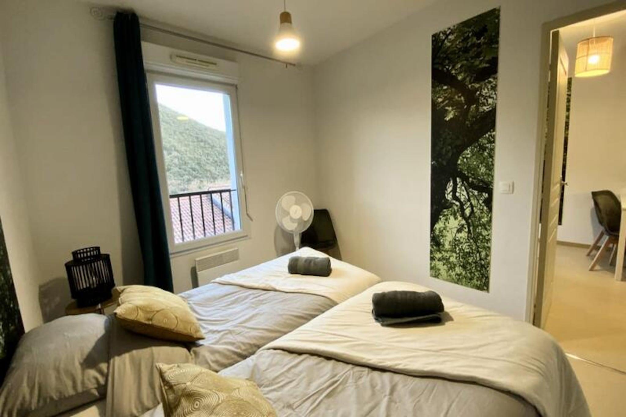 I hjertet av den regionale naturparken Haut-Languedoc, hvor Cévennes-fjellene reiser seg majestetisk og Orb-dalen utfolder sin fredelige skjønnhet, ligger et rolig tilfluktssted som venter på din ankomst. Bare en 10-minutters spasertur fra det berømte Avène Thermal Spa og dets helbredende kilder, tilbyr denne sjarmerende residensen den perfekte blandingen av natur, avslapning og komfort. Omgitt av frodig grøntområde og endeløse turstier, er det et fristed for de som søker foryngelse og eventyr i like stor grad. Denne leiligheten i første etasje, gjennomtenkt designet for din komfort, har en romslig åpen stue badet i naturlig lys. Det fullt utstyrte kjøkkenet inviterer deg til å tilberede deilige måltider, mens den koselige spisestuen og den komfortable sovesofaen gir et innbydende sted å slappe av. Leiligheten har også to soverom med enkeltsenger og rikelig med lagringsplass, noe som sikrer avslappende netter for opptil seks gjester. Moderne fasiliteter som gratis Wi-Fi, flatskjerm-TV og vaskemaskin gjør oppholdet ditt like praktisk som det er hyggelig. Gå ut og oppdag regionens underverker. Fra de dramatiske juvene Héric og Colombières-sur-Orb til den pittoreske landsbyen Olargues, som er oppført blant de ...