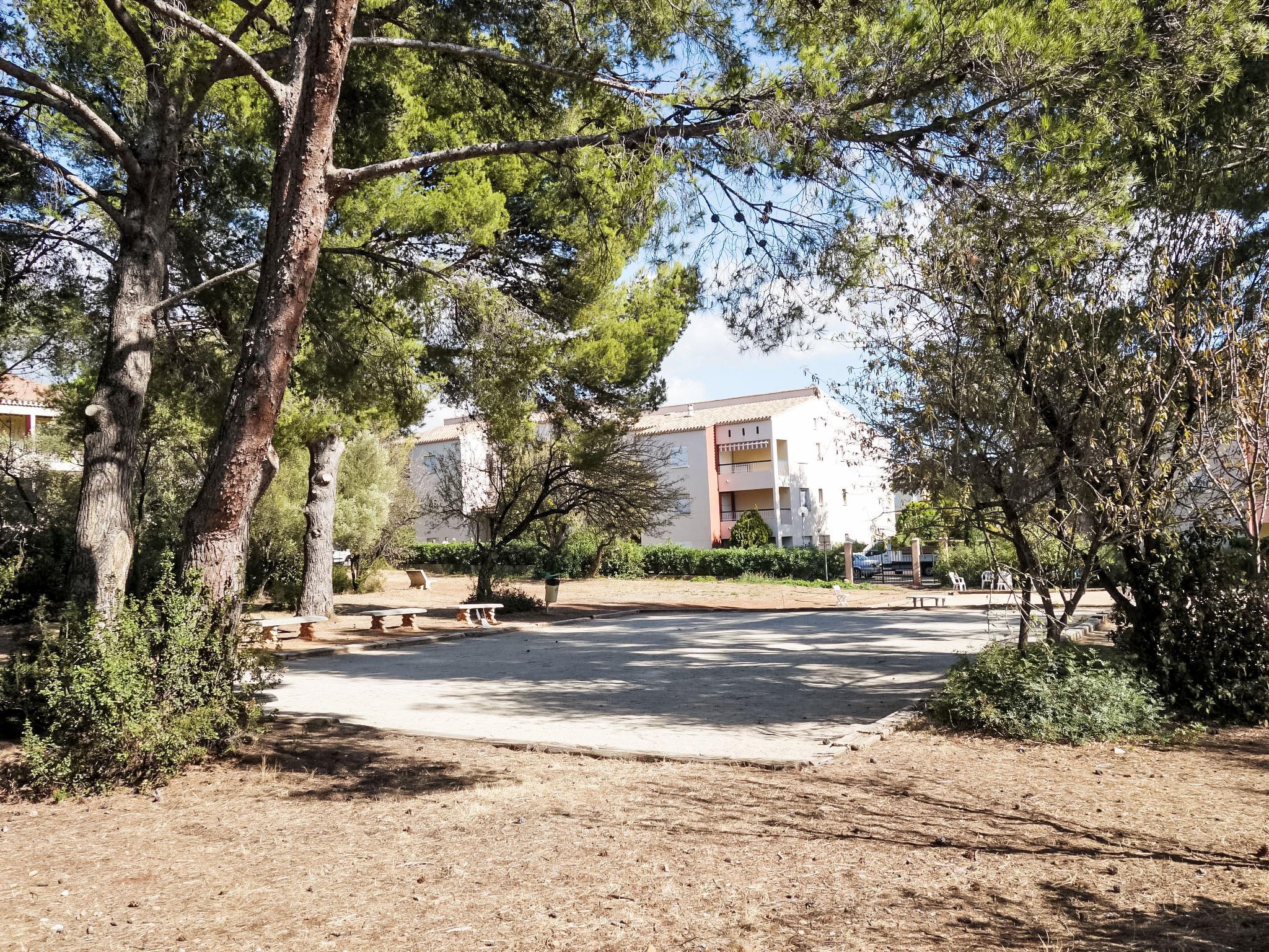 Residence "Hameau de Provence", 2 storeys. In the district of Pierreplane, 1.5 km from the centre of Bandol, in the residential district, 300 m from the sea, in a cul-de-sac. For shared use: swimming pool kidney-shaped fenced (seasonal availability: 01.May. - 30.Sep.). Boccia. Shop 500 m, restaurant 600 m, bus stop "Arrêt Casino" 2 km, railway station "Gare de Bandol" 1.1 km, sandy beach "Renecros" 900 m, shingle beach 300 m. Sports harbour 2.5 km, golf course (18 hole) 5 km, tennis 600 m. Hiking paths: Sainte Baume, Sainte Victoire, Calanques Port-Cros, Porquerolles, Ile verte, Embiez, Figuerolles, Cassis. Please note: residence with electric gates. The keys‘ handover takes place by the agency Interhome in Saint Cyr Sur Mer, 9 km. The photograph shows a typical example. Additional accommodations can be booked. Note: beach distances are those made on foot (access via a gate). Swimming pool supervised in July/August.