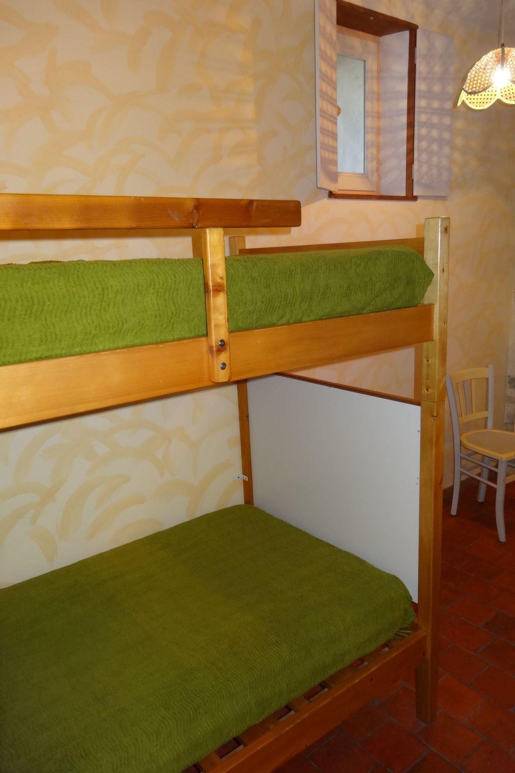 The 70 m² semi-detached house can accommodate up to six people. On one floor there are two bedrooms (one with a 160 cm x 190 cm double bed and one with bunk beds (90 x 190 cm each)), a living room with a double sofa bed, a kitchen with dining area and a bathroom. The spacious kitchen-living room is fully equipped with a fridge with freezer compartment, gas cooker, oven, dishwasher, coffee machine, microwave, electric kettle and toaster; meals can be taken at the dining table. The bathroom has a shower and toilet.